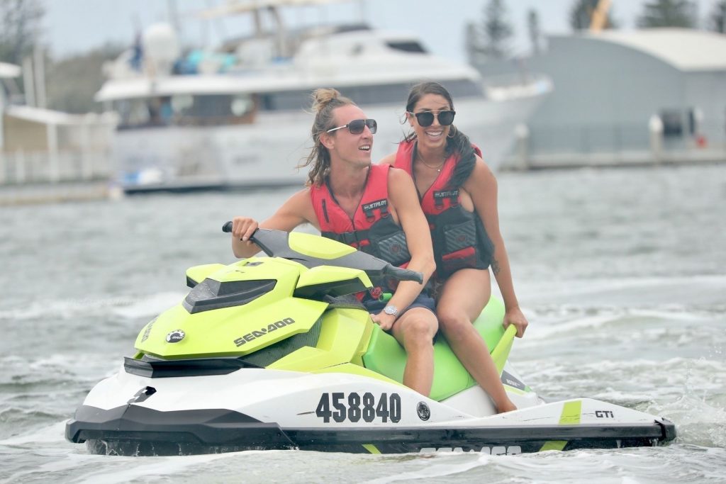 Estrellas de Married At First Sight Tamara Joy e Ivan Sarakula pasan el día en GC Broadwater con JetSki Safaris en Mariners Cove, 01/07/2021 .