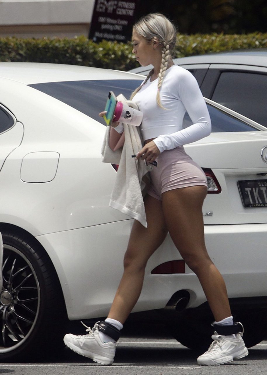 Modelo de fitness australiana y mamá con curvas, Tammy Hembrow fue vista con el cabello trenzado después de una sesión de gimnasio en Gold Coast, 01/05/2019.