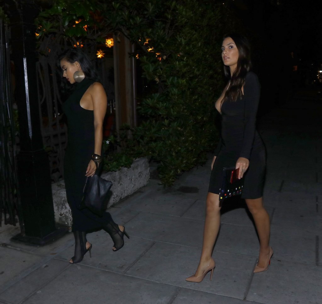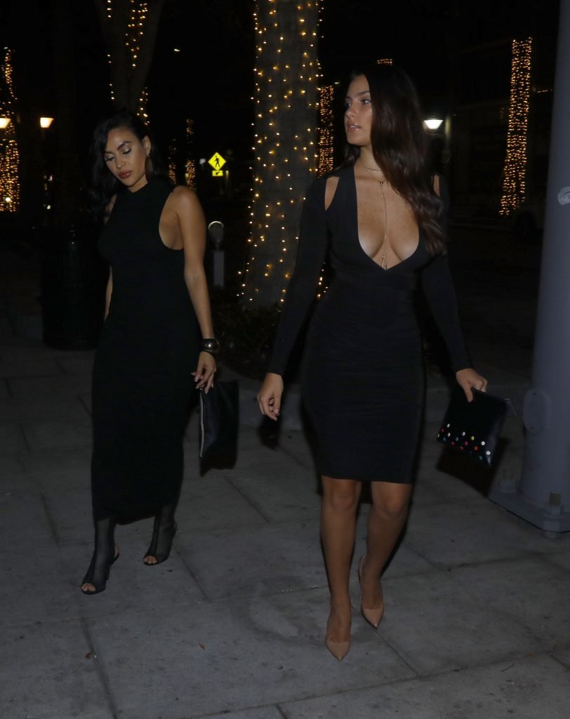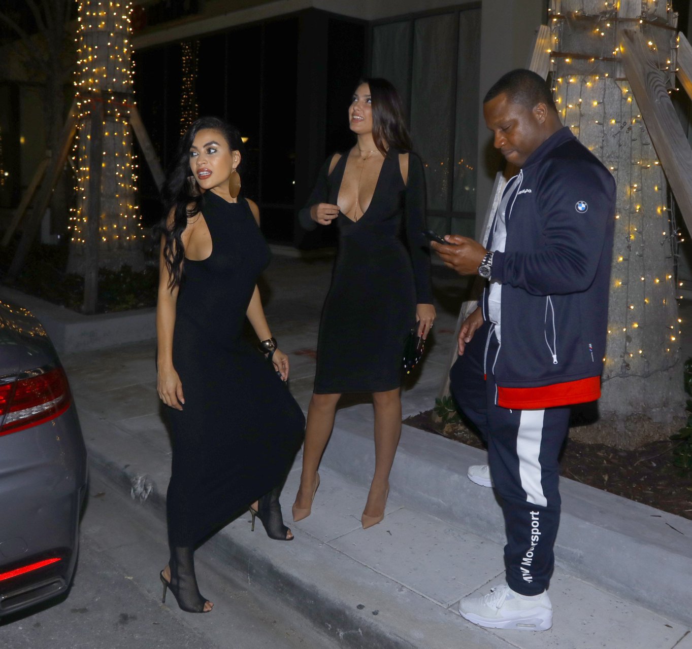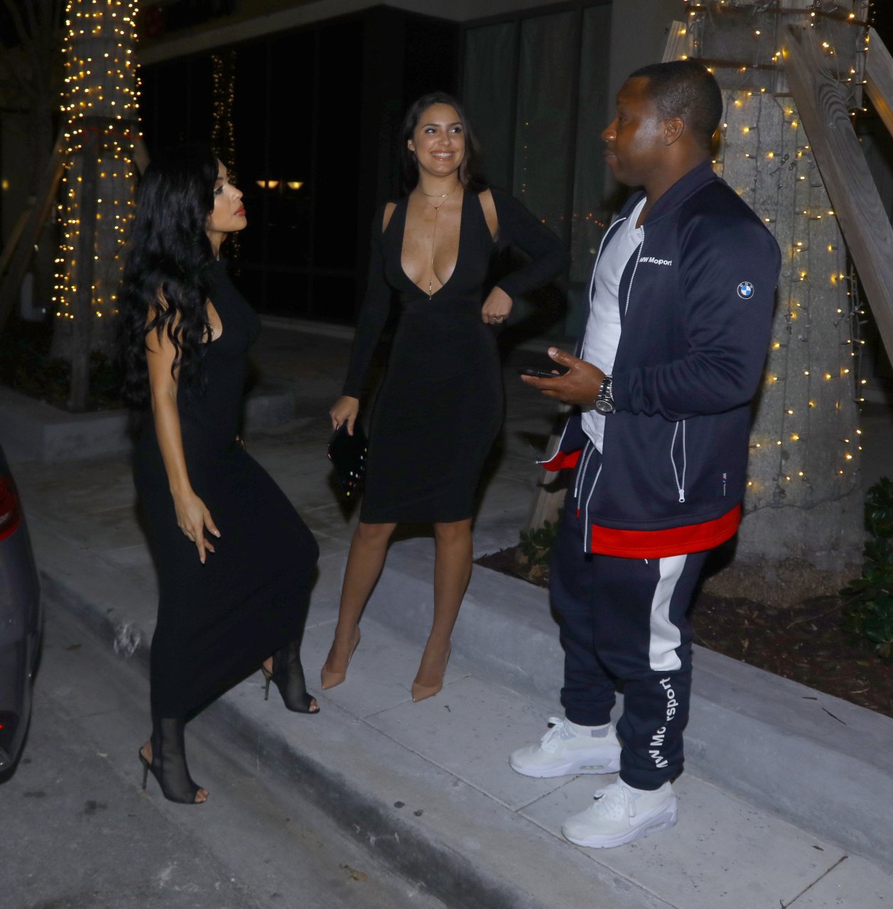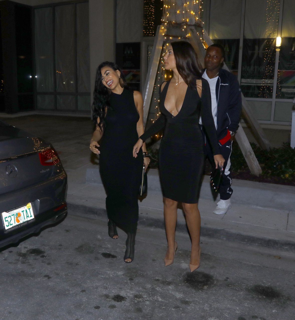 La modelo francesa Tao Wickrath y la actriz latina Julissa Neal (Still a Teen Movie (2009)) están sonriendo mientras se preparan para una noche en Sugarcane en Miami Beach, 07/11/2017. Tao, sin sostén, mostraba sus atributos mientras compartía risas con Julissa y una amiga en la calle mientras esperaban en el valet.