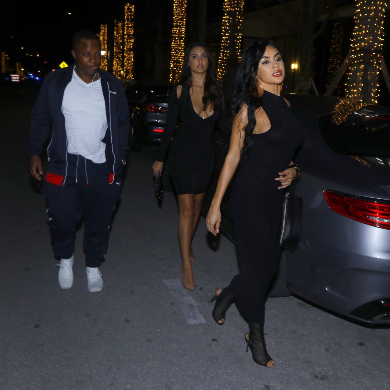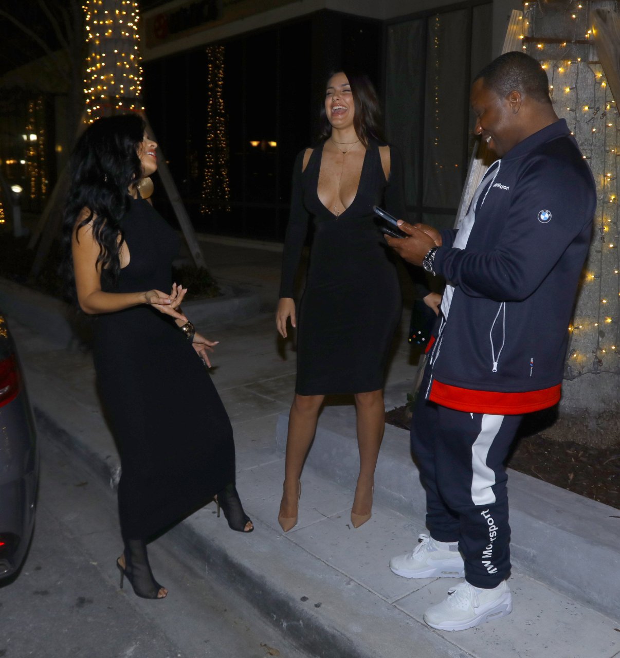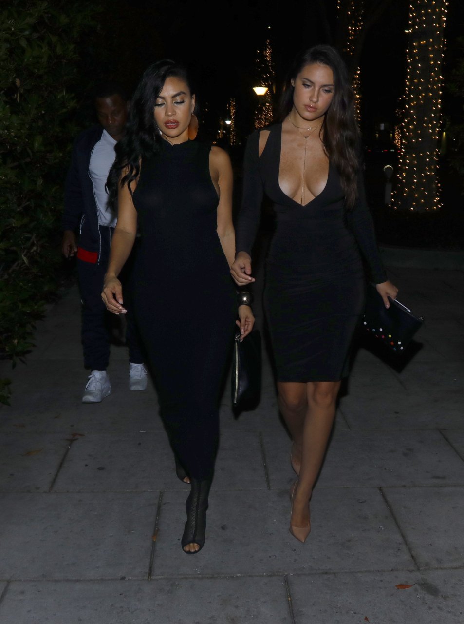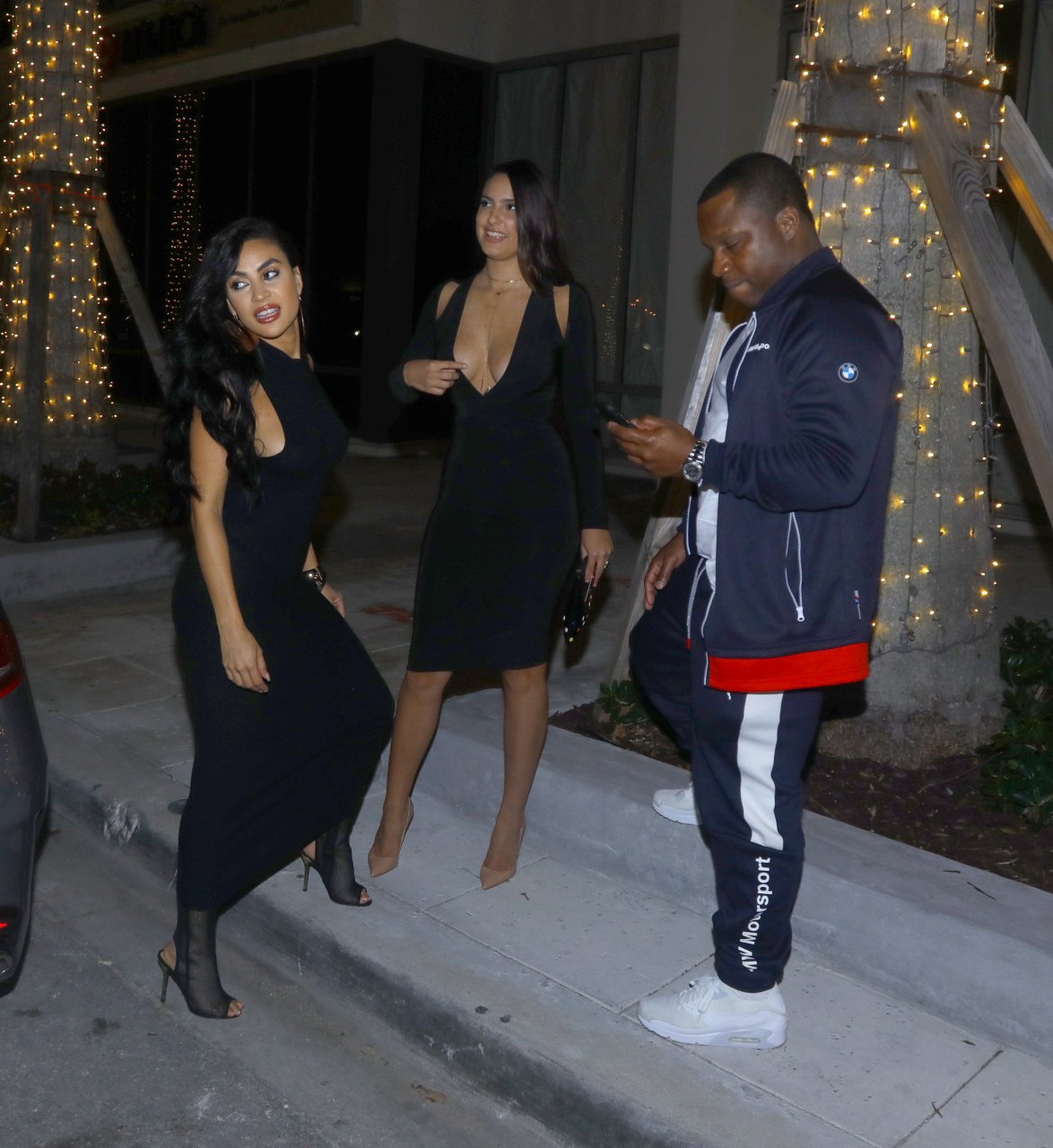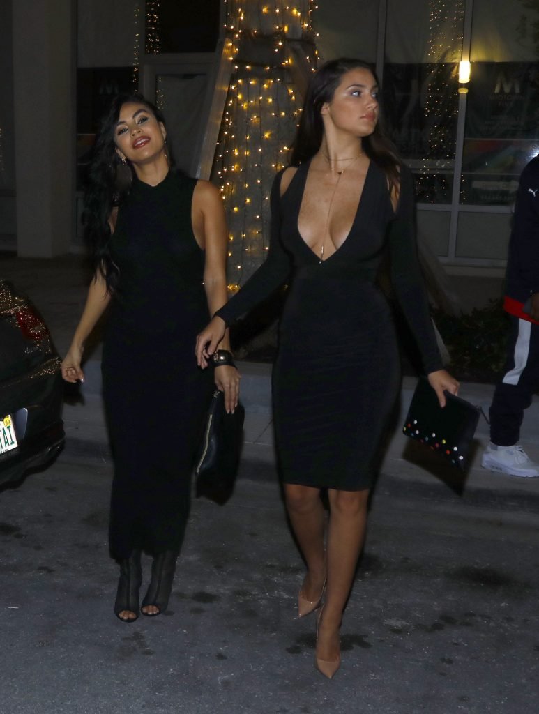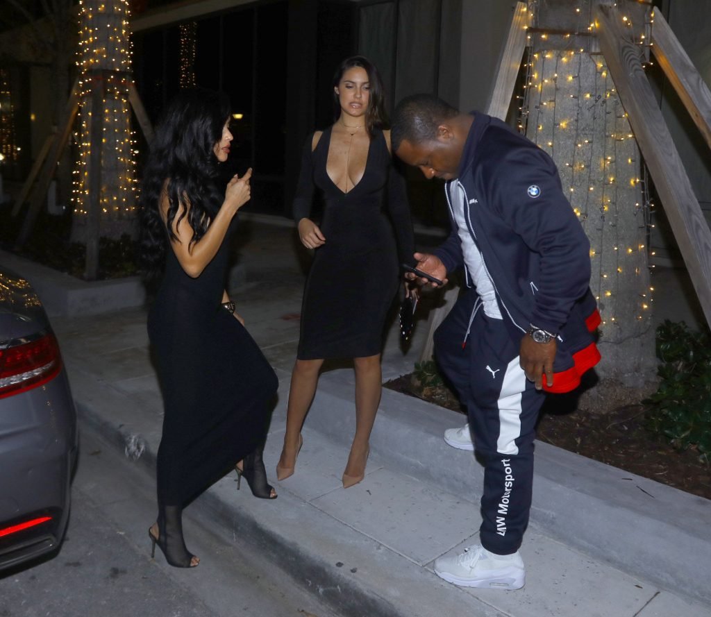 La modelo francesa Tao Wickrath y la actriz latina Julissa Neal (Still a Teen Movie (2009)) están sonriendo mientras se preparan para una noche en Sugarcane en Miami Beach, 07/11/2017. Tao, sin sostén, mostraba sus atributos mientras compartía risas con Julissa y una amiga en la calle mientras esperaban en el valet.