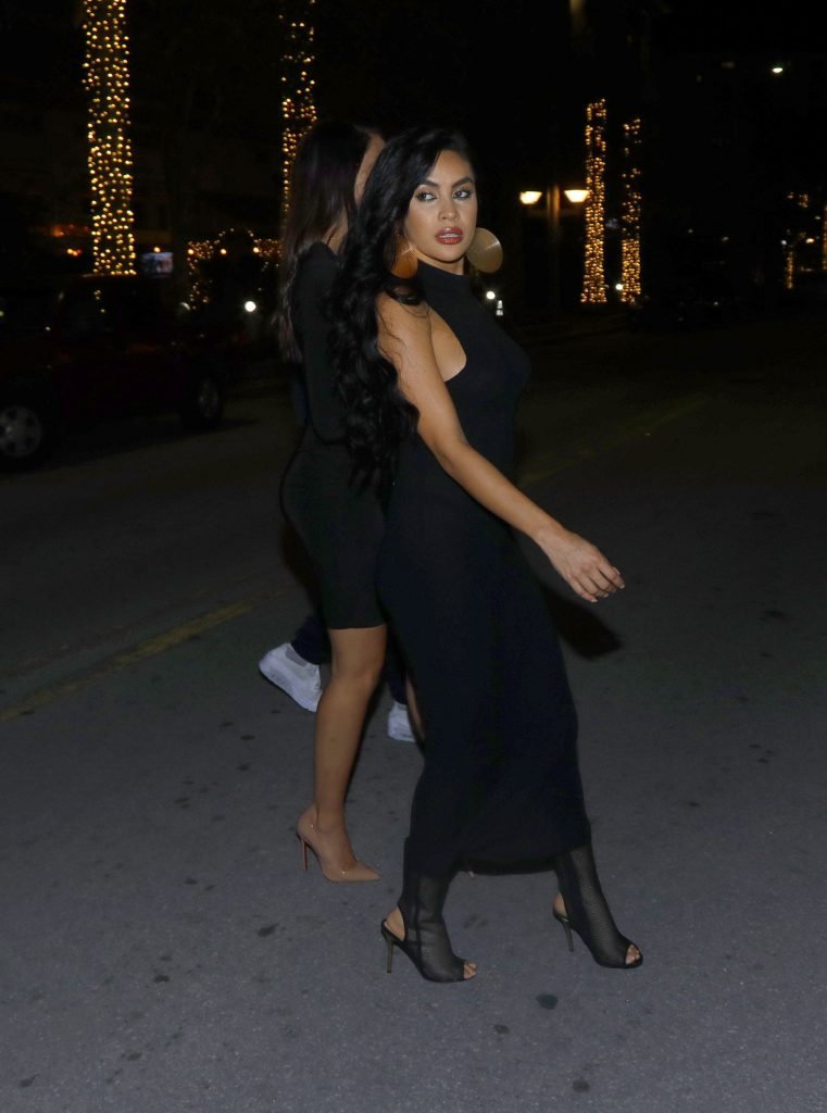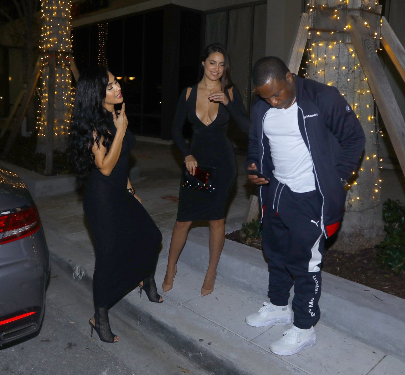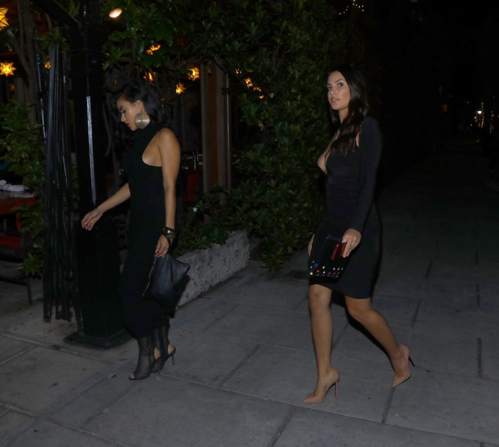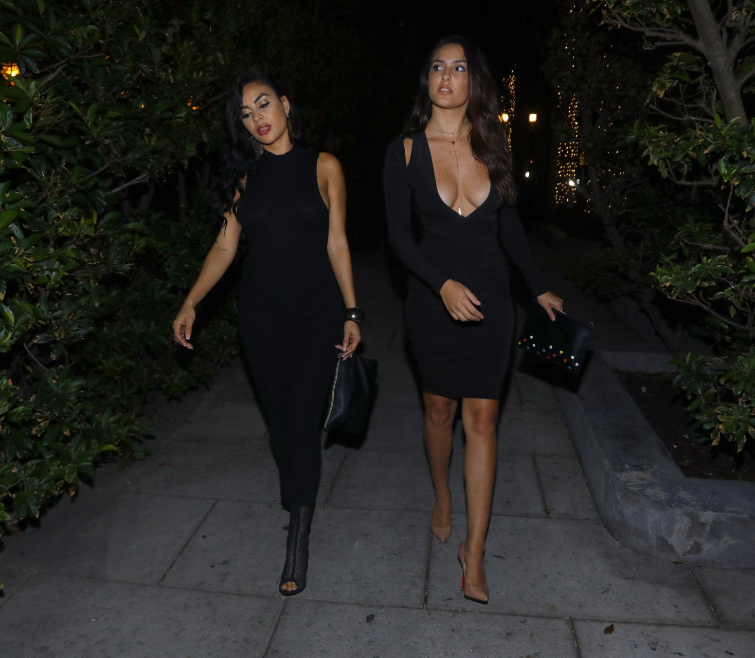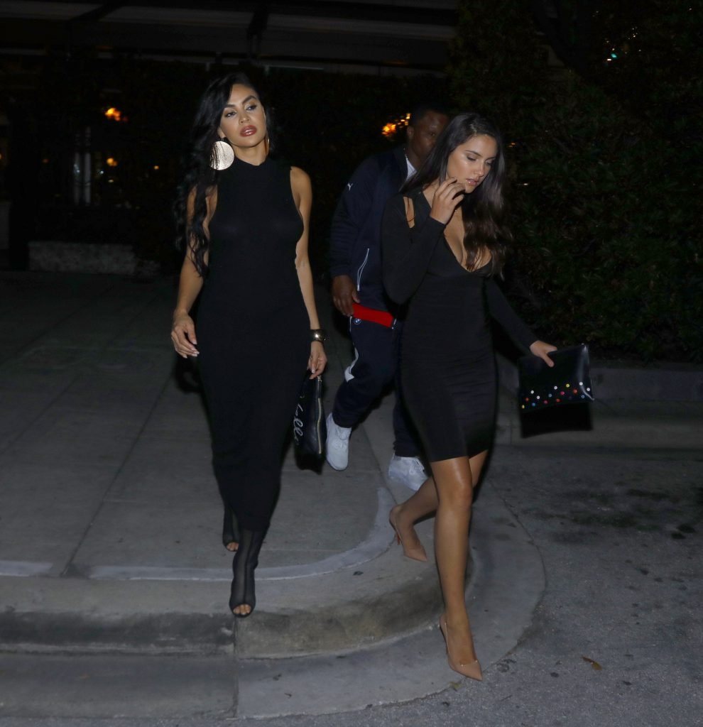 La modelo francesa Tao Wickrath y la actriz latina Julissa Neal (Still a Teen Movie (2009)) están sonriendo mientras se preparan para una noche en Sugarcane en Miami Beach, 07/11/2017. Tao, sin sostén, mostraba sus atributos mientras compartía risas con Julissa y una amiga en la calle mientras esperaban en el valet.