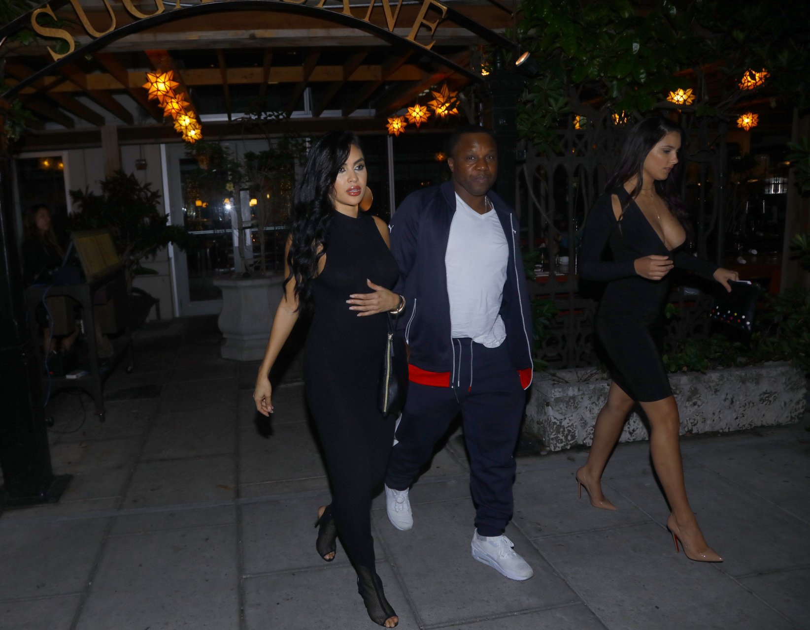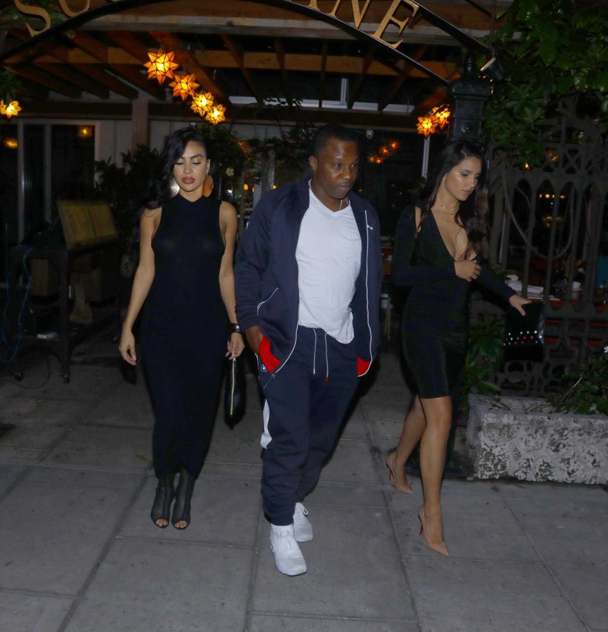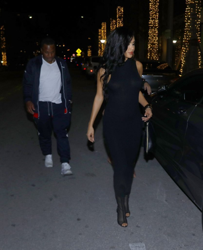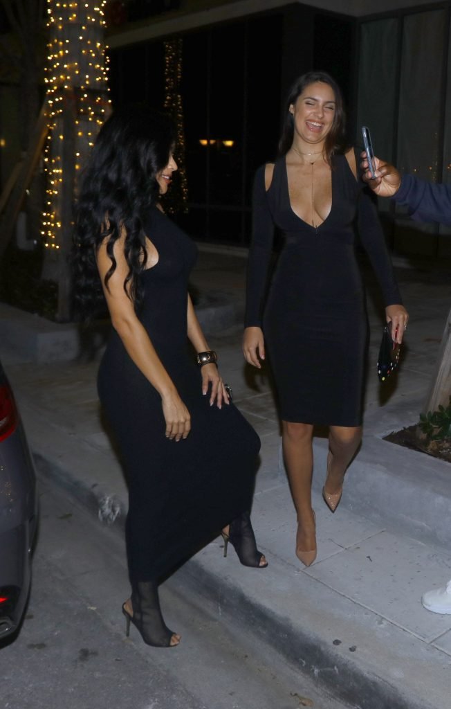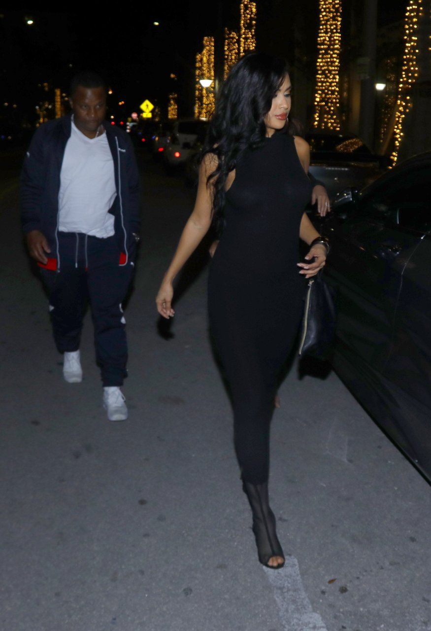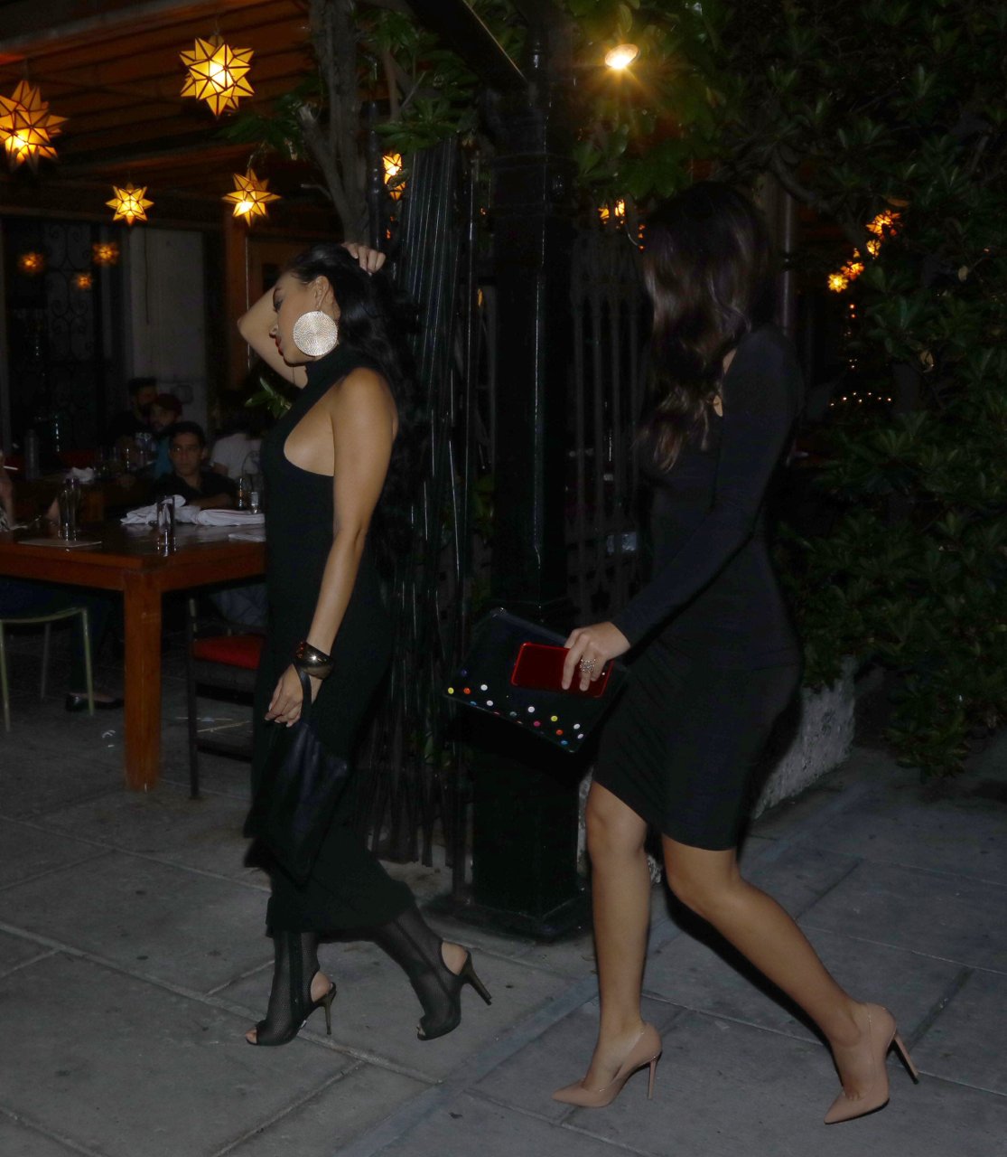 La modelo francesa Tao Wickrath y la actriz latina Julissa Neal (Still a Teen Movie (2009)) están sonriendo mientras se preparan para una noche en Sugarcane en Miami Beach, 07/11/2017. Tao, sin sostén, mostraba sus atributos mientras compartía risas con Julissa y una amiga en la calle mientras esperaban en el valet.