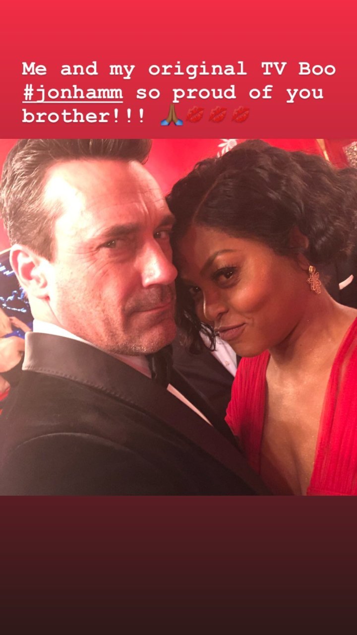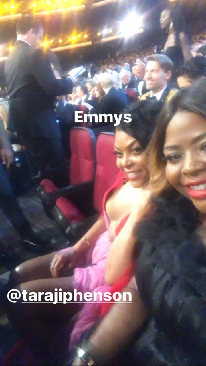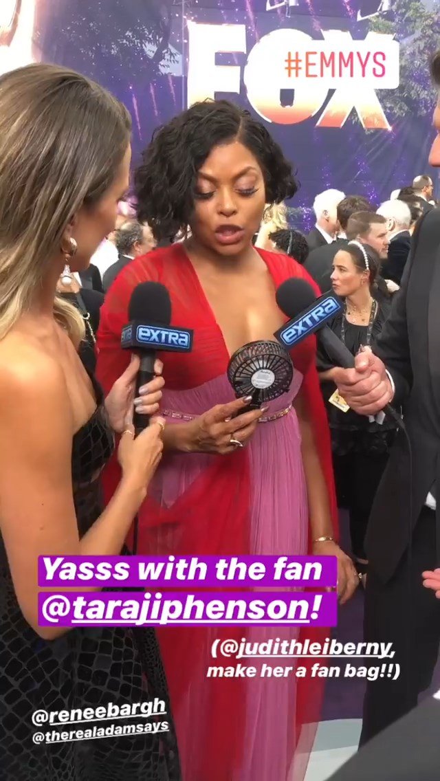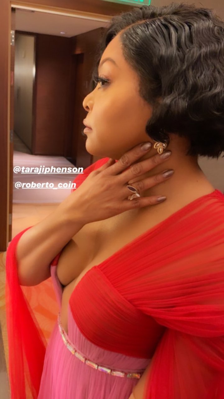 Actriz Taraji P. Henson compartió su maravilloso estado de ánimo, pechos y piernas, vistiendo un vestido ligero rojo-rosado en la 71ª entrega de los premios Emmy en Los Ángeles, 22/09/2019.