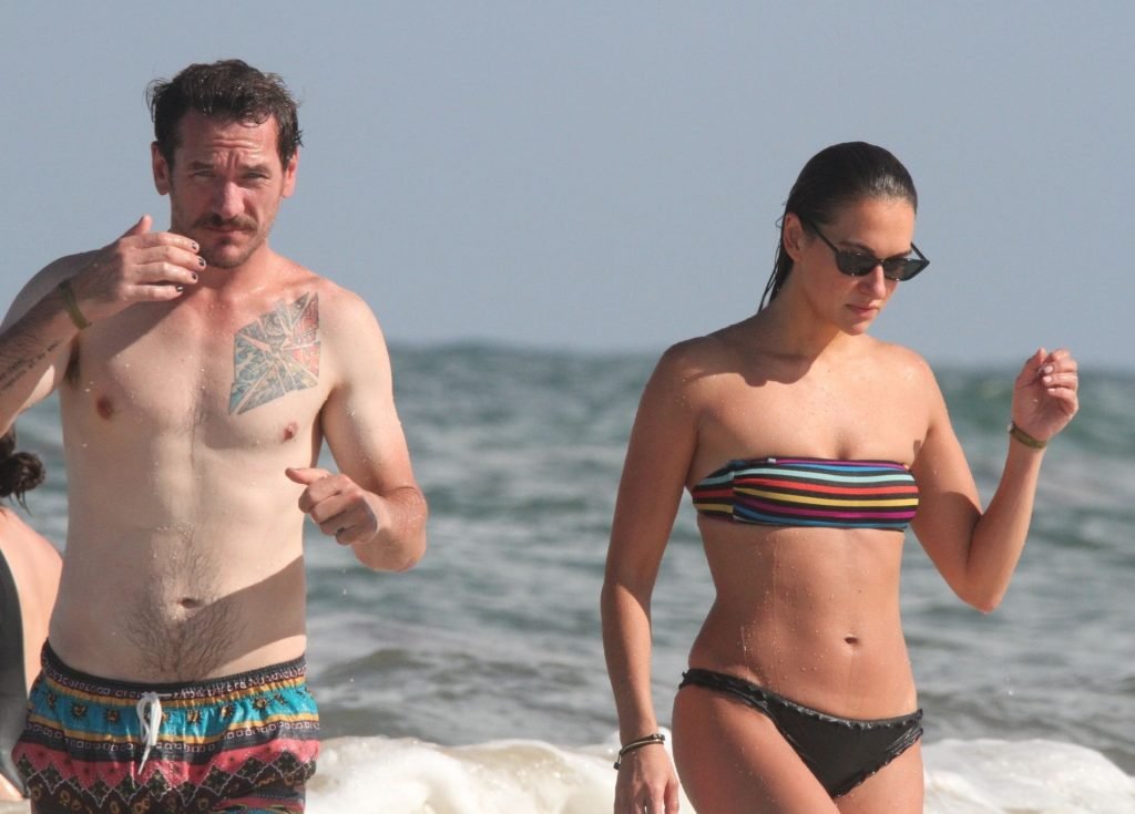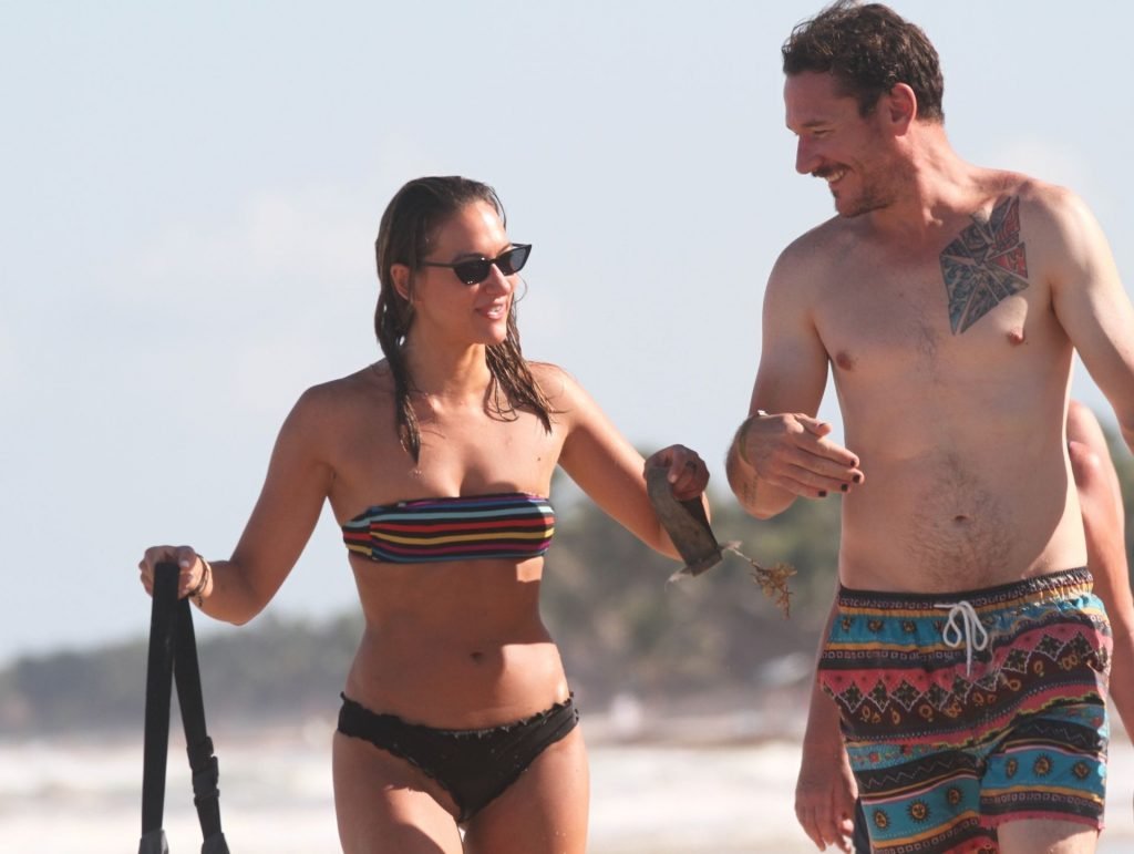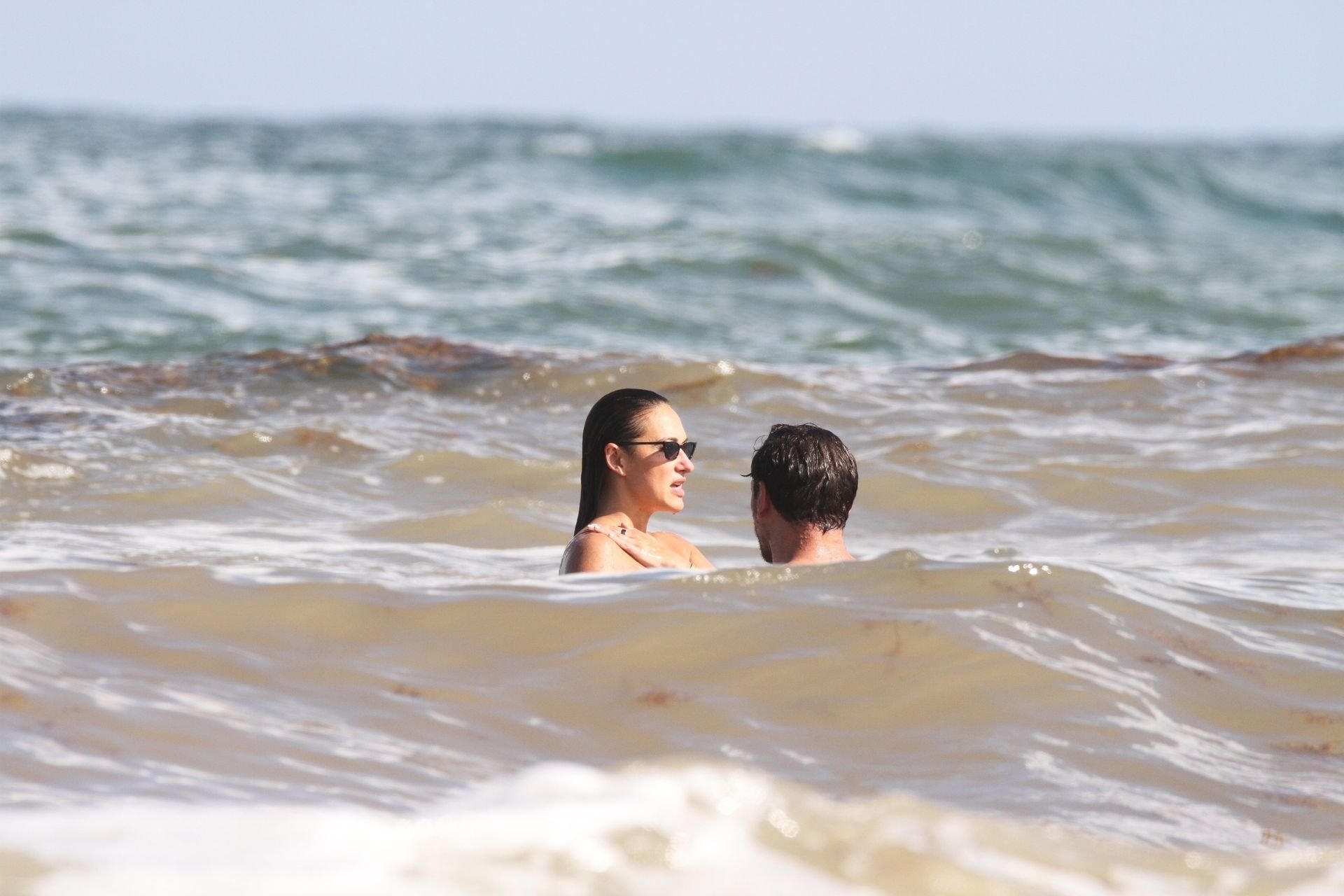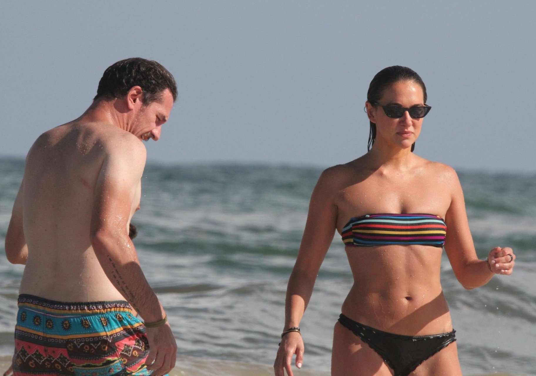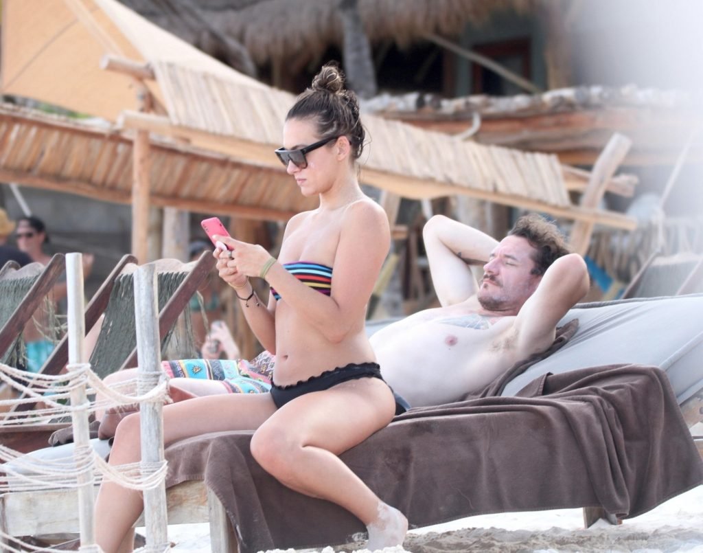 La actriz canadiense Tasya Teles fue vista disfrutando de un día en la playa de Tulum con un hombre misterioso, 11/08/2019. La pareja se entrega a un paseo tranquilo por la orilla y se relaja con un abrazo en las tumbonas.