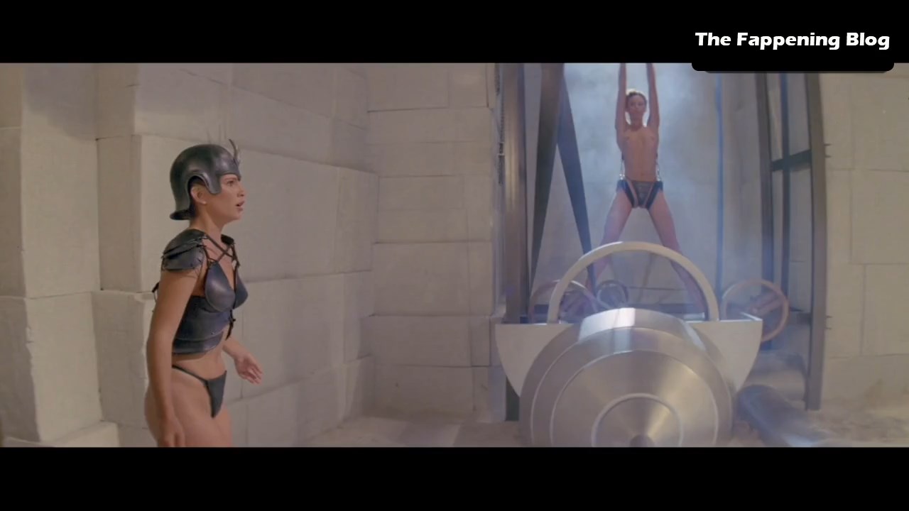 Clear and multiple looks at Tawny’s tits as she’s restrained, topless, in front of a bunch of mirrors. Cheers to the set director.