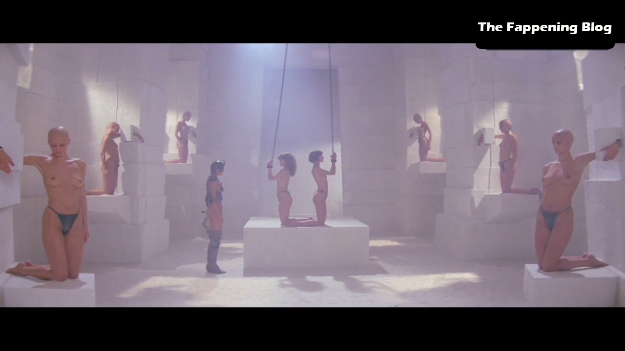 The next scene is from the ‘The Perils of Gwendoline in the Land of the Yik Yak’ movie. Weird name, right? When it starts to rain in the jungle, Tawny Kitaen and Zabou remove their clothes, exposing their breasts as they attempt to gather water and create a fire.