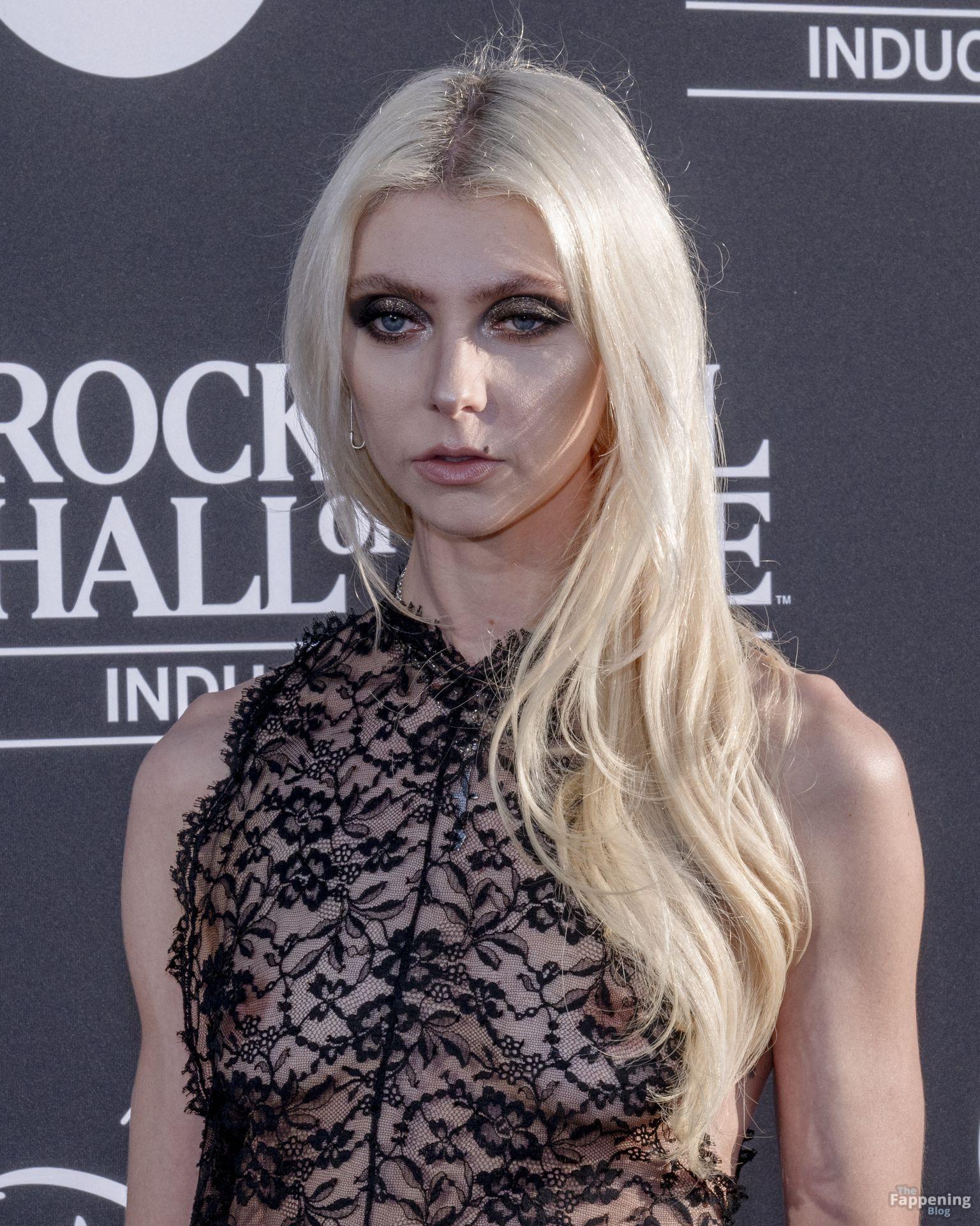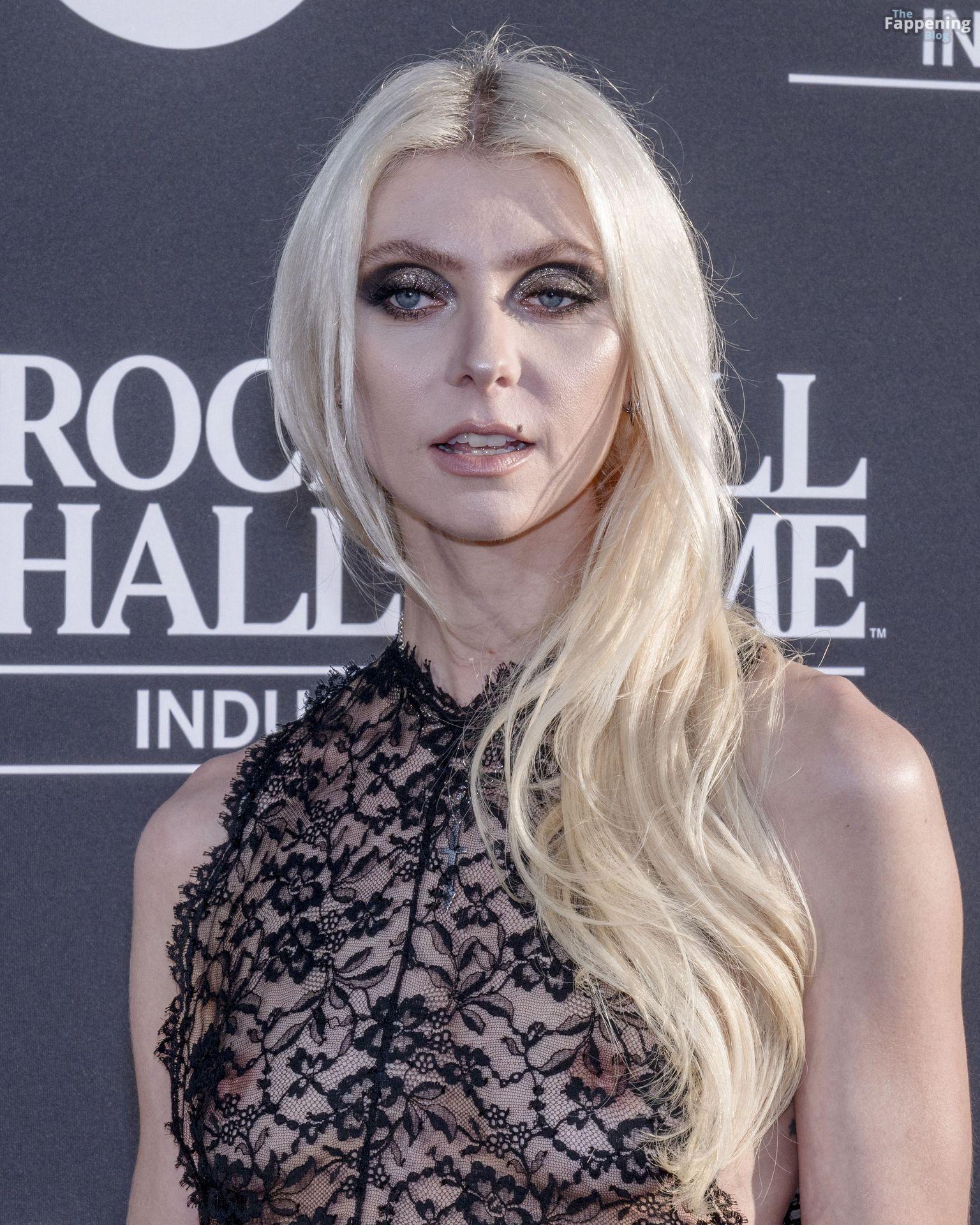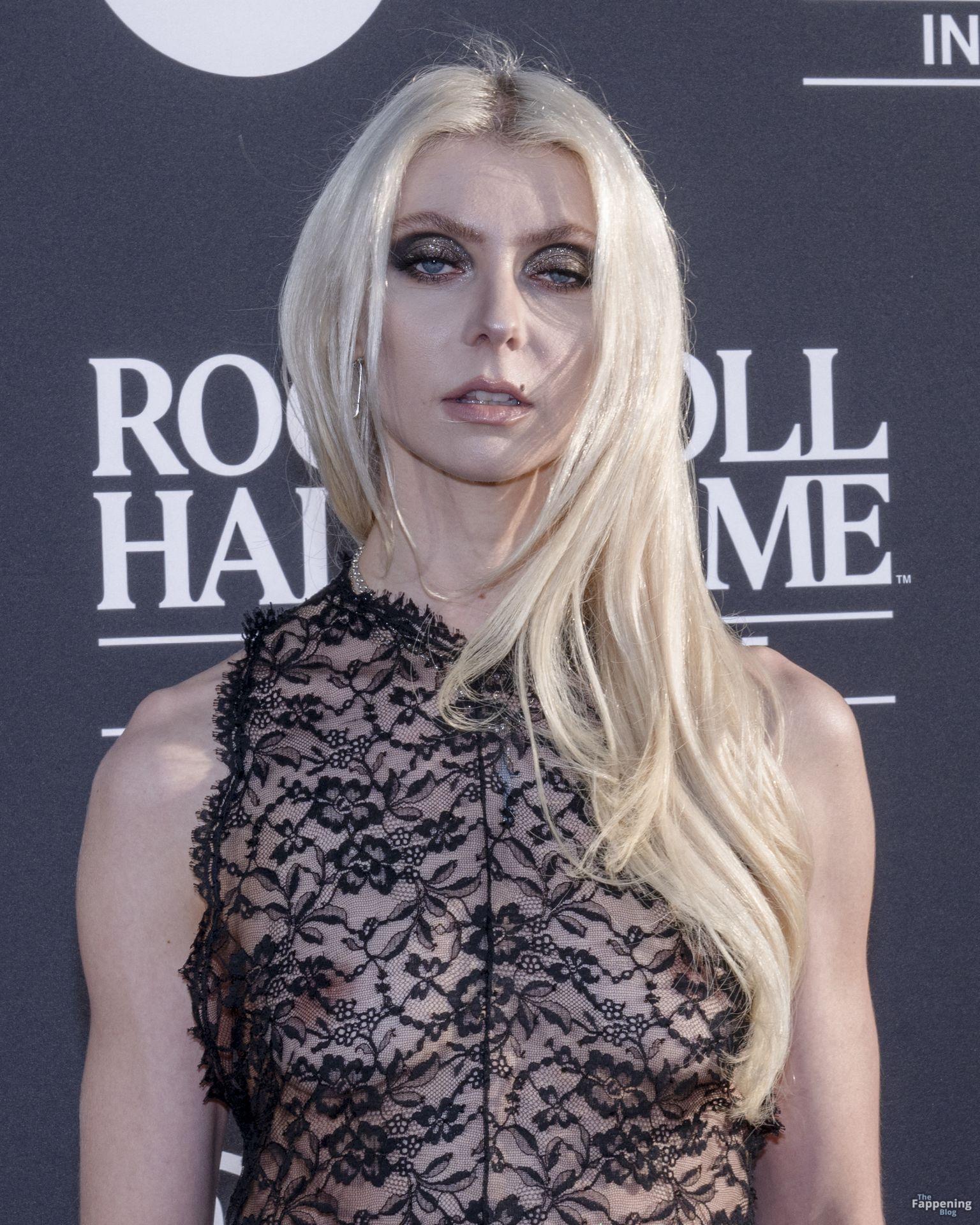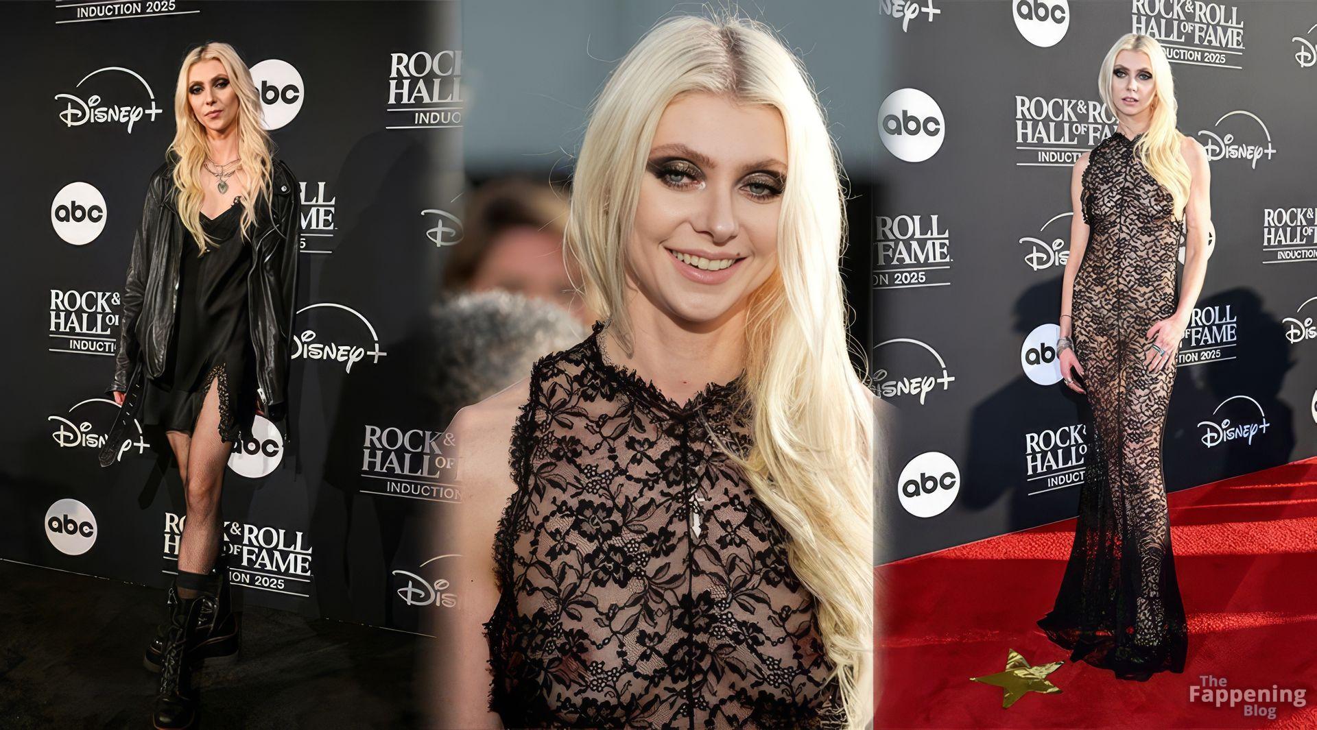 Taylor Momsen, la cantante principal de The Pretty Reckless, llegó a la Ceremonia de Ingreso al Salón de la Fama del Rock & Roll en Los Ángeles el 8 de noviembre de 2025, luciendo un vestido halter de encaje negro transparente que dejaba sus pechos desnudos completamente a la vista.