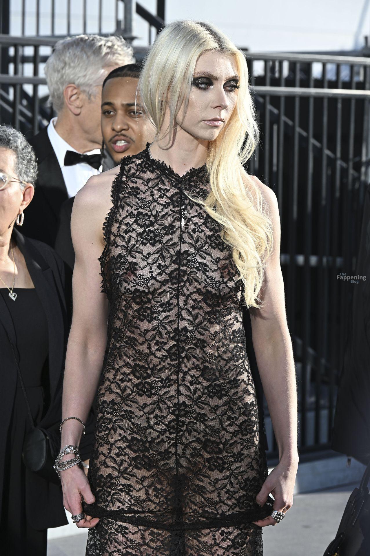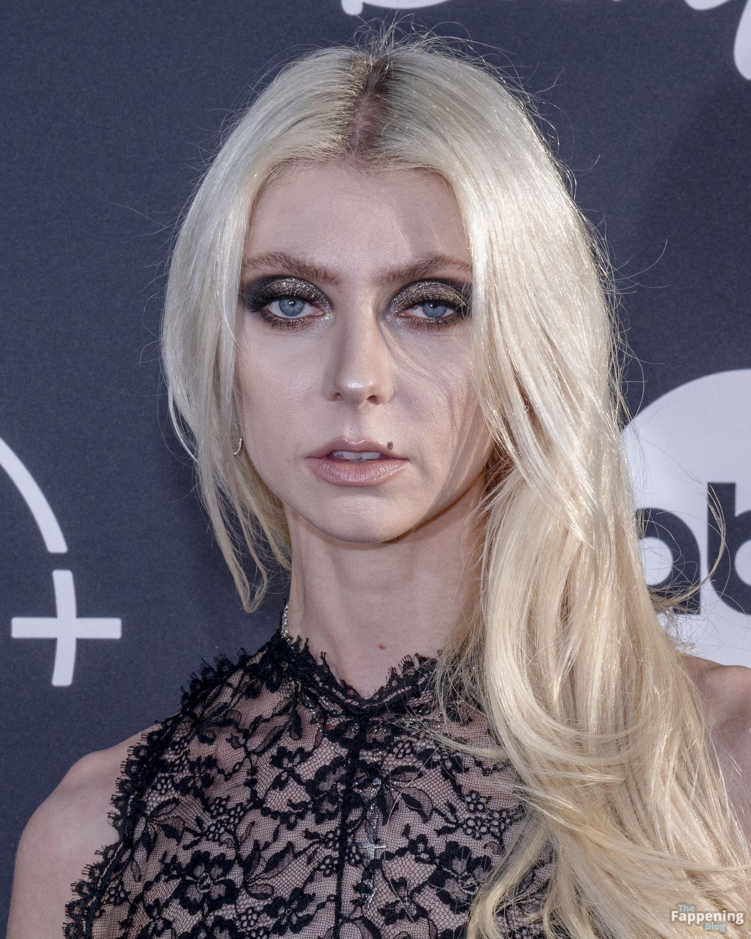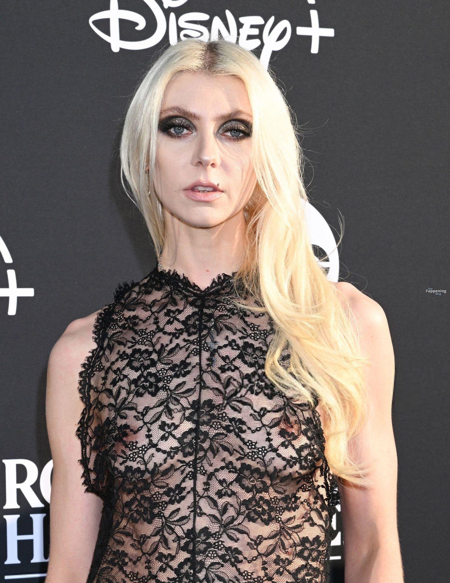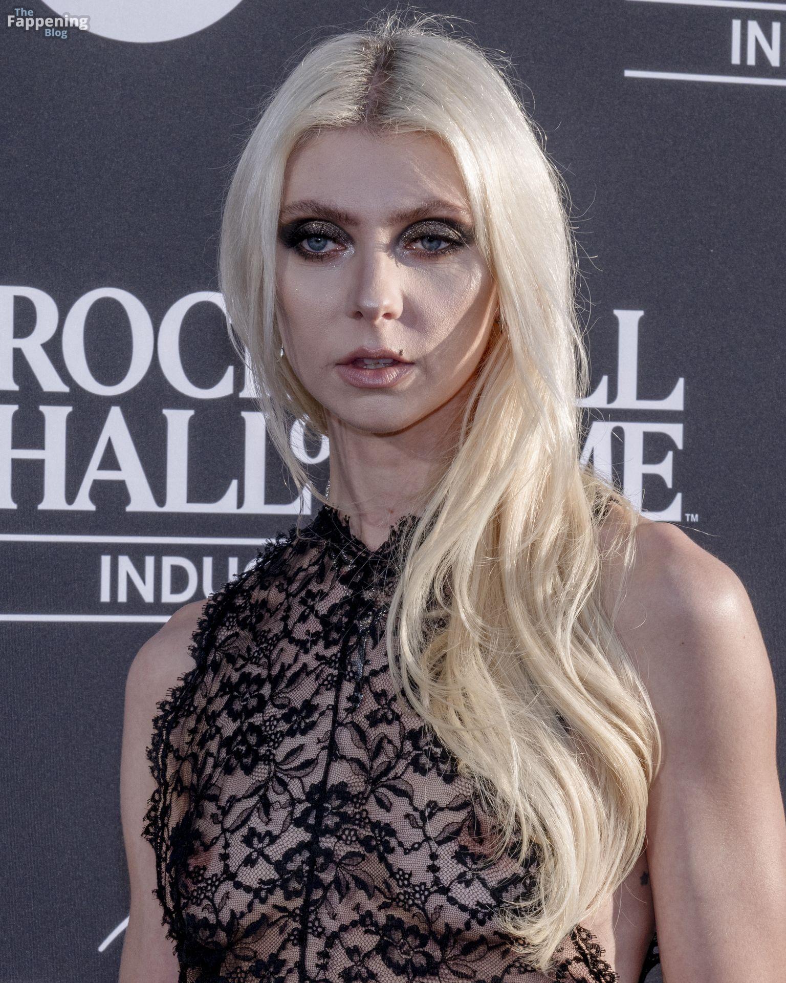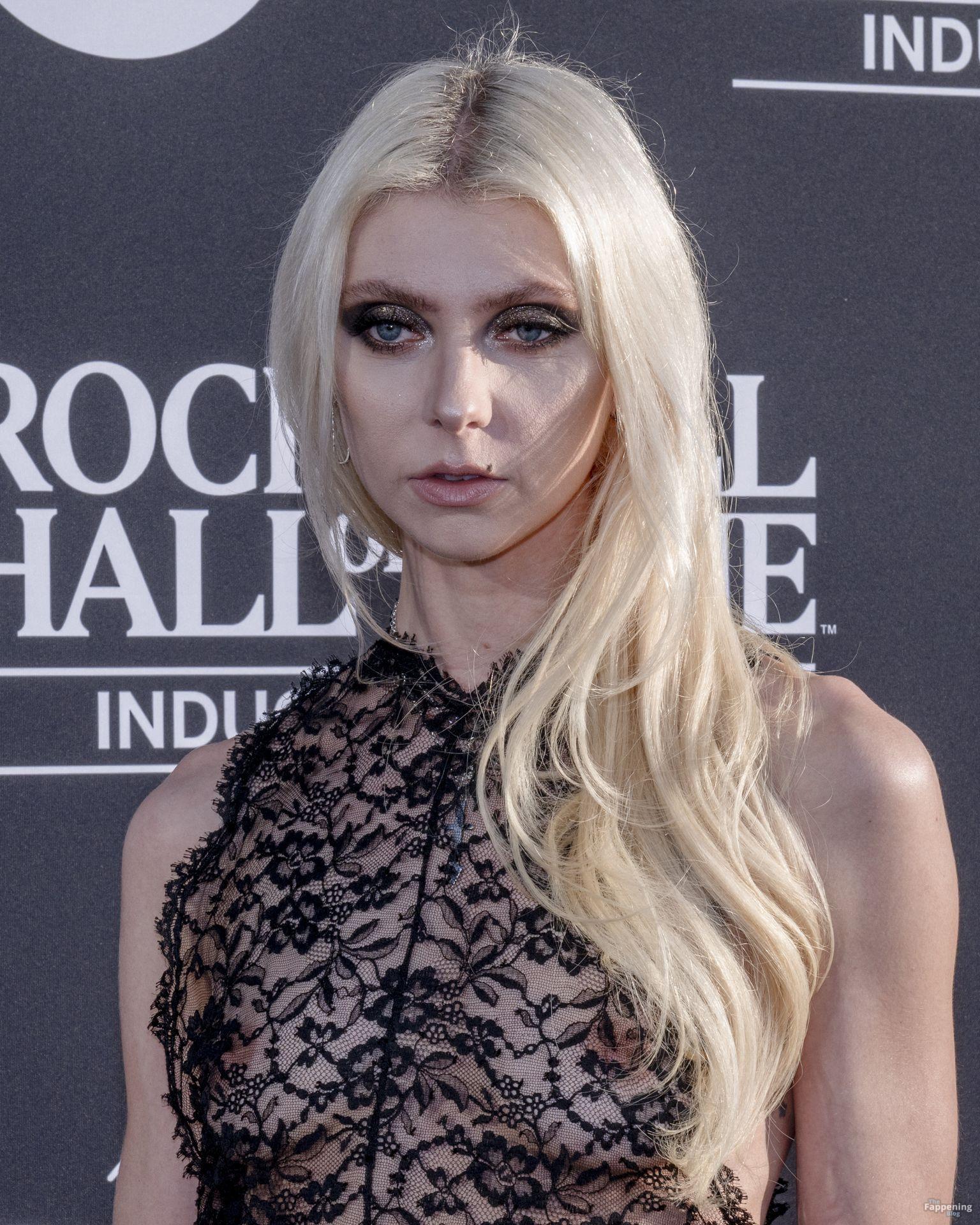 Taylor Momsen, la cantante principal de The Pretty Reckless, llegó a la Ceremonia de Ingreso al Salón de la Fama del Rock & Roll en Los Ángeles el 8 de noviembre de 2025, luciendo un vestido halter de encaje negro transparente que dejaba sus pechos desnudos completamente a la vista.