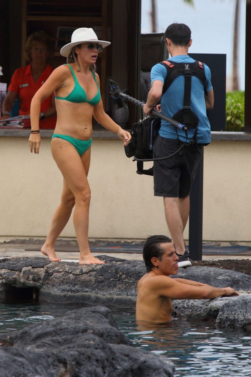 Teddi Jo Mellencamp fue vista usando un bikini verde junto a la piscina el día de la boda de su compañera de reparto Camille Grammer en Hawái, 20/10/2018. Teddi Mellencamp Arroyave es una estrella de televisión de realidad de 37 años (The Real Housewives of Beverly Hills).