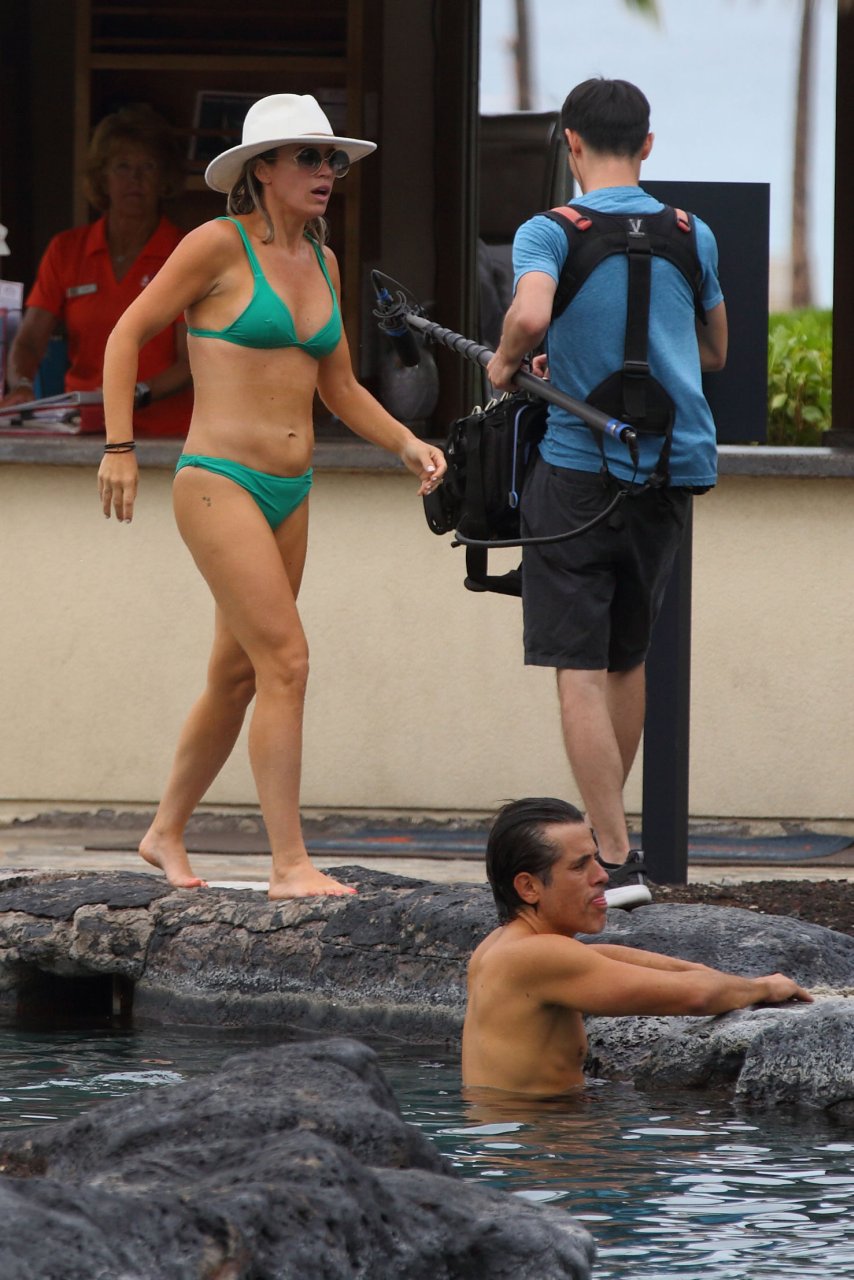 Teddi Jo Mellencamp fue vista usando un bikini verde junto a la piscina el día de la boda de su compañera de reparto Camille Grammer en Hawái, 20/10/2018. Teddi Mellencamp Arroyave es una estrella de televisión de realidad de 37 años (The Real Housewives of Beverly Hills).
