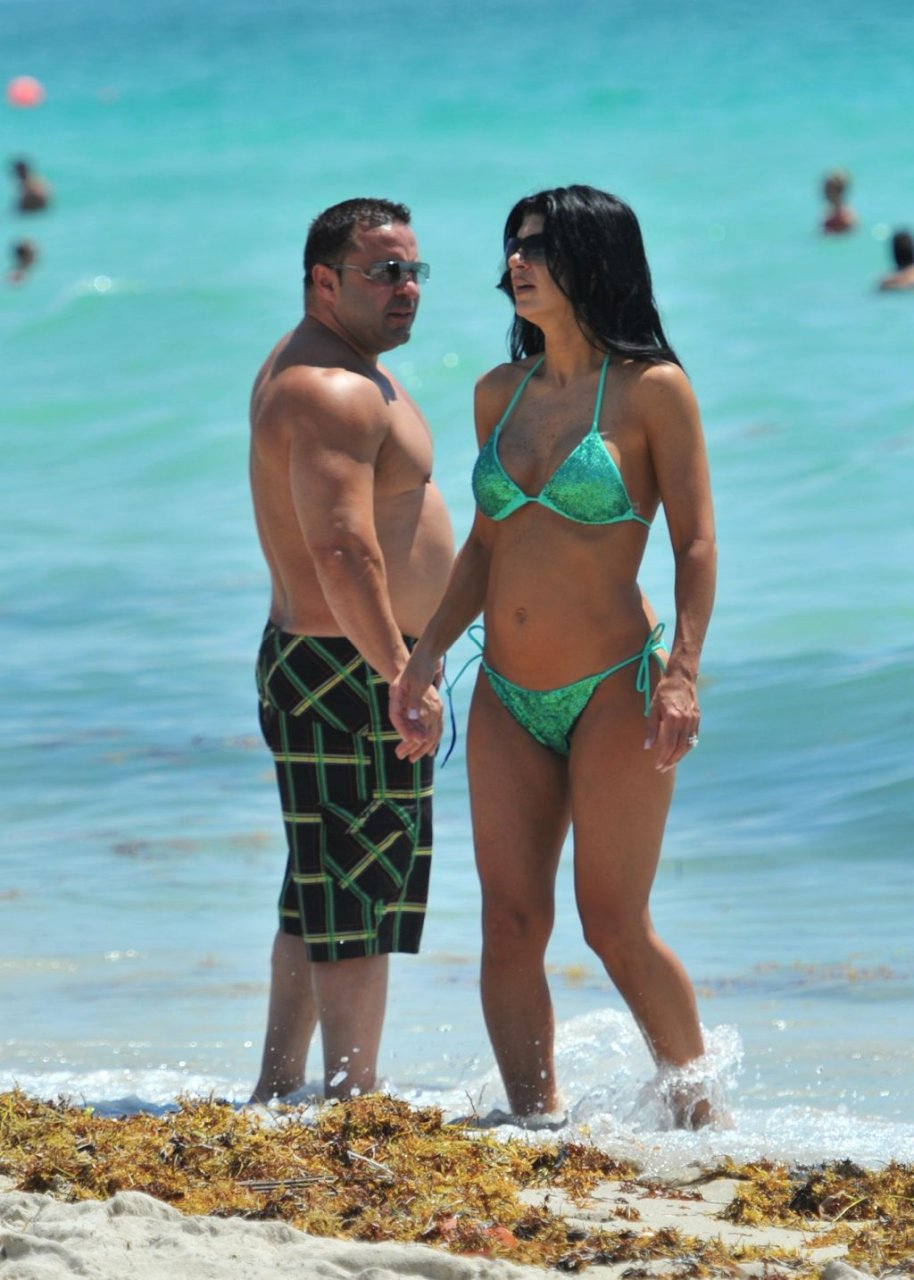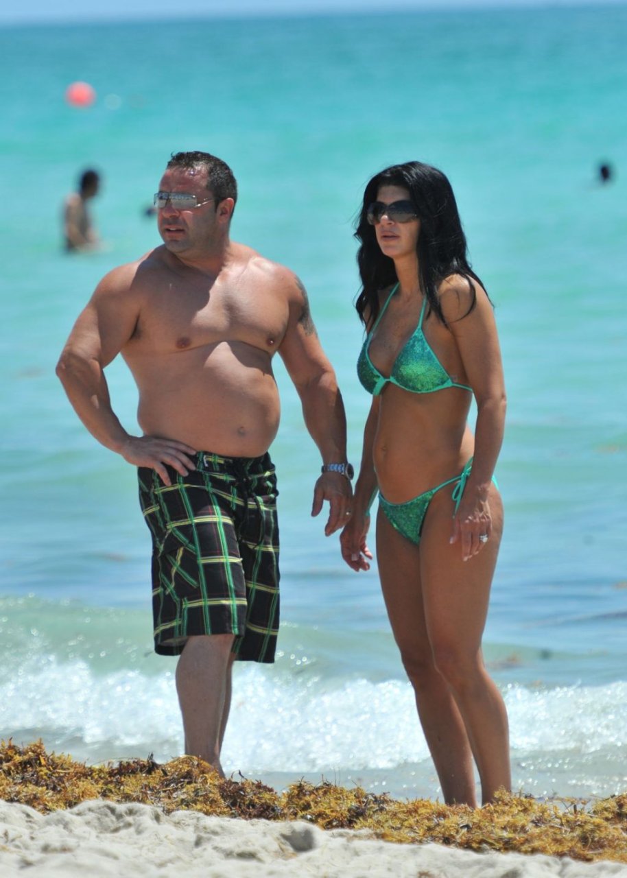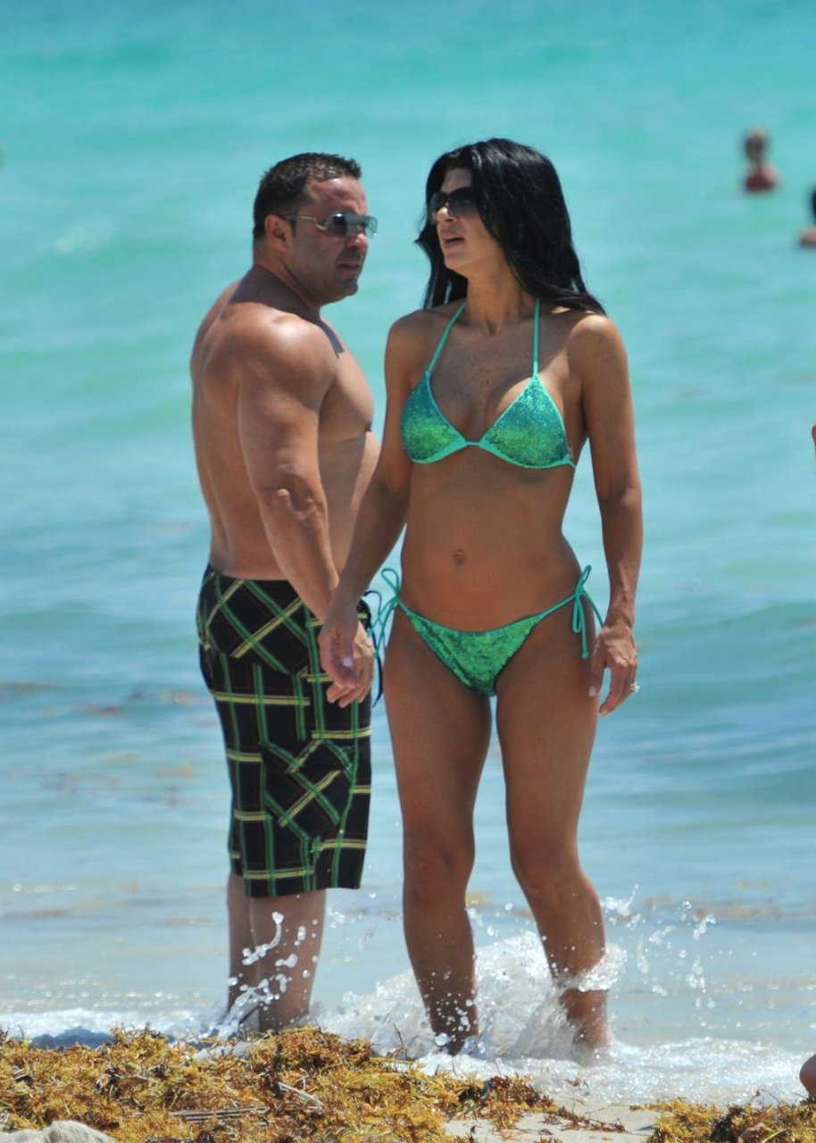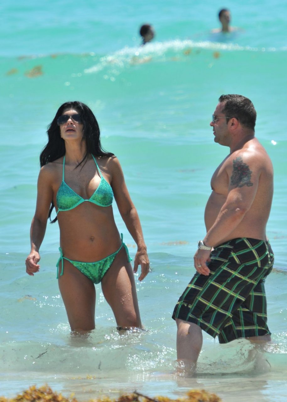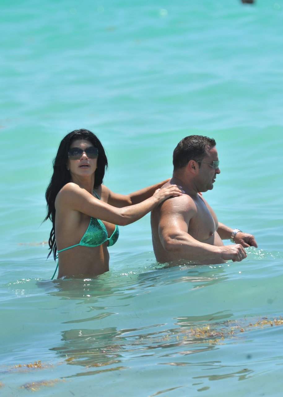 ¡Tiempos más felices! Teresa Giudice muestra su cuerpo en bikini mientras pasa un tiempo con su esposo Joe en Miami Beach, 21/05/2011.