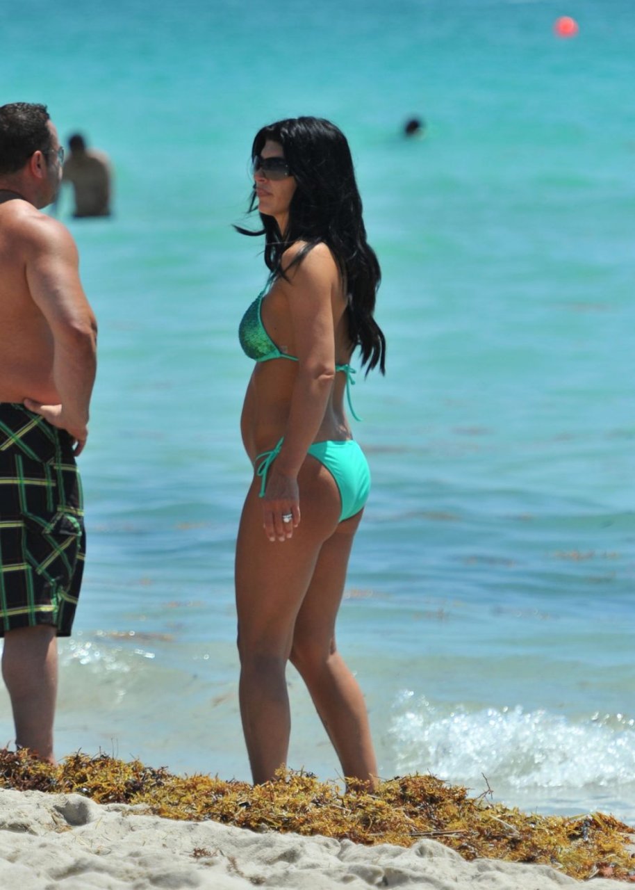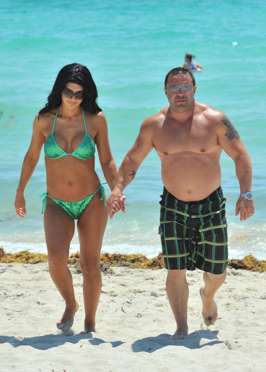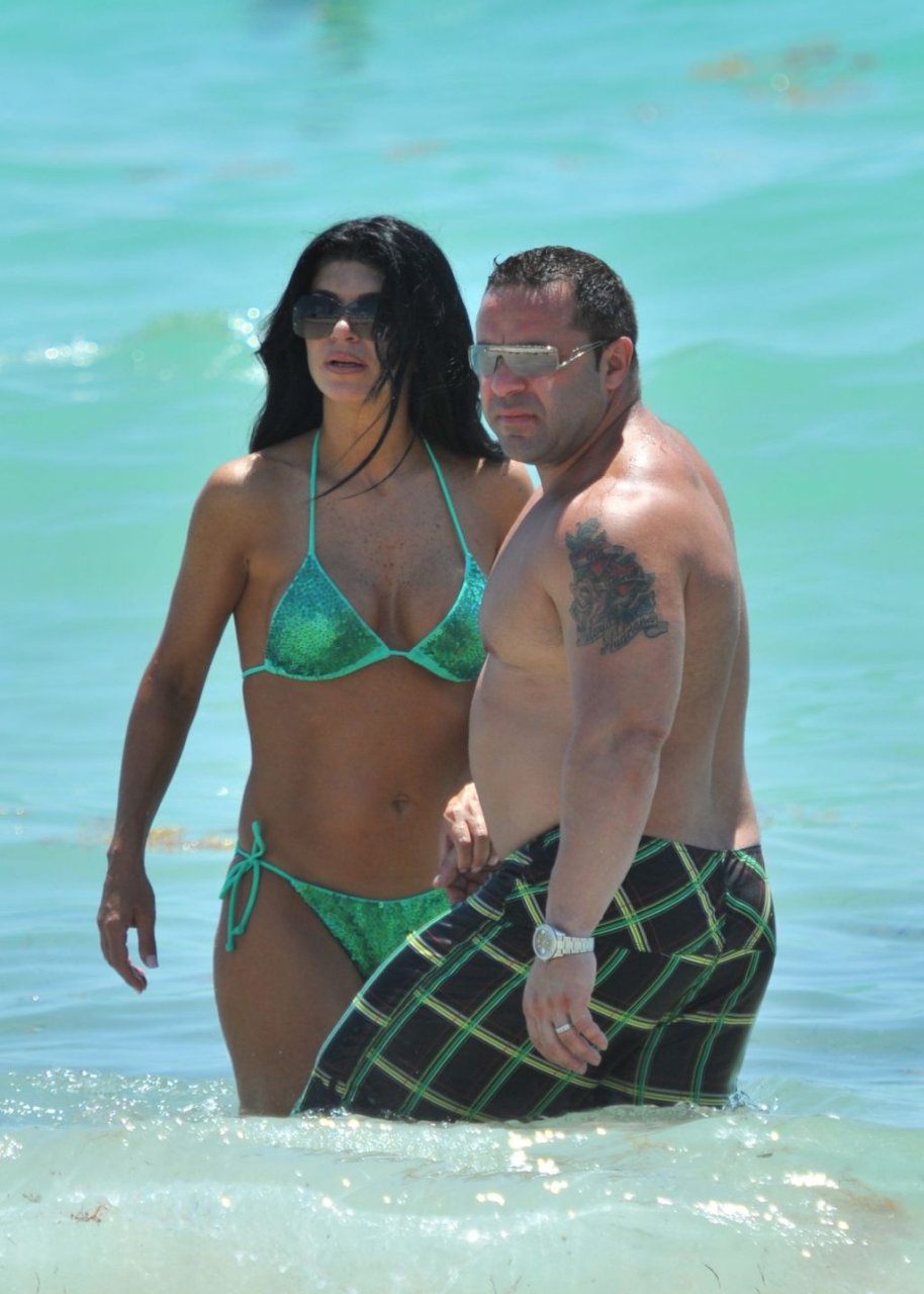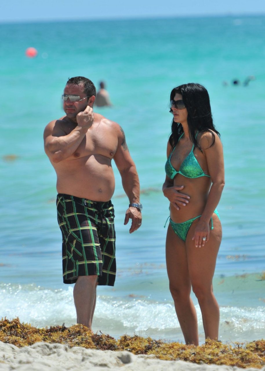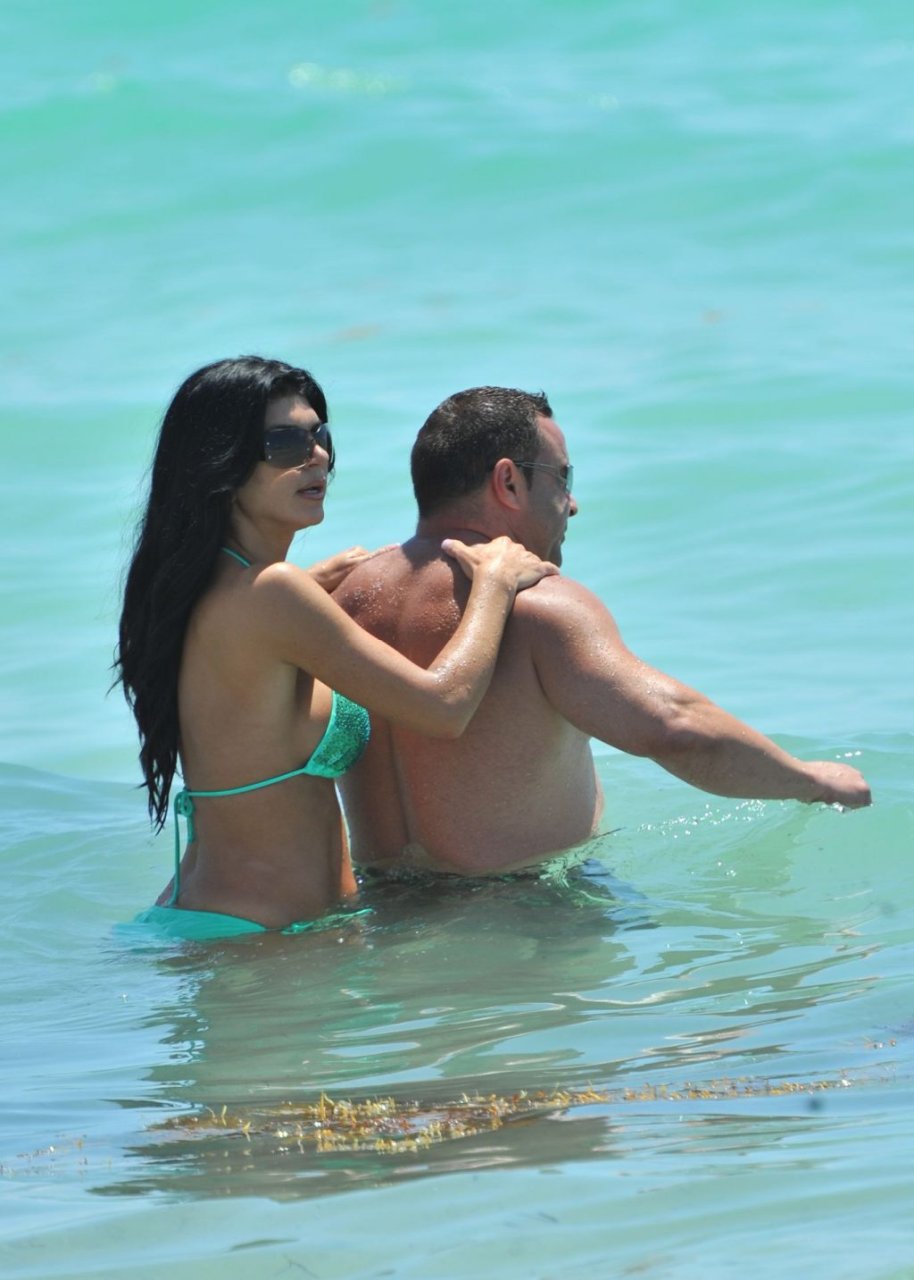 ¡Tiempos más felices! Teresa Giudice muestra su cuerpo en bikini mientras pasa un tiempo con su esposo Joe en Miami Beach, 21/05/2011.