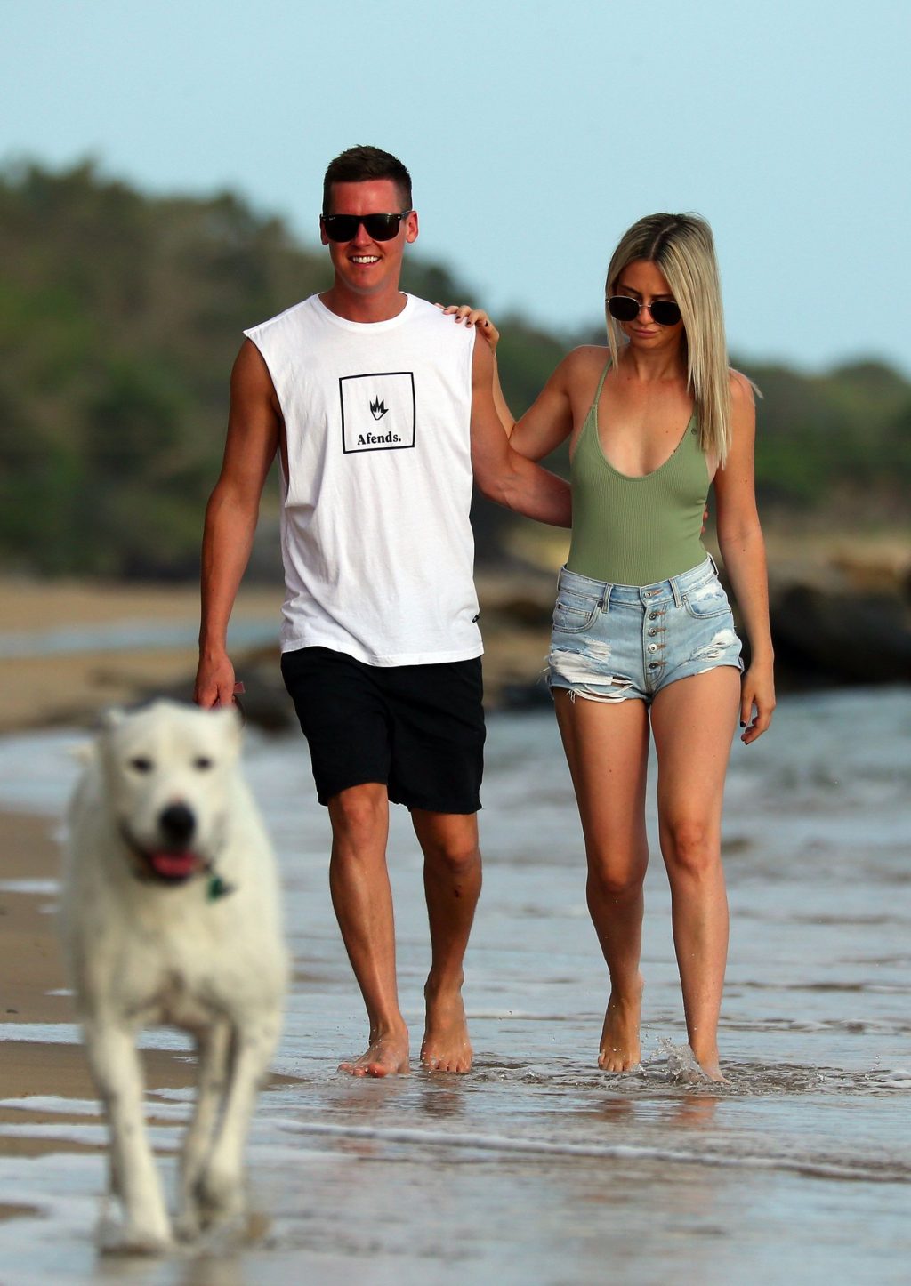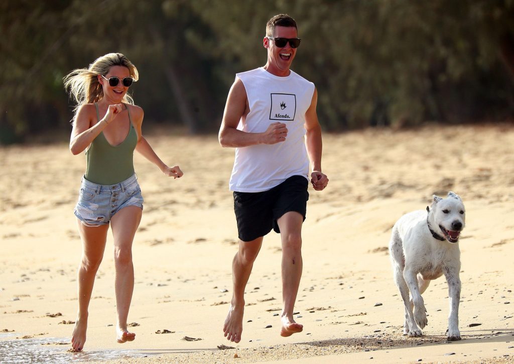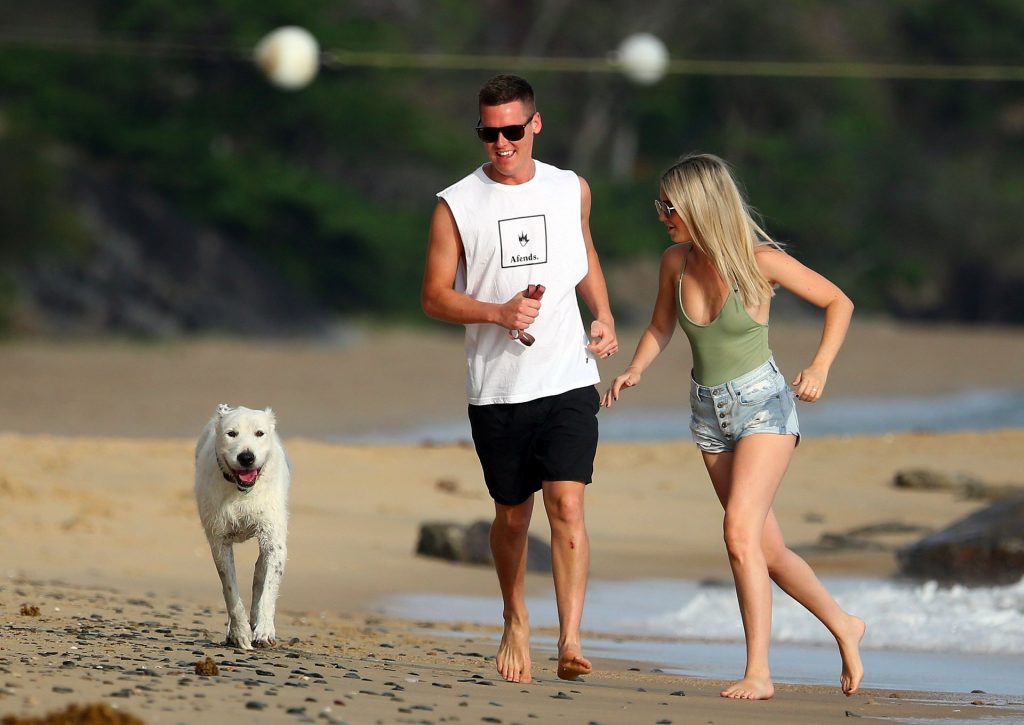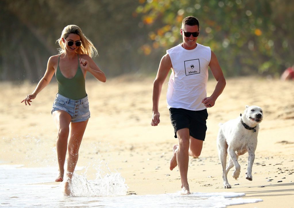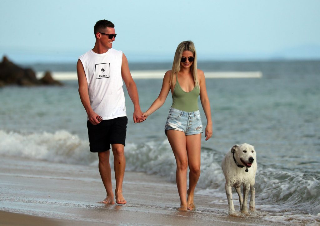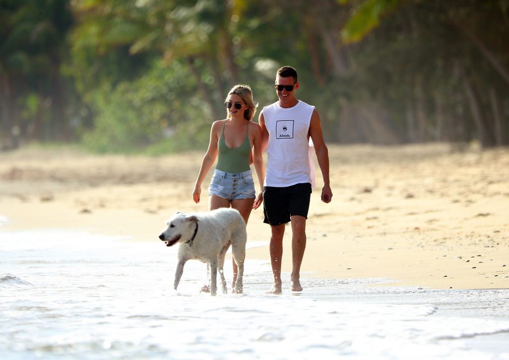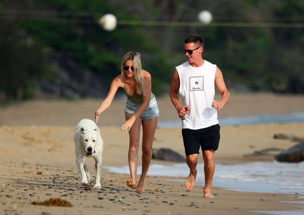 Ganadores de la serie de televisión ‘The Block’ 2019 Tess y Luke Struber salen a pasear por la playa con su perro Tilly en su ciudad natal de Cairns después de ganar el programa de telerrealidad y embolsarse AU $750,000.