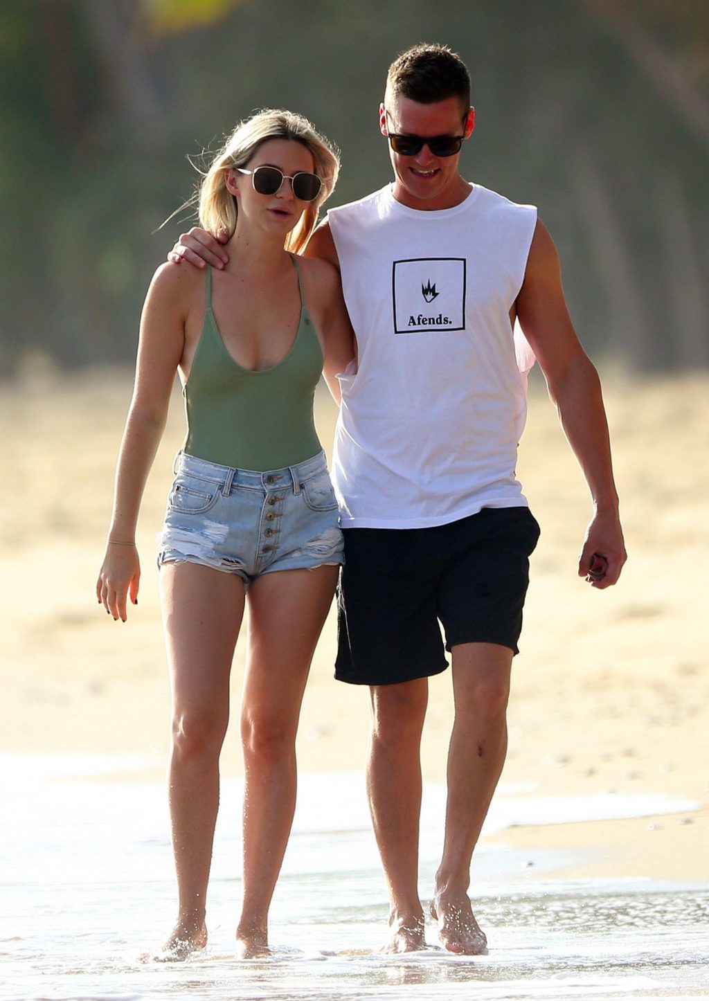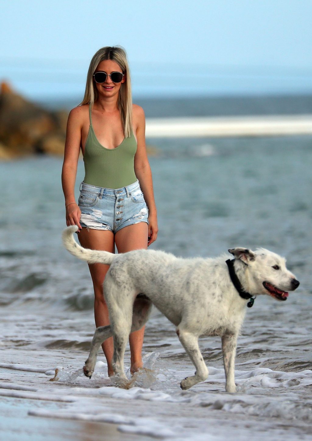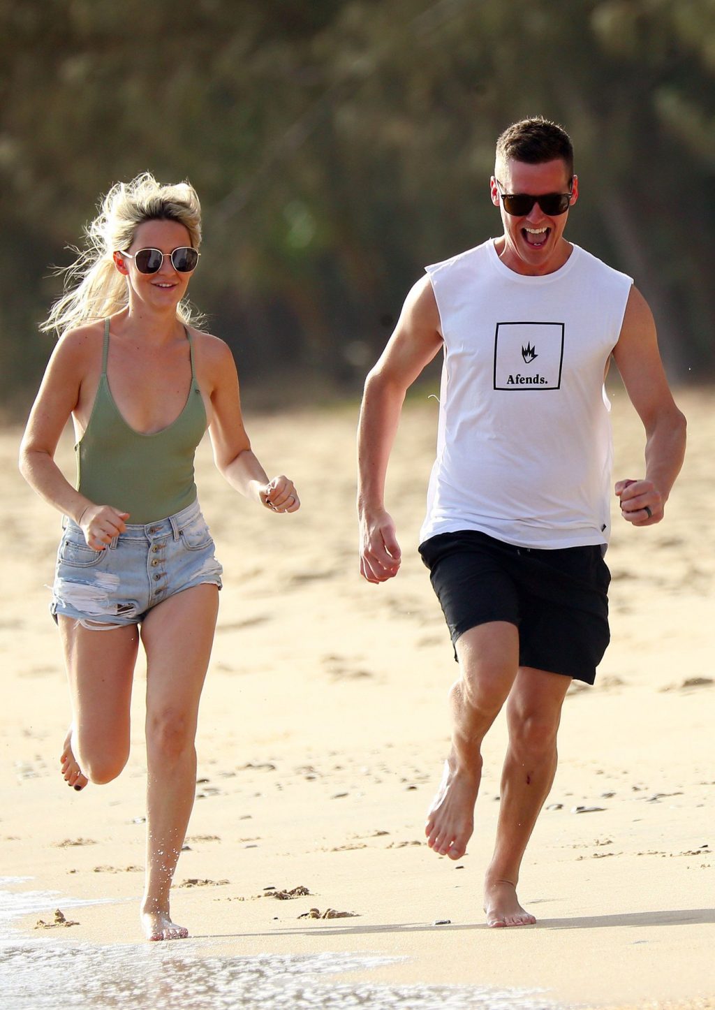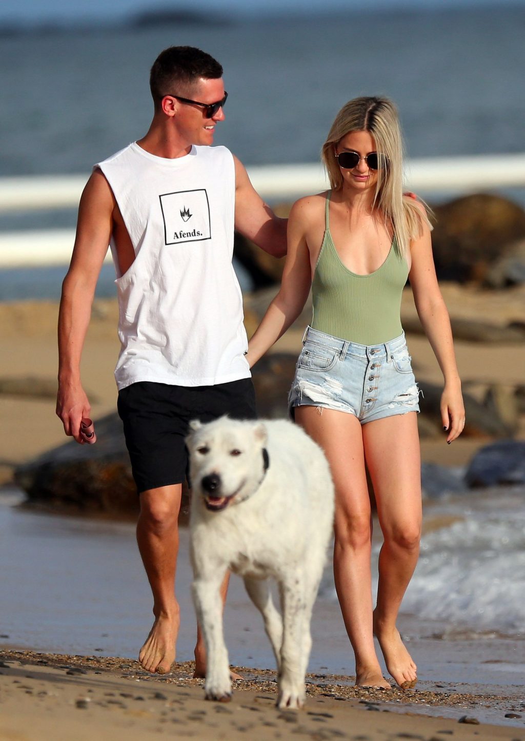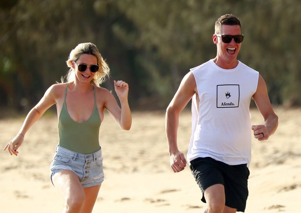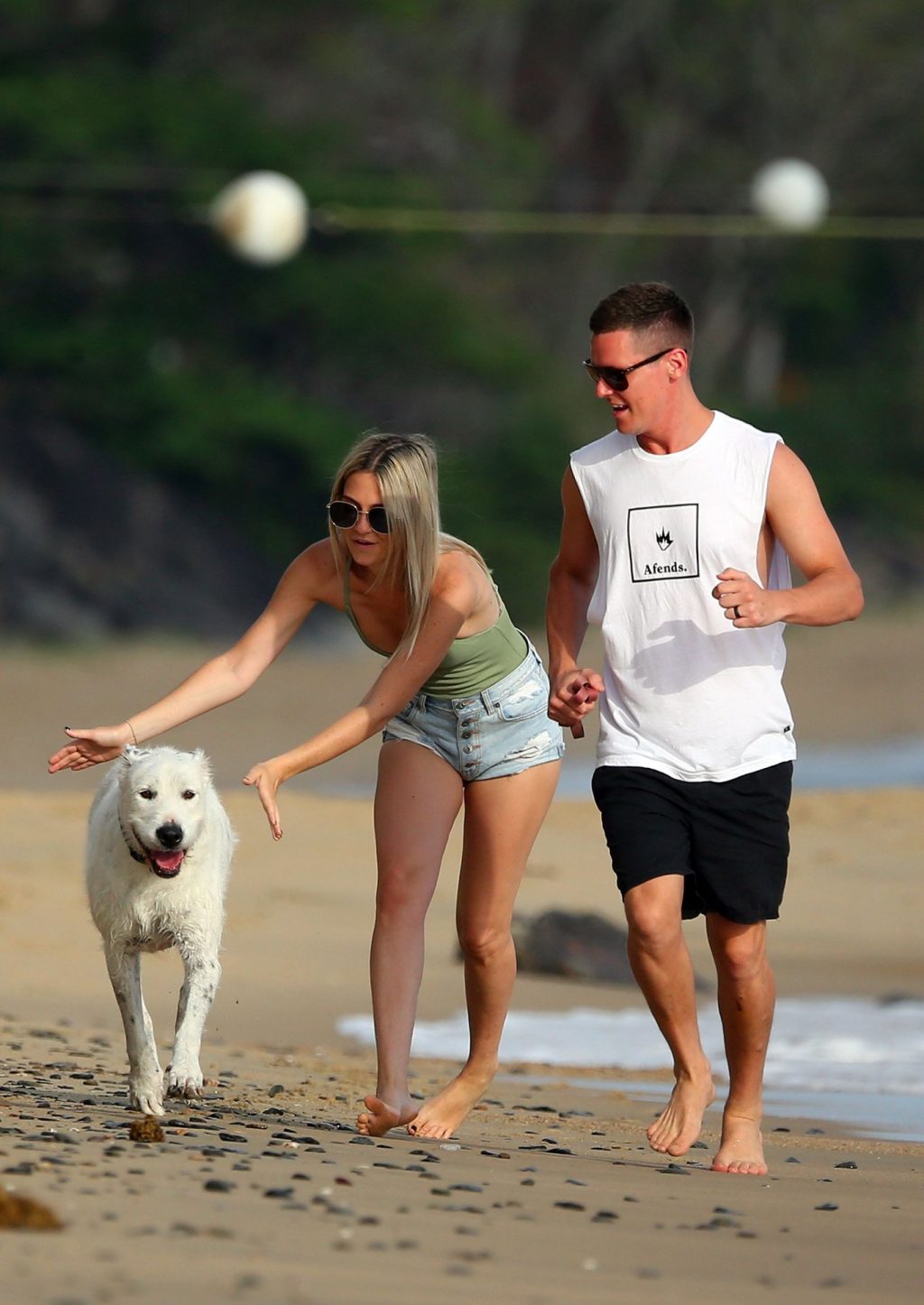 Ganadores de la serie de televisión ‘The Block’ 2019 Tess y Luke Struber salen a pasear por la playa con su perro Tilly en su ciudad natal de Cairns después de ganar el programa de telerrealidad y embolsarse AU $750,000.