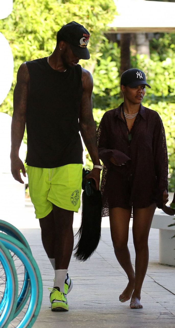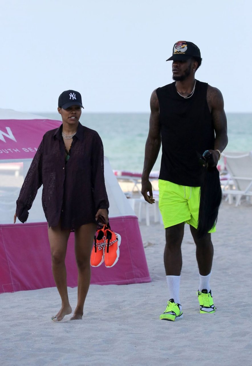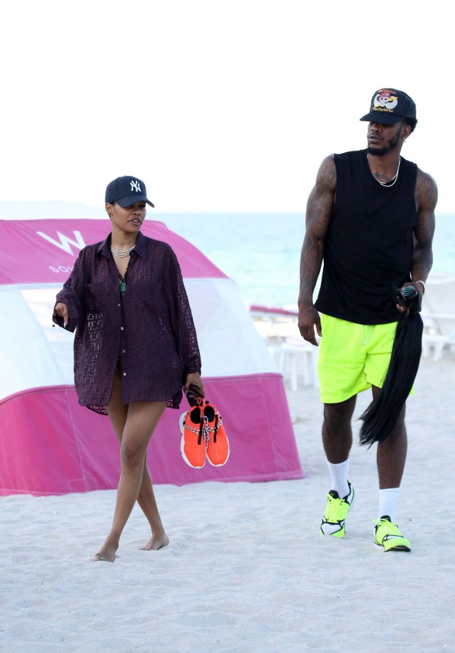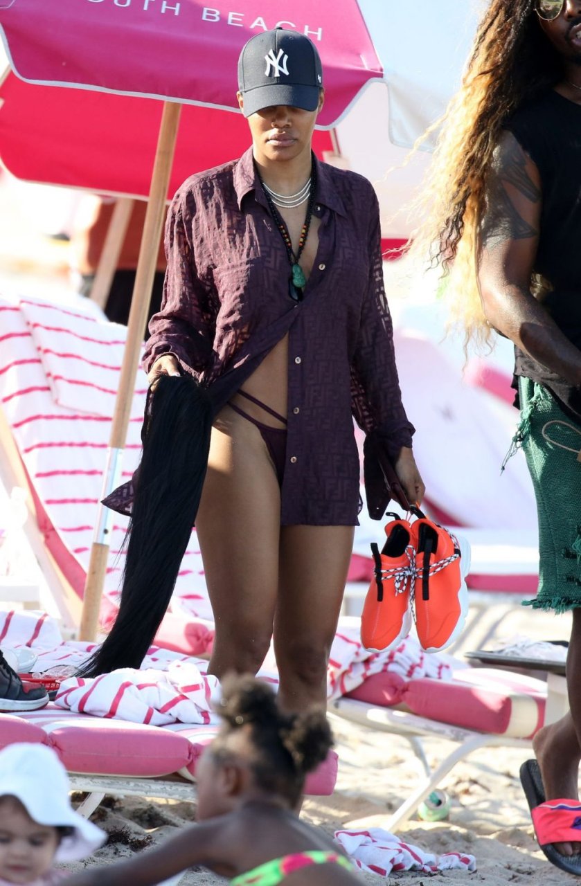 La cantante Teyana Taylor (28) pasa un día en la playa en familia con su esposo, el jugador de la NBA de Houston Rockets Iman Shumpert, y su hija en Miami Beach, Florida, 02/07/2019.