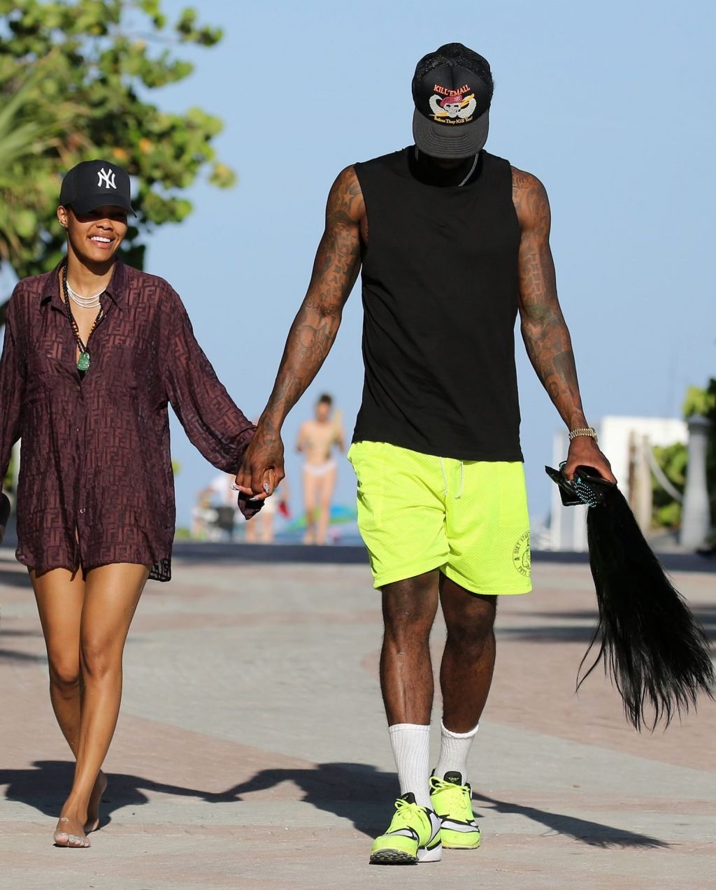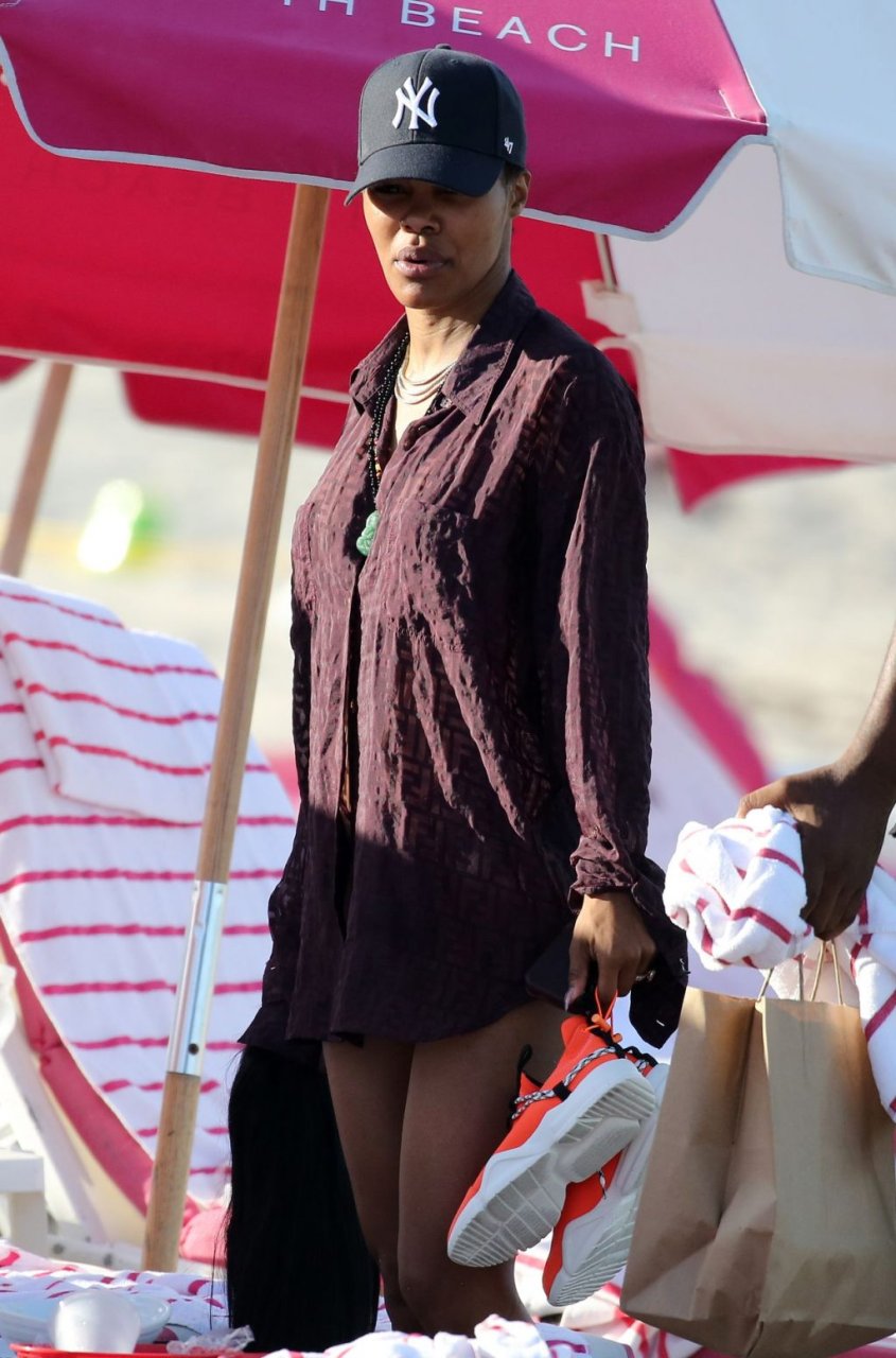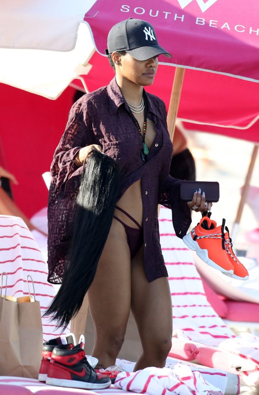 La cantante Teyana Taylor (28) pasa un día en la playa en familia con su esposo, el jugador de la NBA de Houston Rockets Iman Shumpert, y su hija en Miami Beach, Florida, 02/07/2019.