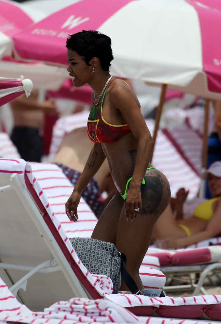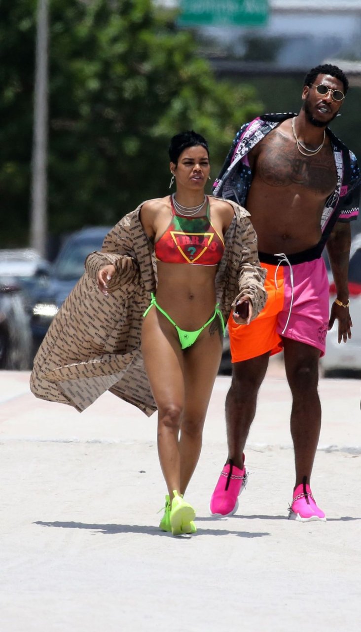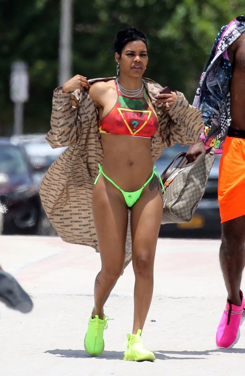 La cantante Teyana Taylor lleva un diminuto bikini de mezcla mientras disfruta del 4 de julio con su esposo, el jugador de la NBA Iman Shumpert, y su hija en Miami Beach, 04/07/2019.