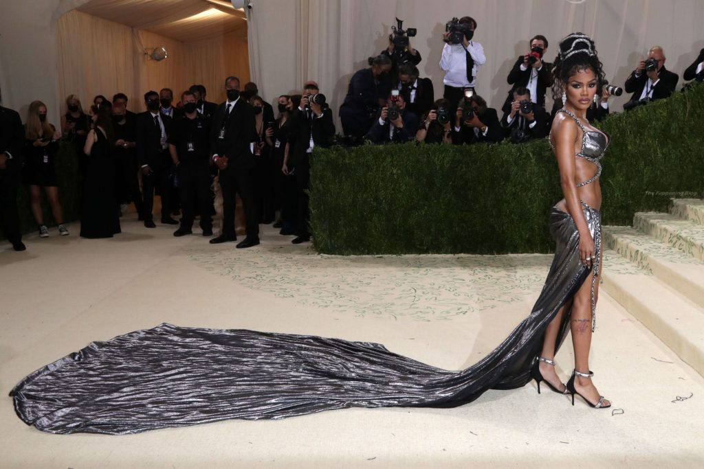 Cantante, modelo y bailarina Teyana Taylor posa en la gala benéfica del Instituto de Vestuario del Museo Metropolitano de Arte en Nueva York, 13/09/2021.