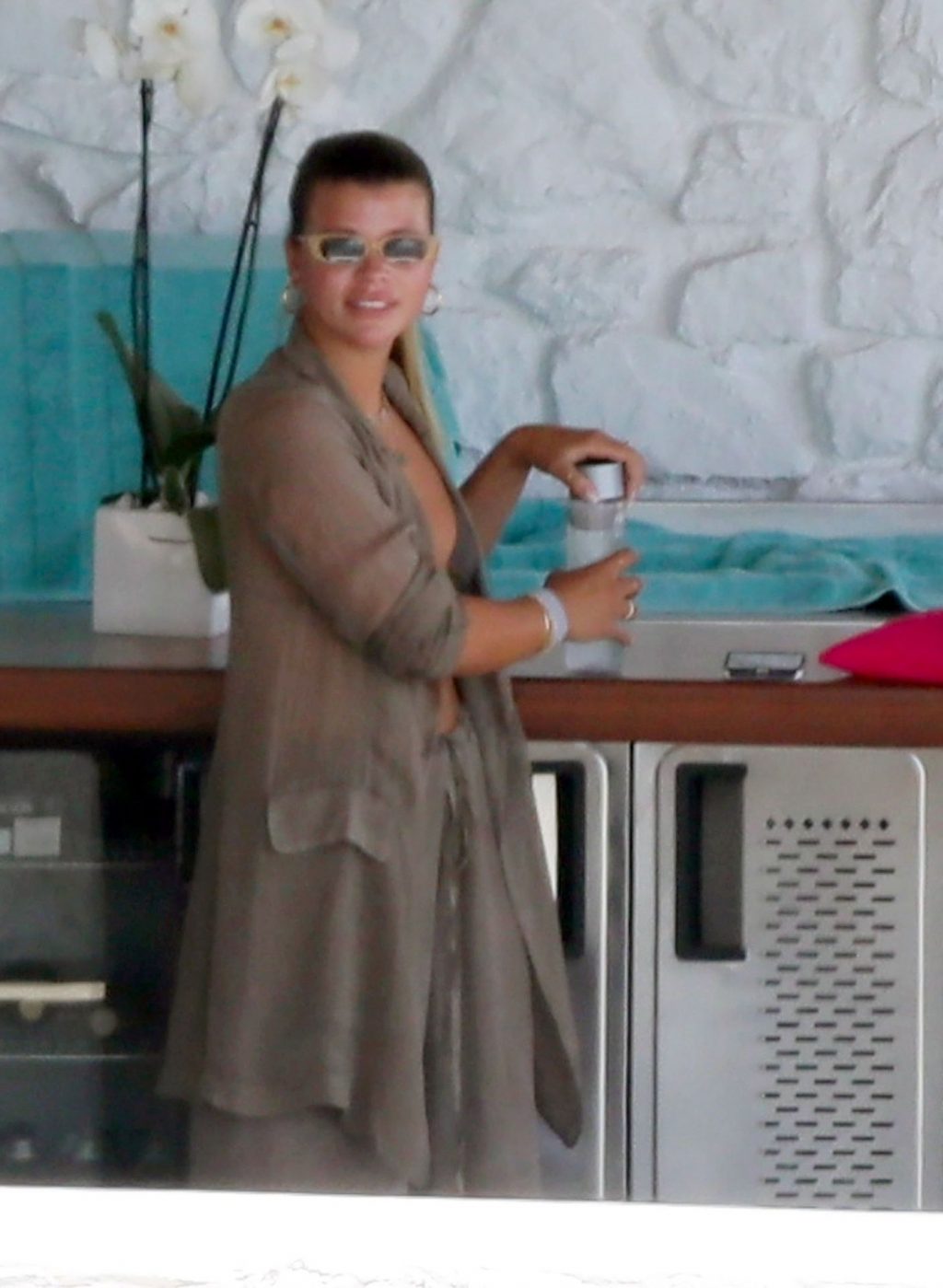Bajo el ardiente sol griego, la modelo estadounidense Sofia Richie, quien es la hermana menor de Nicole Richie y Miles Richie, disfruta de unas vacaciones familiares en la isla griega de Mykonos, 24/06/2021.