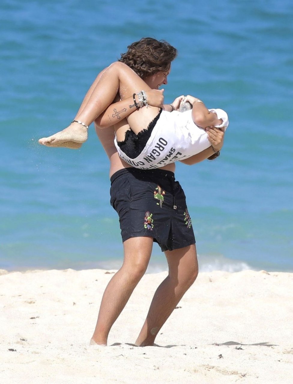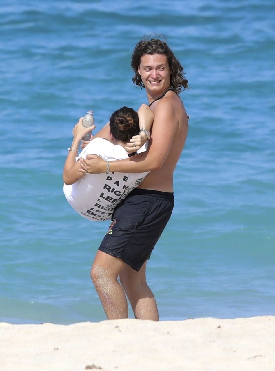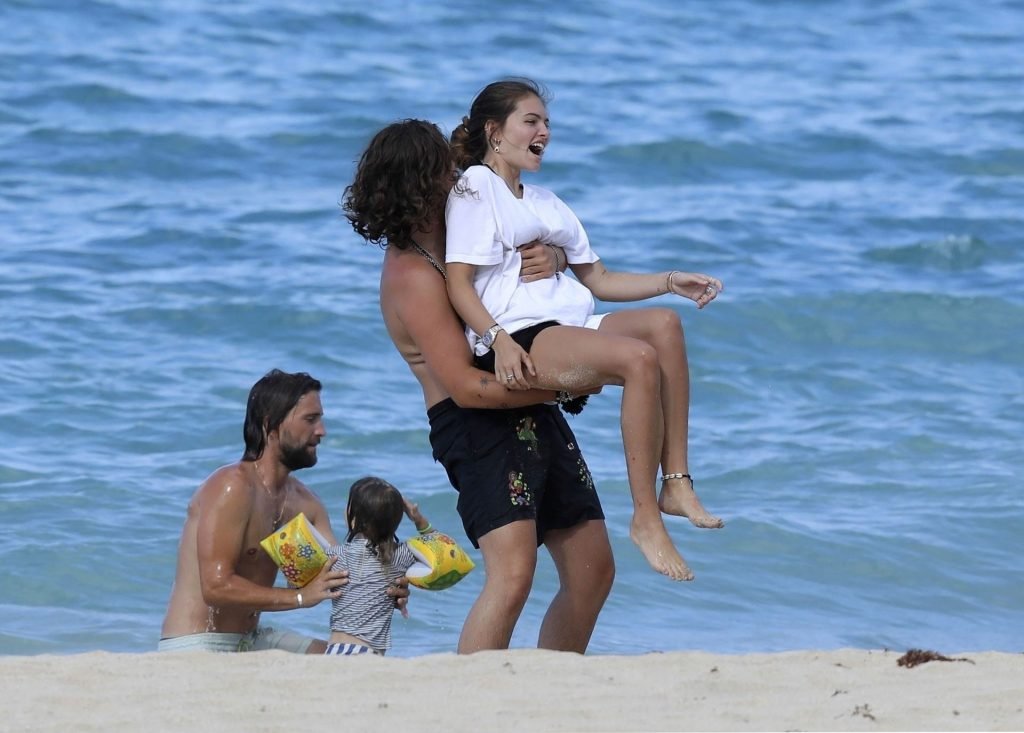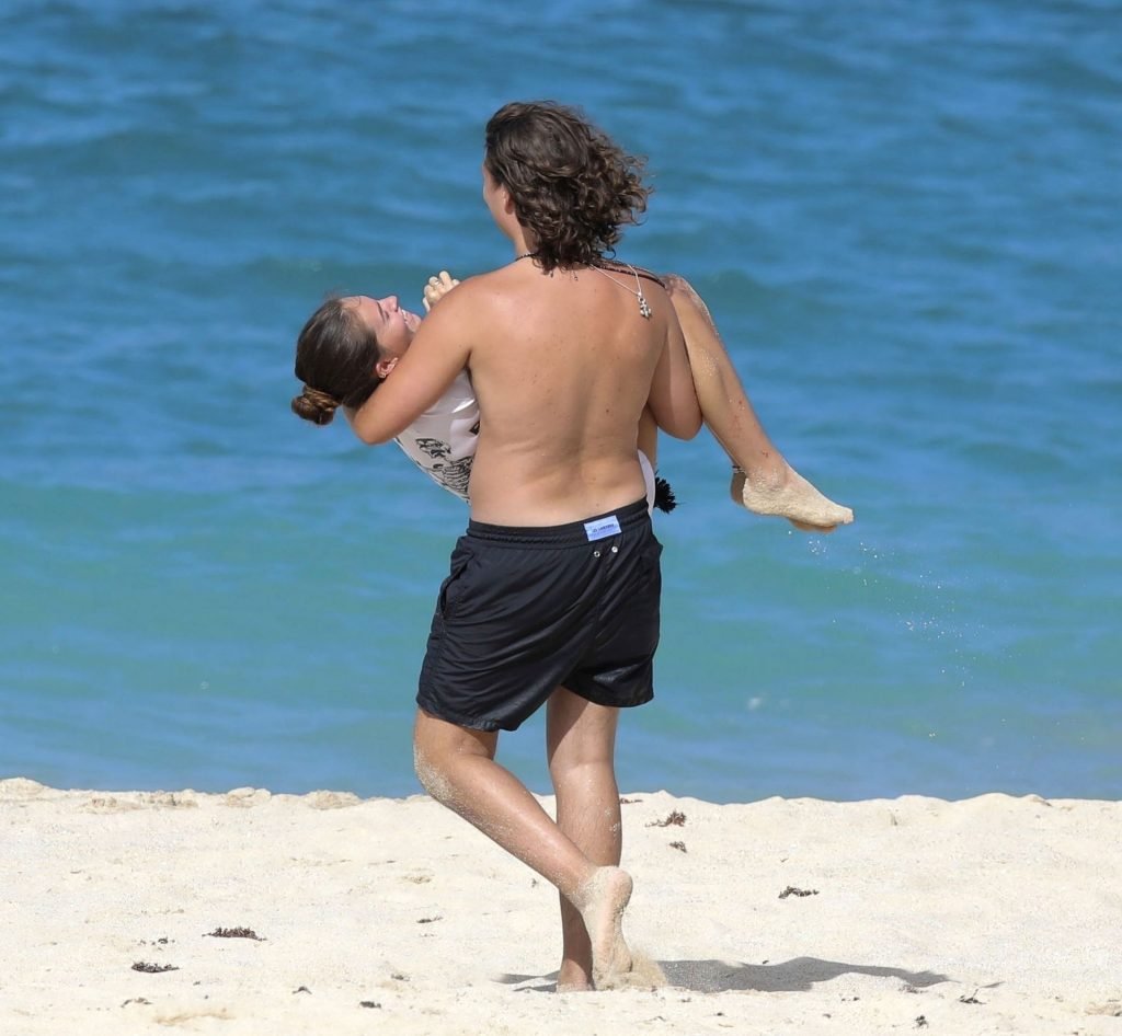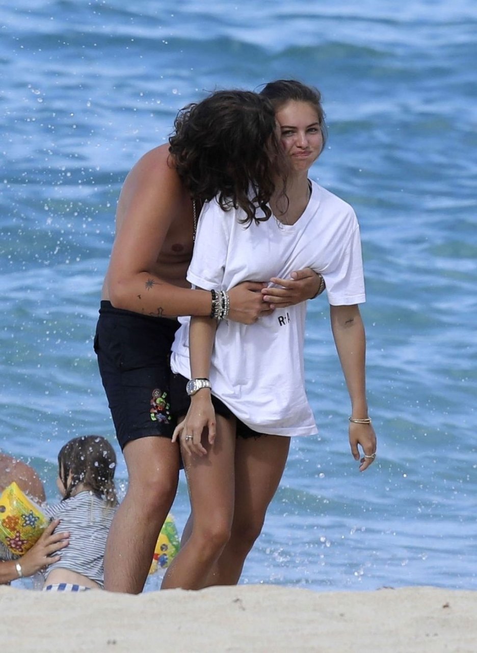 Bajo el sol del Caribe, la modelo francesa de 18 años Thylane Blondeau y su novio DJ Milane Meritte juegan en las playas de St Barts y parecen muy enamorados mostrando públicamente su afecto, 14/08/2019.