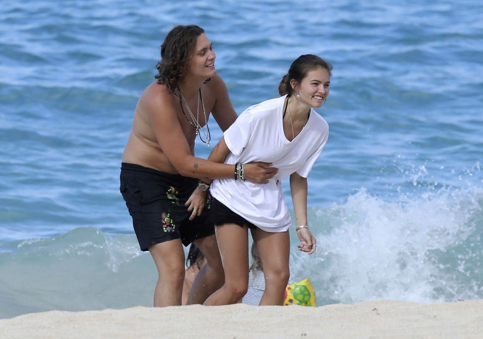 Bajo el sol del Caribe, la modelo francesa de 18 años Thylane Blondeau y su novio DJ Milane Meritte juegan en las playas de St Barts y parecen muy enamorados mostrando públicamente su afecto, 14/08/2019.