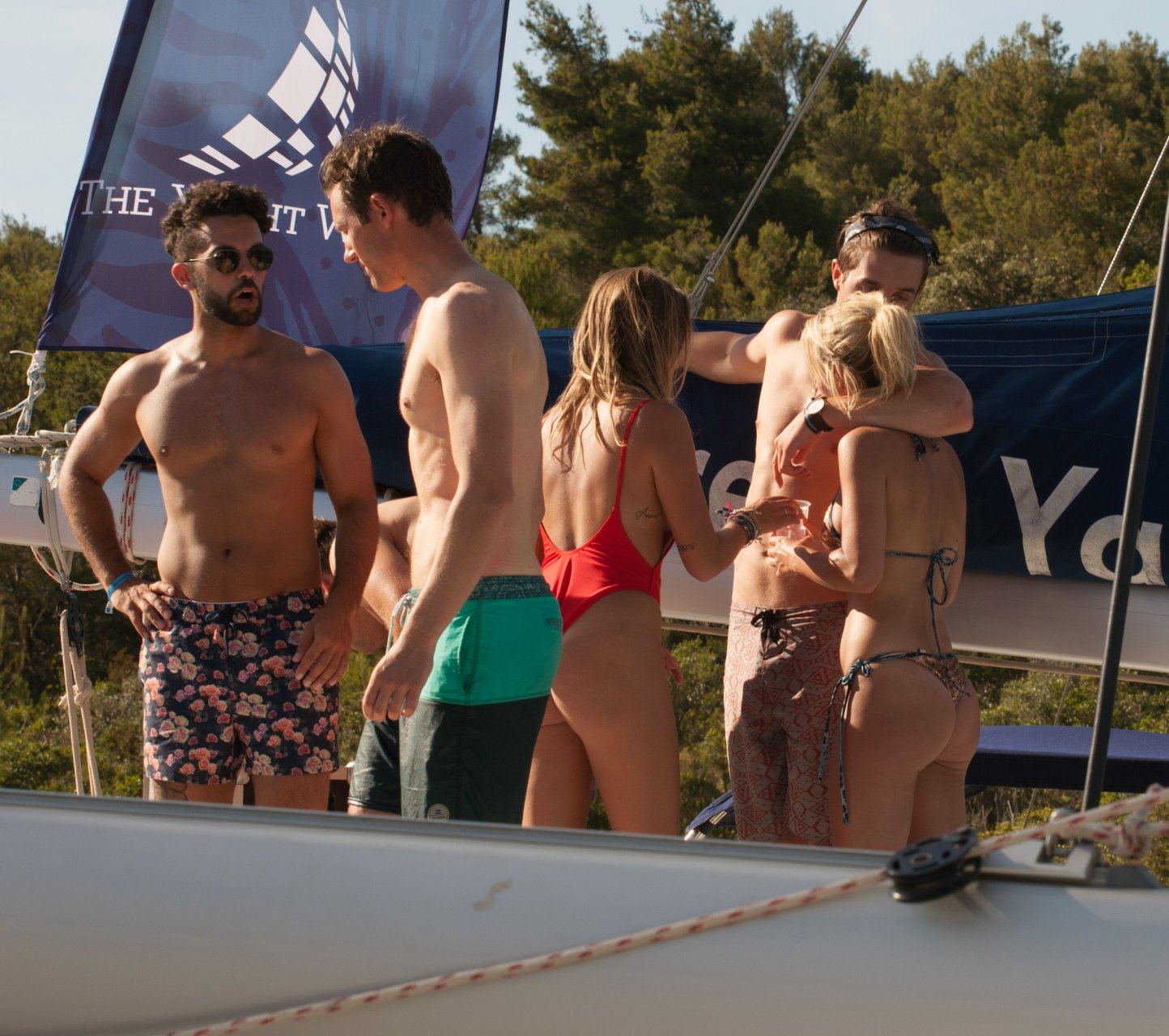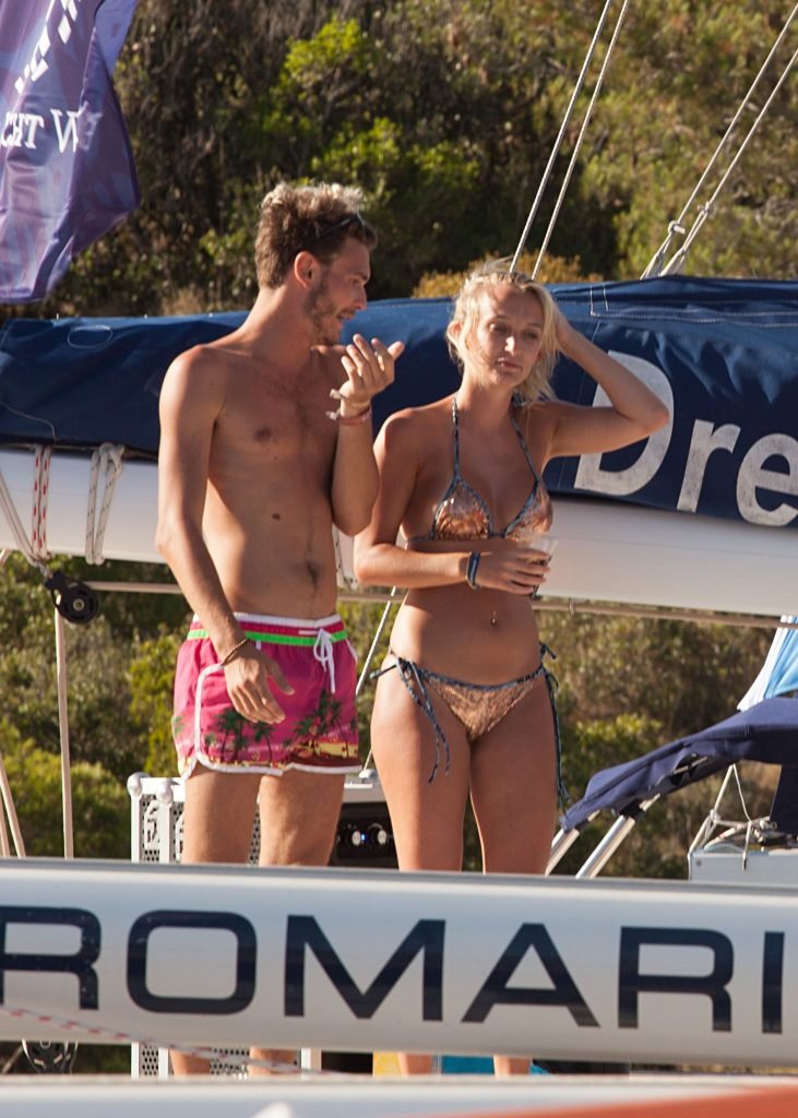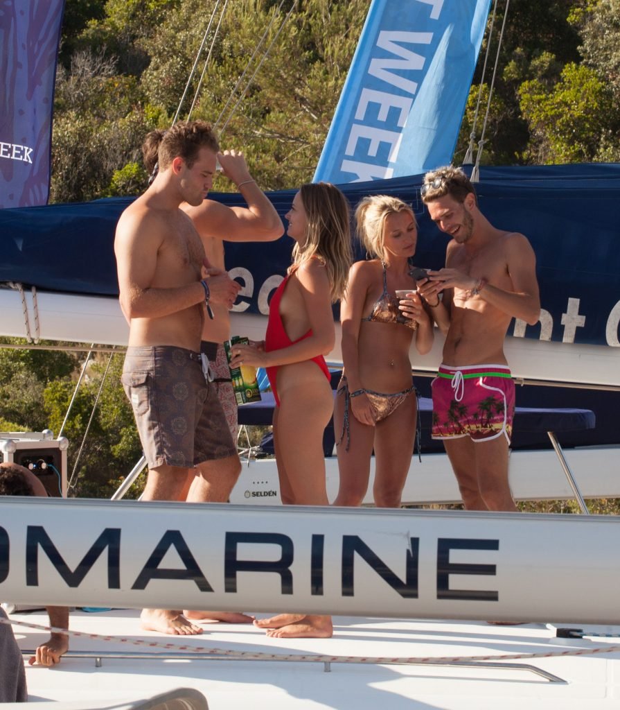 Tiffany Watson y amigos vistos pasando el rato en un yate en Croacia, 14/06/2017. Tiffany Watson es una estrella británica de reality (Made in Chelsea). Edad: 23.