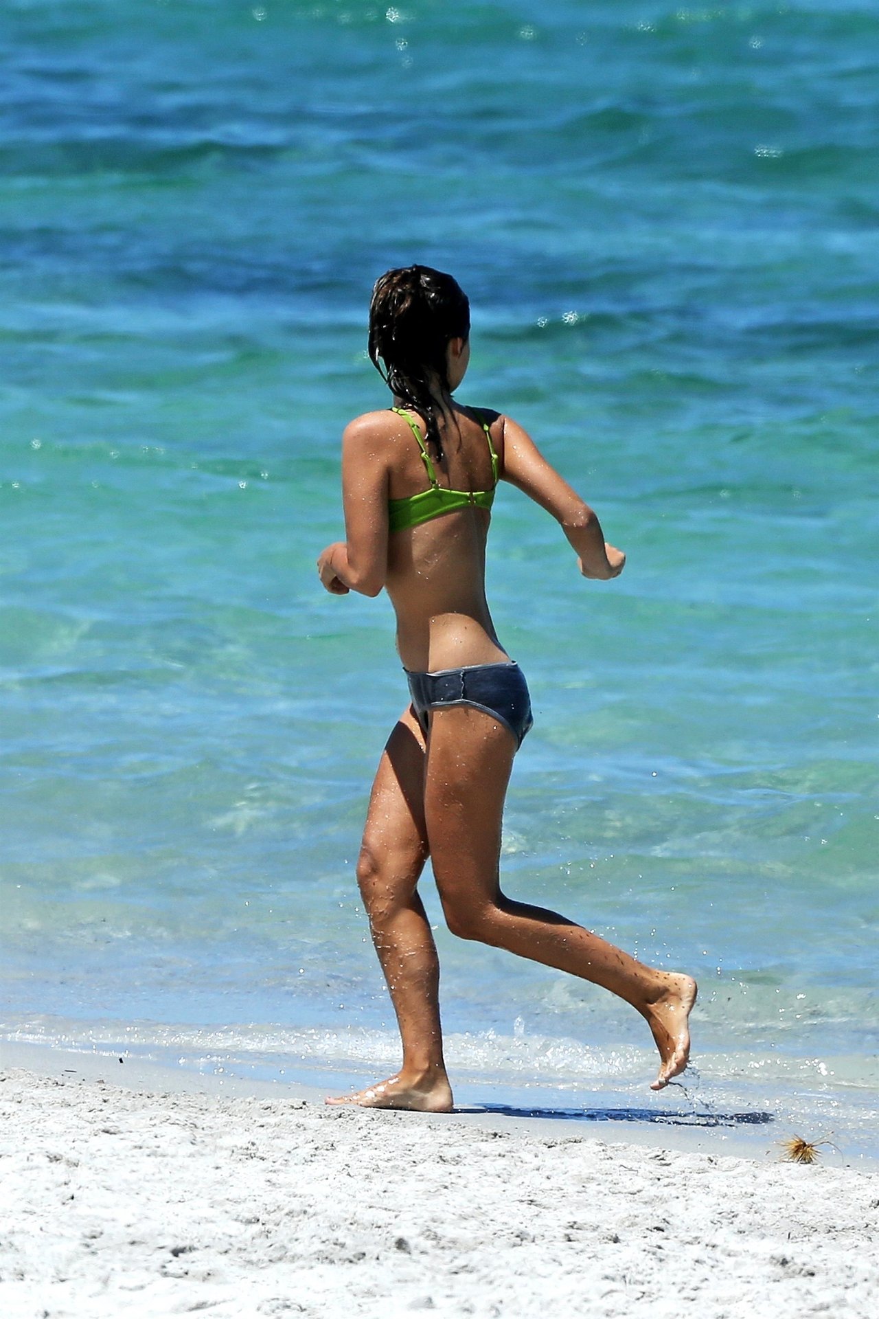 Tiger-Lily lleva un top de bikini mucho más grande aquí, quizás porque no quiere que sus pezones se salgan como la última vez, pero sus bragas de baño están demasiado sueltas y tiene que estar subiéndolas para evitar que su vello púbico quede expuesto al mundo.