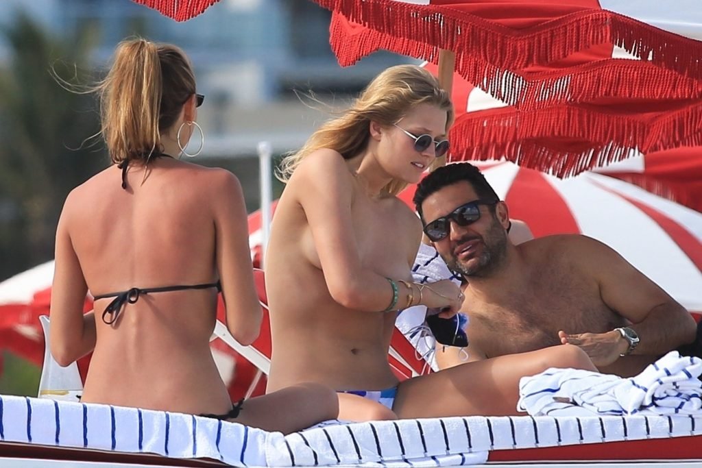 Models Toni Garrn, 25, y Alina Baikova, 28, se divierten en Miami con amigos durante las vacaciones de primavera, 01/04/2018. Garrn se quedó topless y mostró un poco para un amigo agradecido, antes de darse un chapuzón en el océano. Si te perdiste la publicación anterior, échale un vistazo.