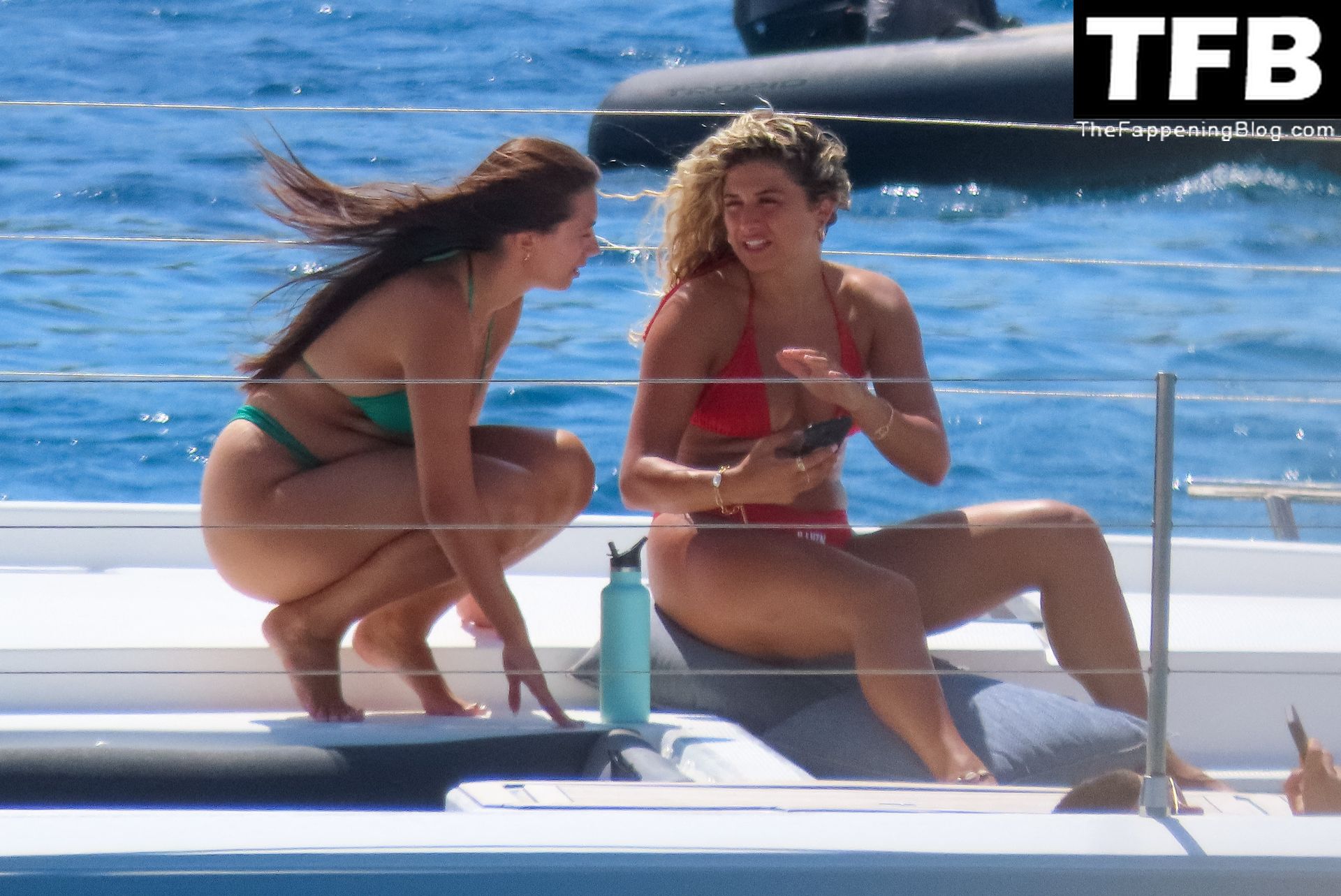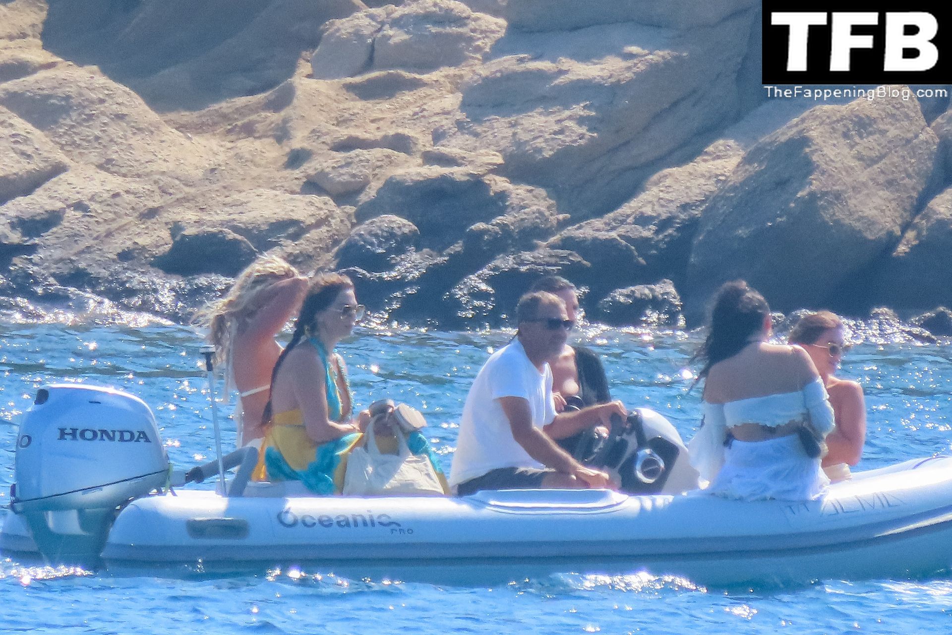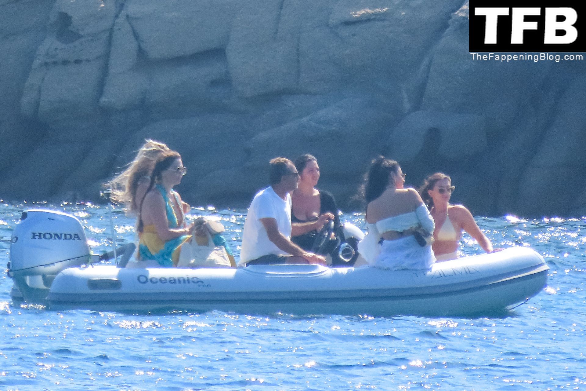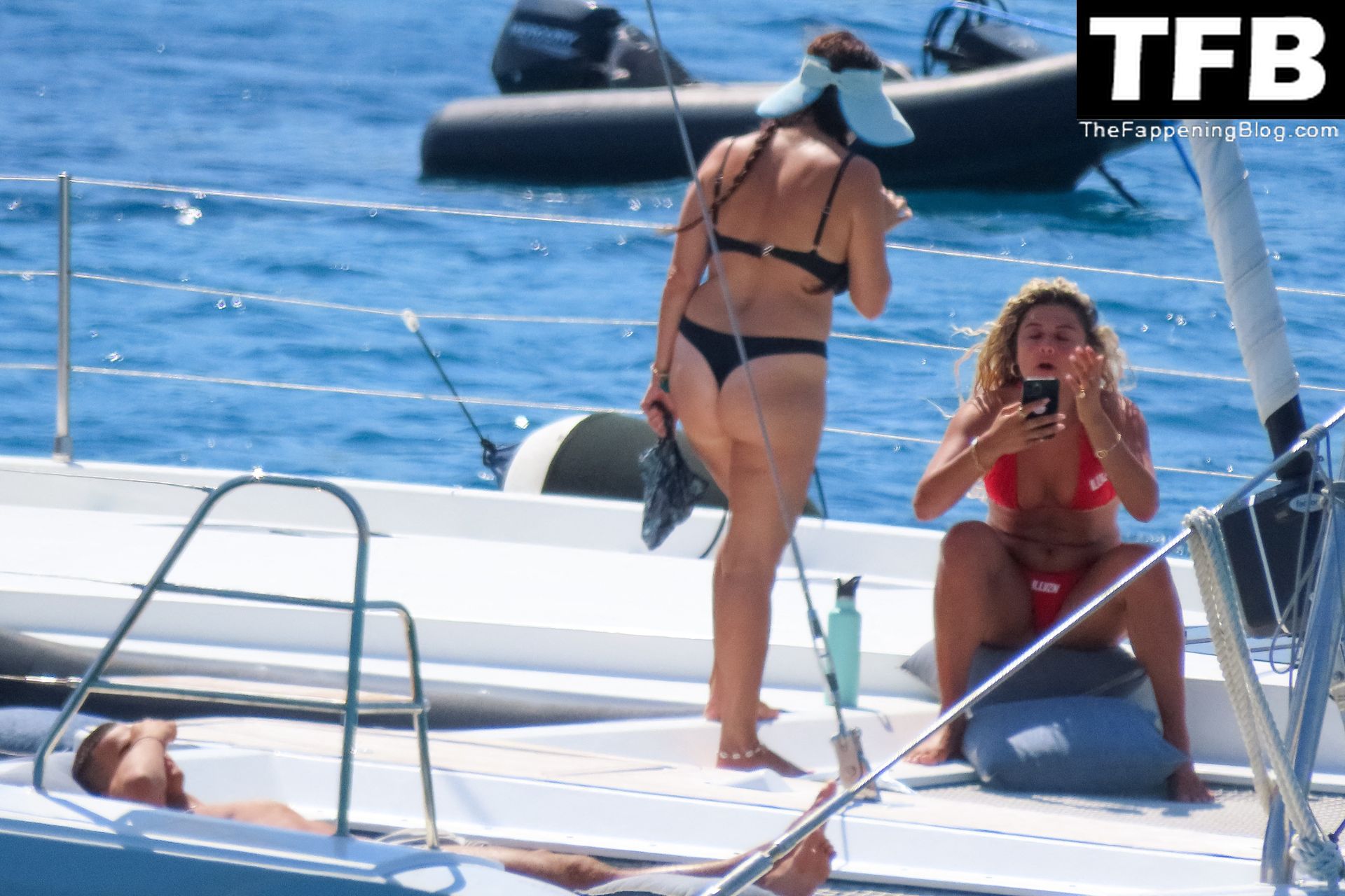 ¡Un día en catamarán en Mykonos! Se ve a Tonia Buxton con un bikini negro en el catamarán con Antigoni Buxton, 21/08/2022.