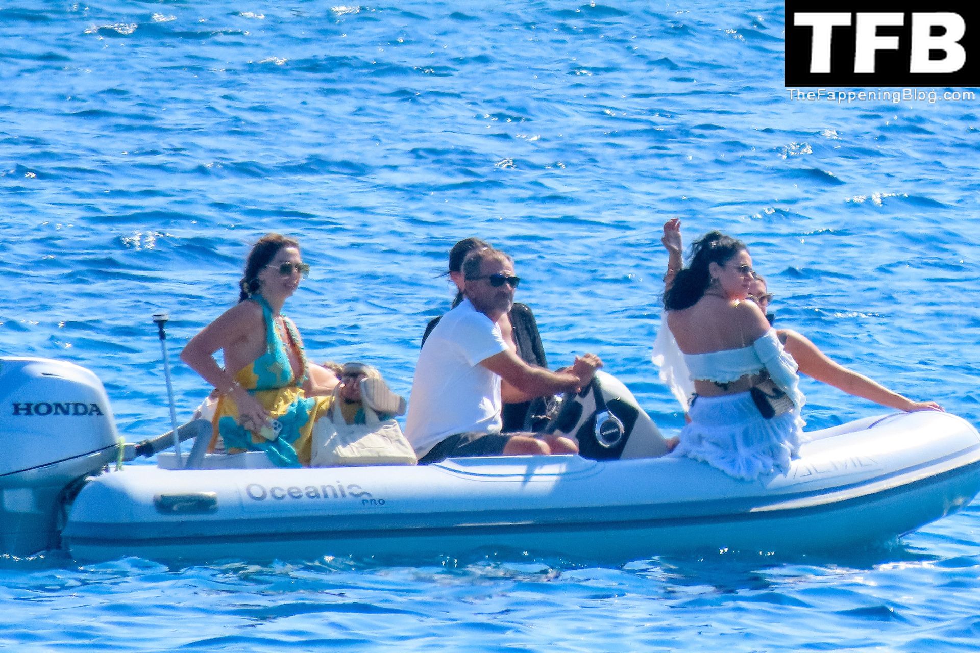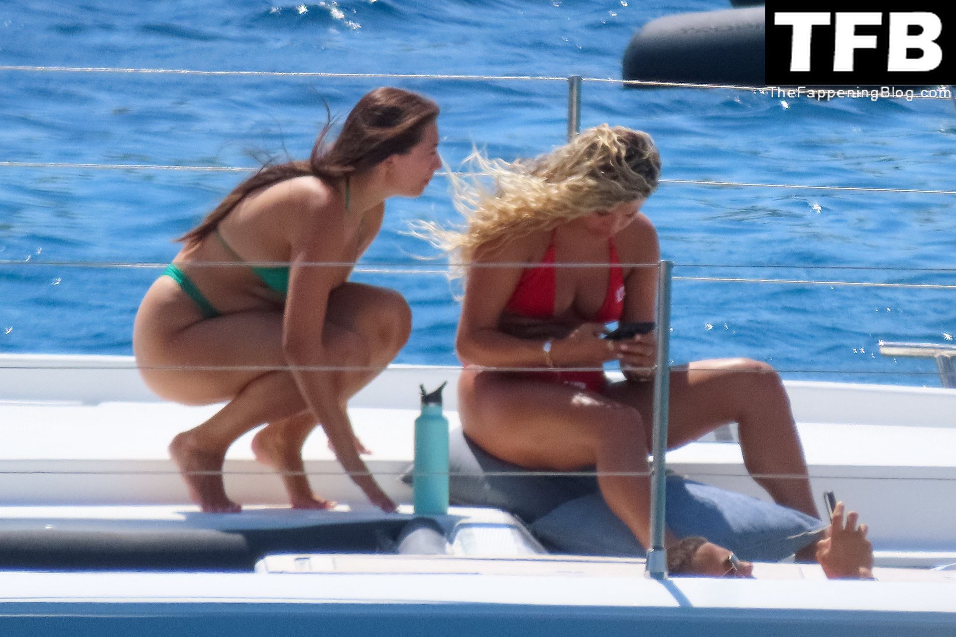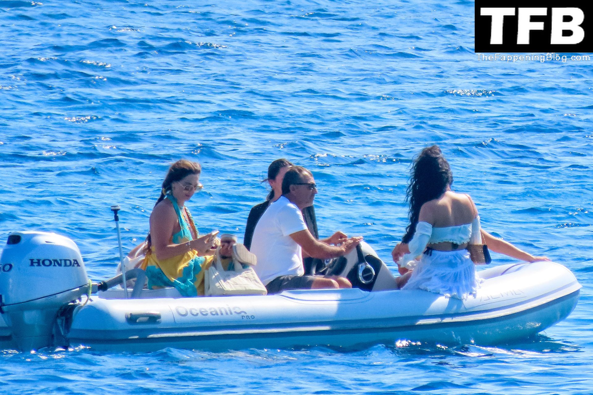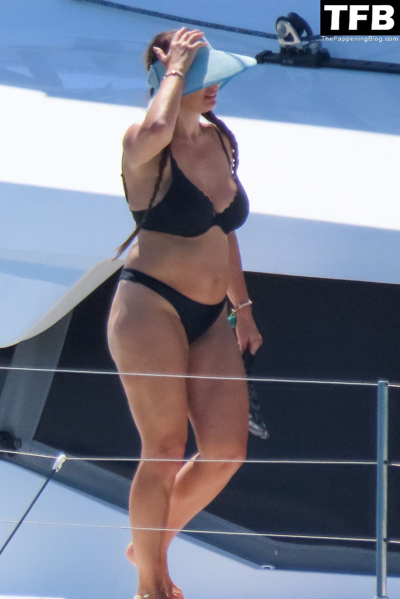 ¡Un día en catamarán en Mykonos! Se ve a Tonia Buxton con un bikini negro en el catamarán con Antigoni Buxton, 21/08/2022.