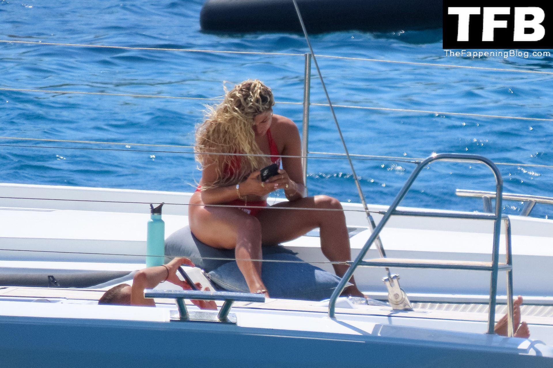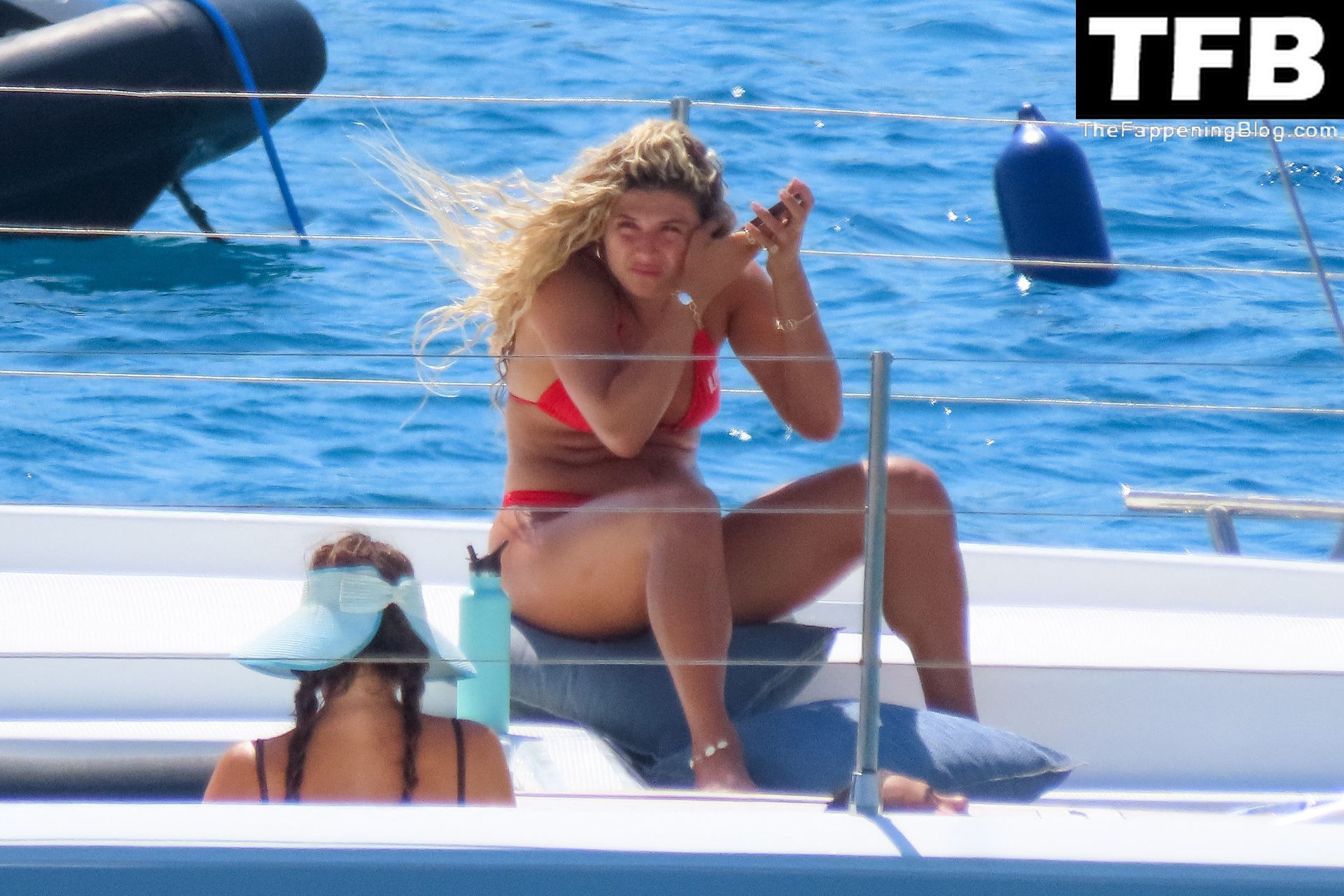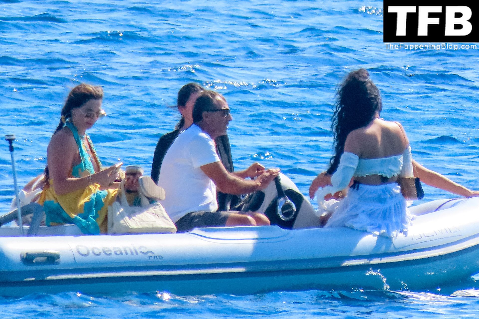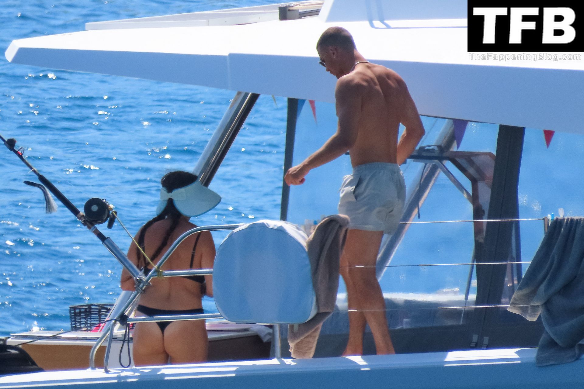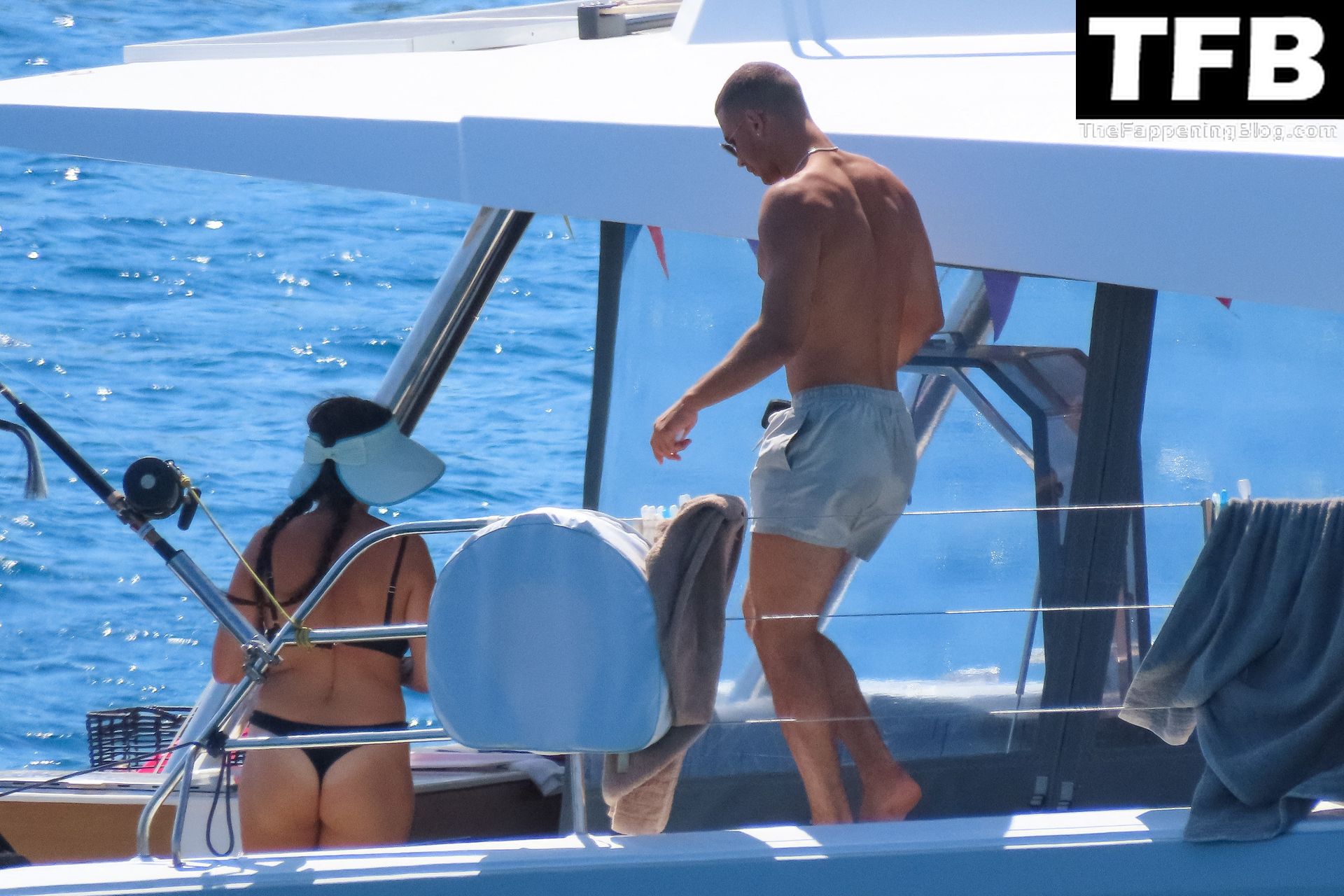 ¡Un día en catamarán en Mykonos! Se ve a Tonia Buxton con un bikini negro en el catamarán con Antigoni Buxton, 21/08/2022.