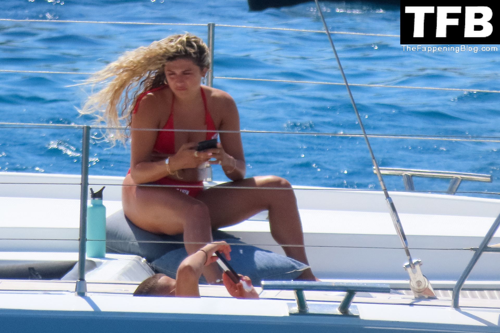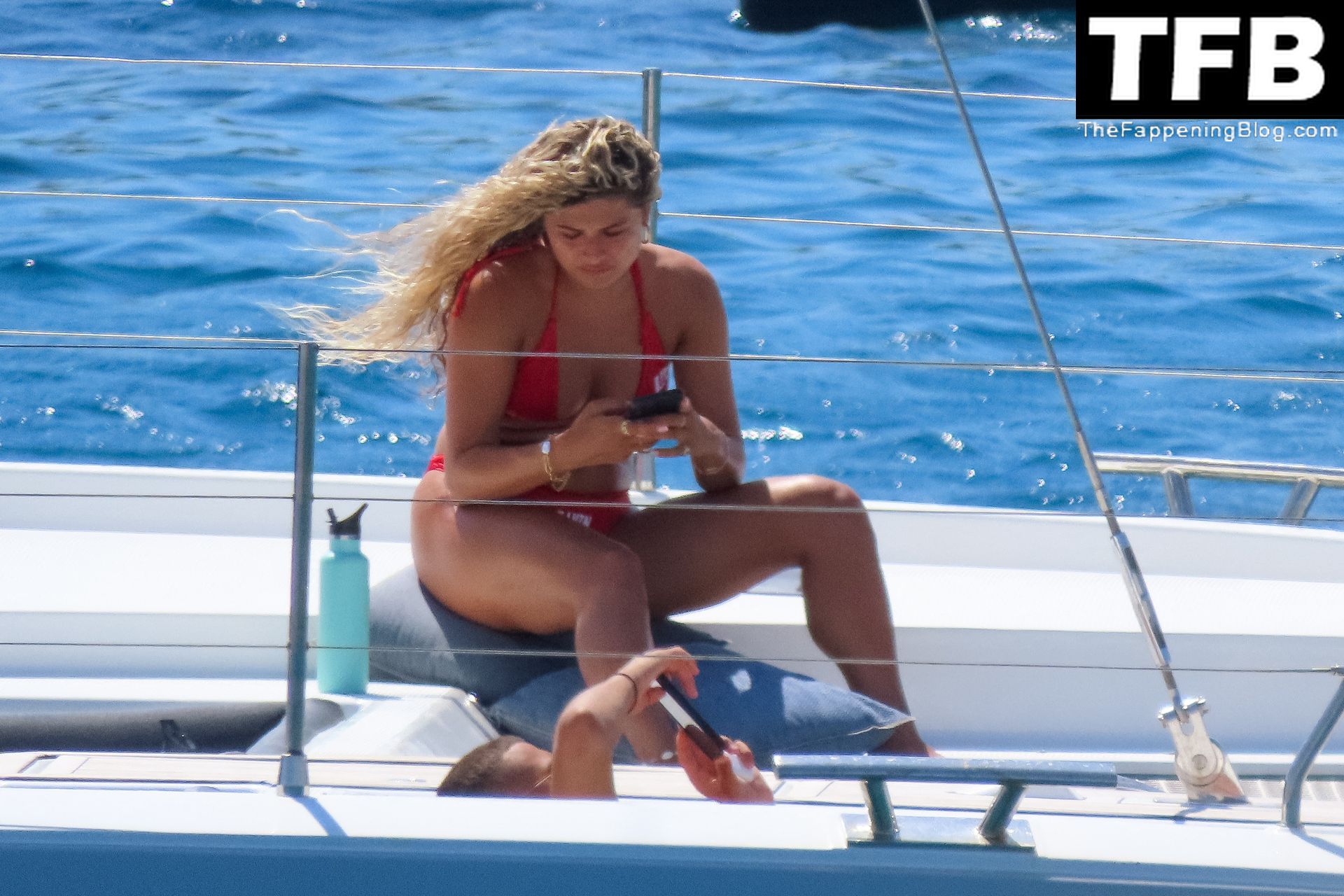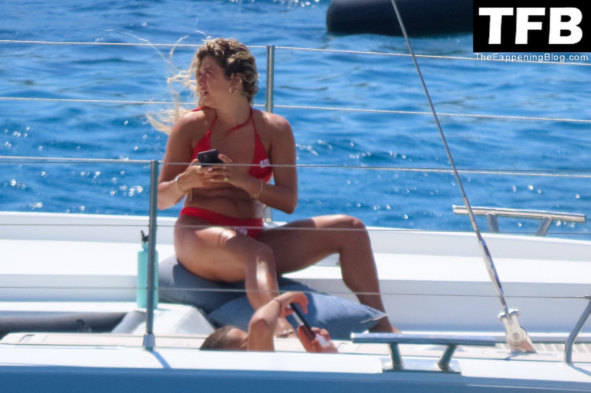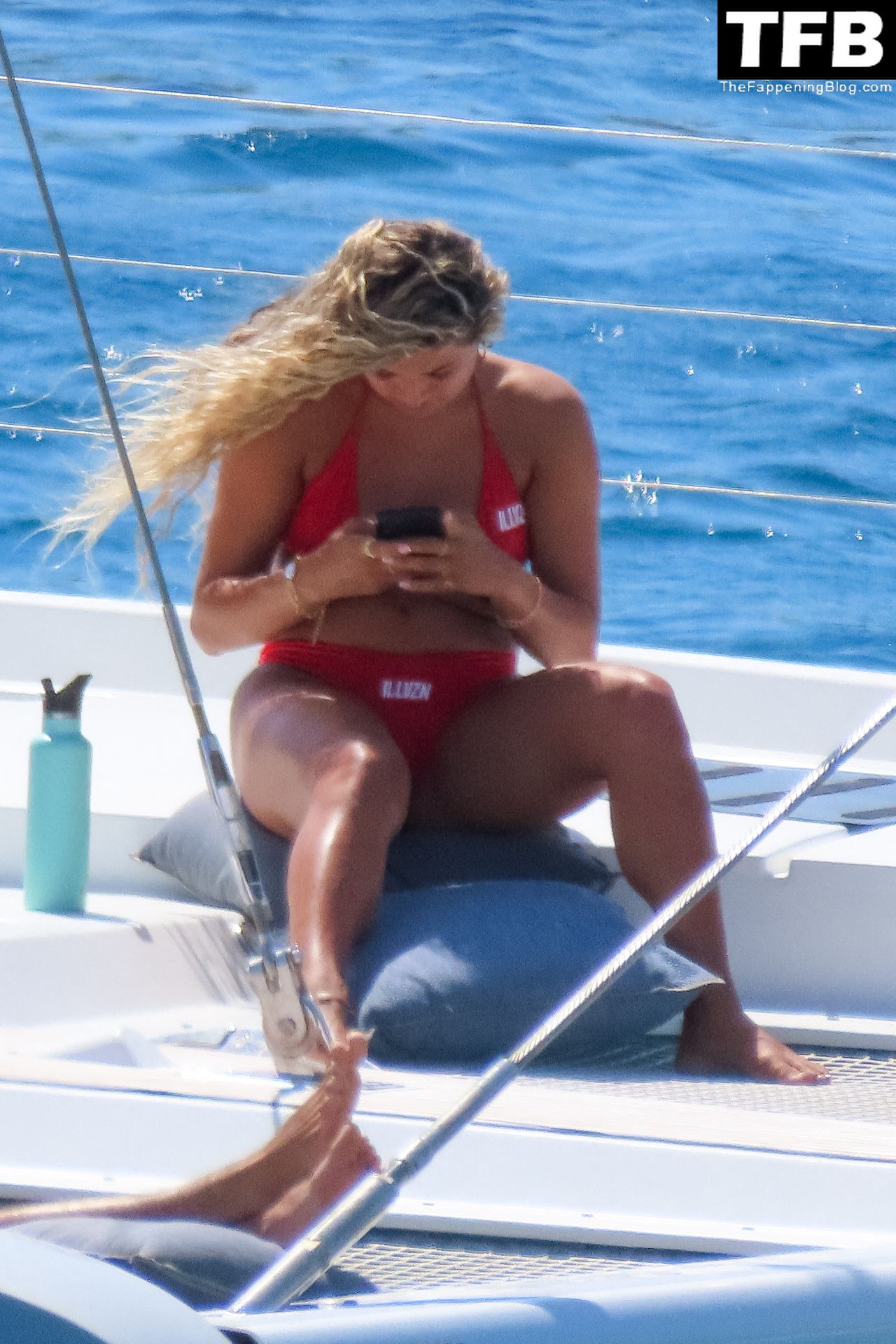 ¡Un día en catamarán en Mykonos! Se ve a Tonia Buxton con un bikini negro en el catamarán con Antigoni Buxton, 21/08/2022.