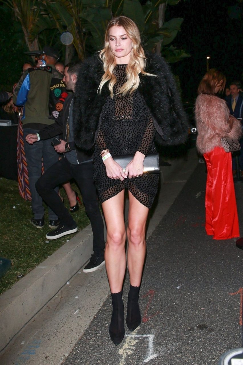 Model Tori Praver (32), conocida por sus apariciones en la edición de trajes de baño de Sports Illustrated de 2007 a 2009, como Embajadora Global de la Marca Billabong en 2009, y por ser la cara más joven de Guess en 2006, luce un vestido negro transparente en una fiesta en una casa de Los Ángeles, 23/02/2019. La modelo complementa su look con un abrigo de piel sintética y joyas.