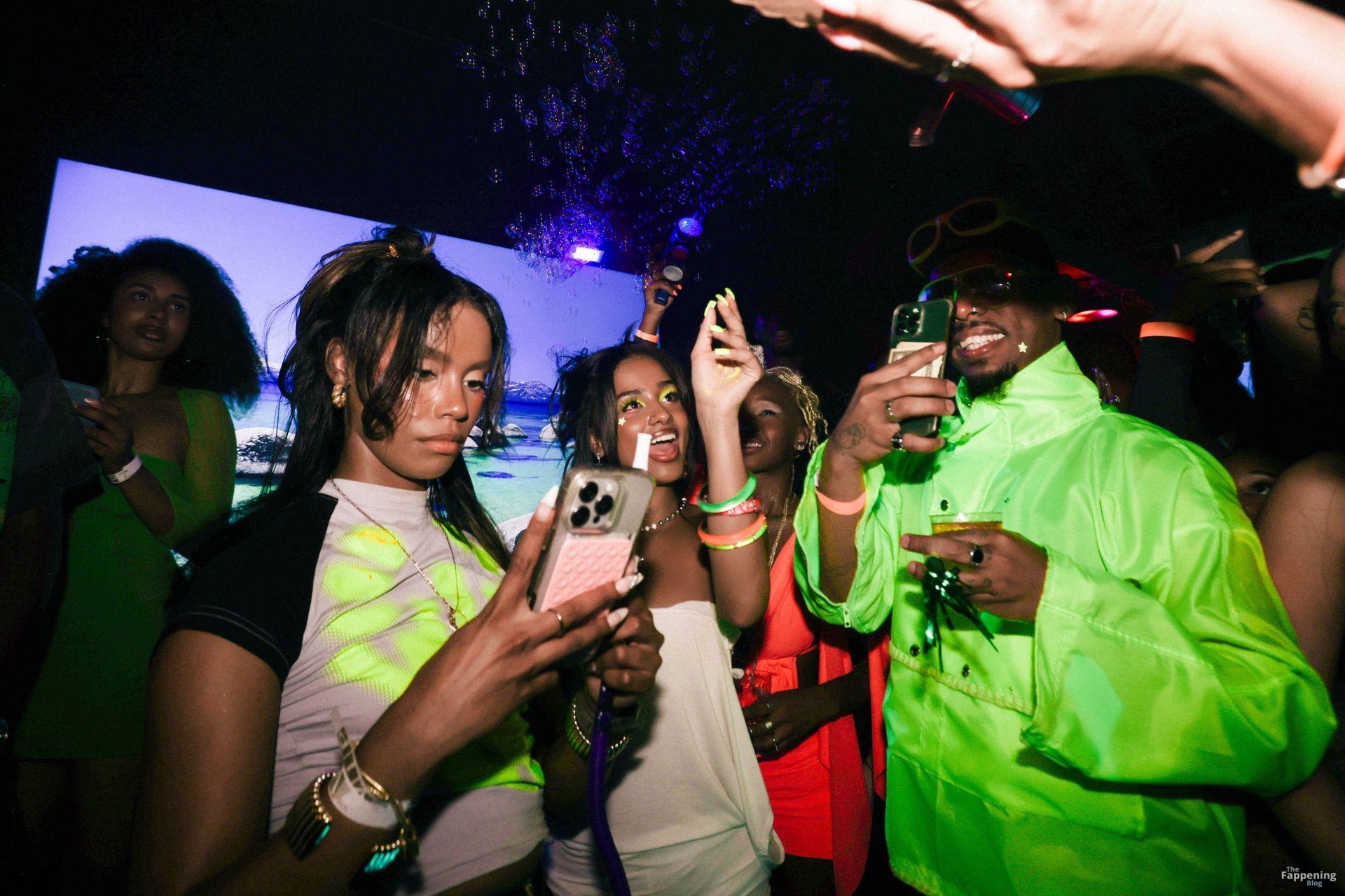 La cantante sudafricana y superestrella Tyla fue vista celebrando su 24º cumpleaños con estilo en Tavares en Hollywood. La cumpleañera deslumbró con un elegante conjunto blanco, con accesorios y maquillaje verde neón, disfrutando la noche con amigos en el animado lugar.
