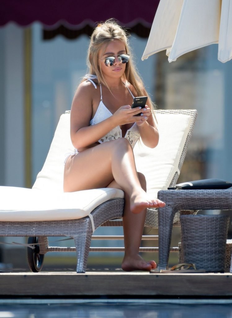 Tyne-Lexy Clarson disfruta de un día en la piscina durante sus vacaciones en Turquía, 28/06/2017. Tyne-Lexy Clarson es una estrella de la televisión de realidad (Love Island 2017). Edad: 20 años.