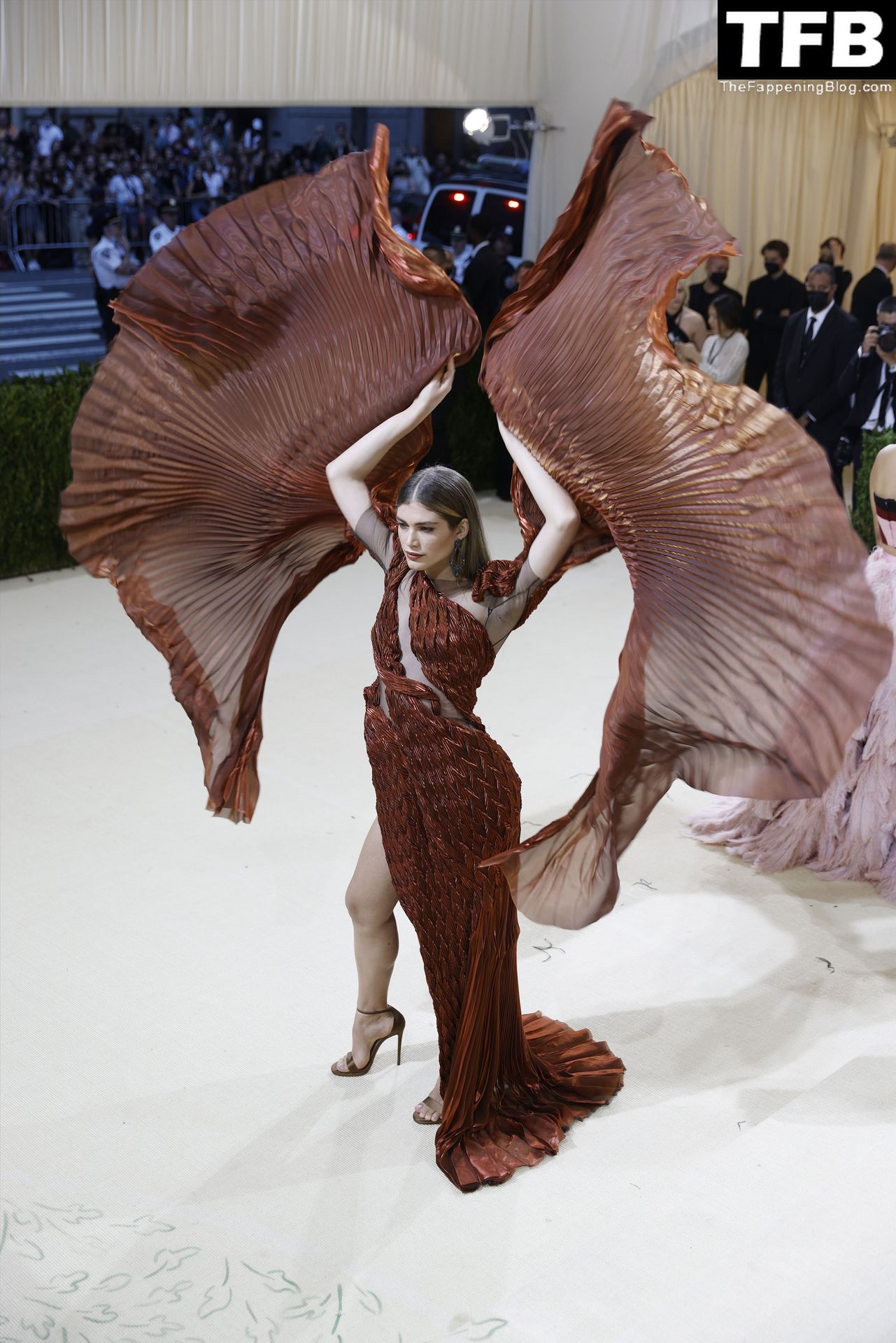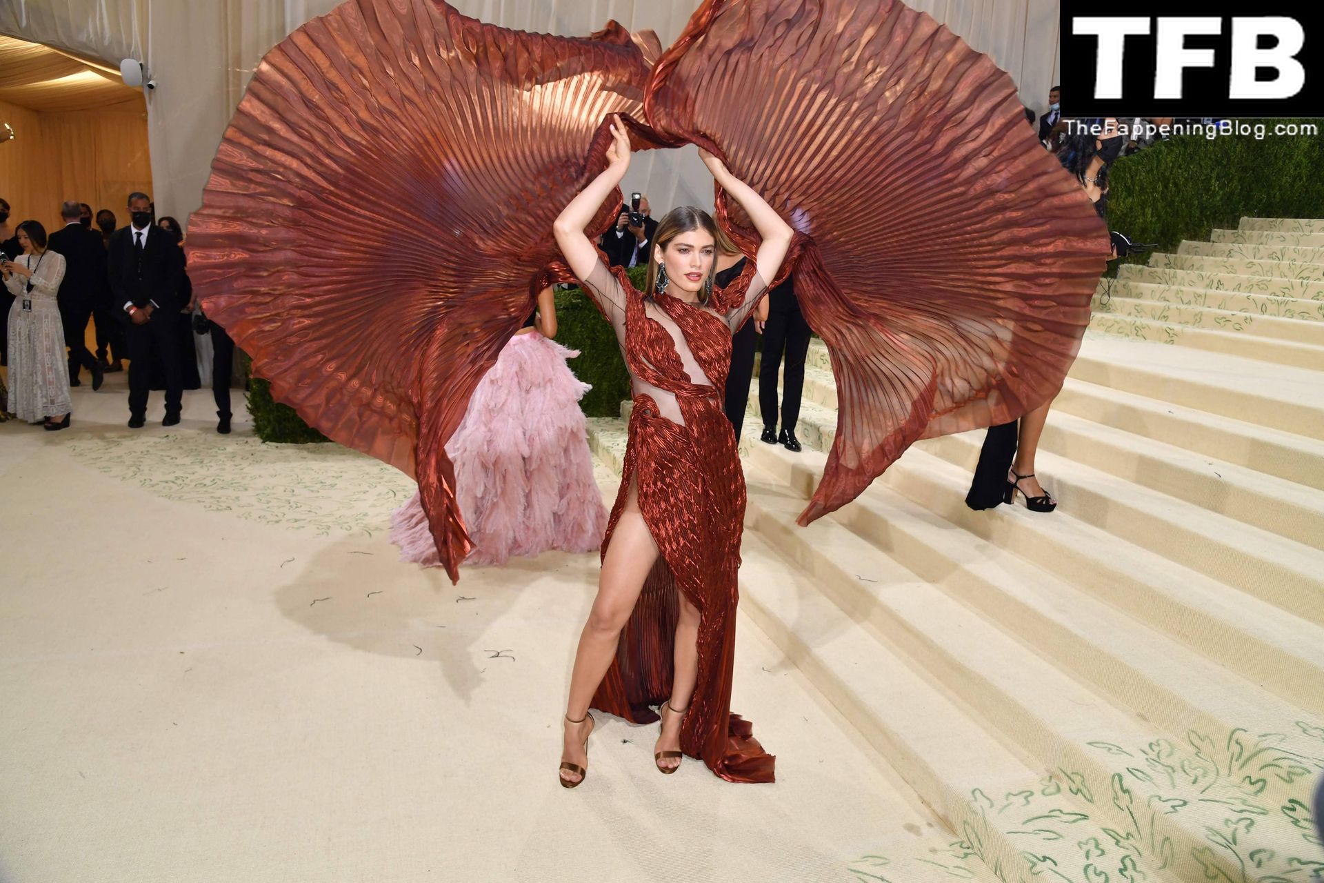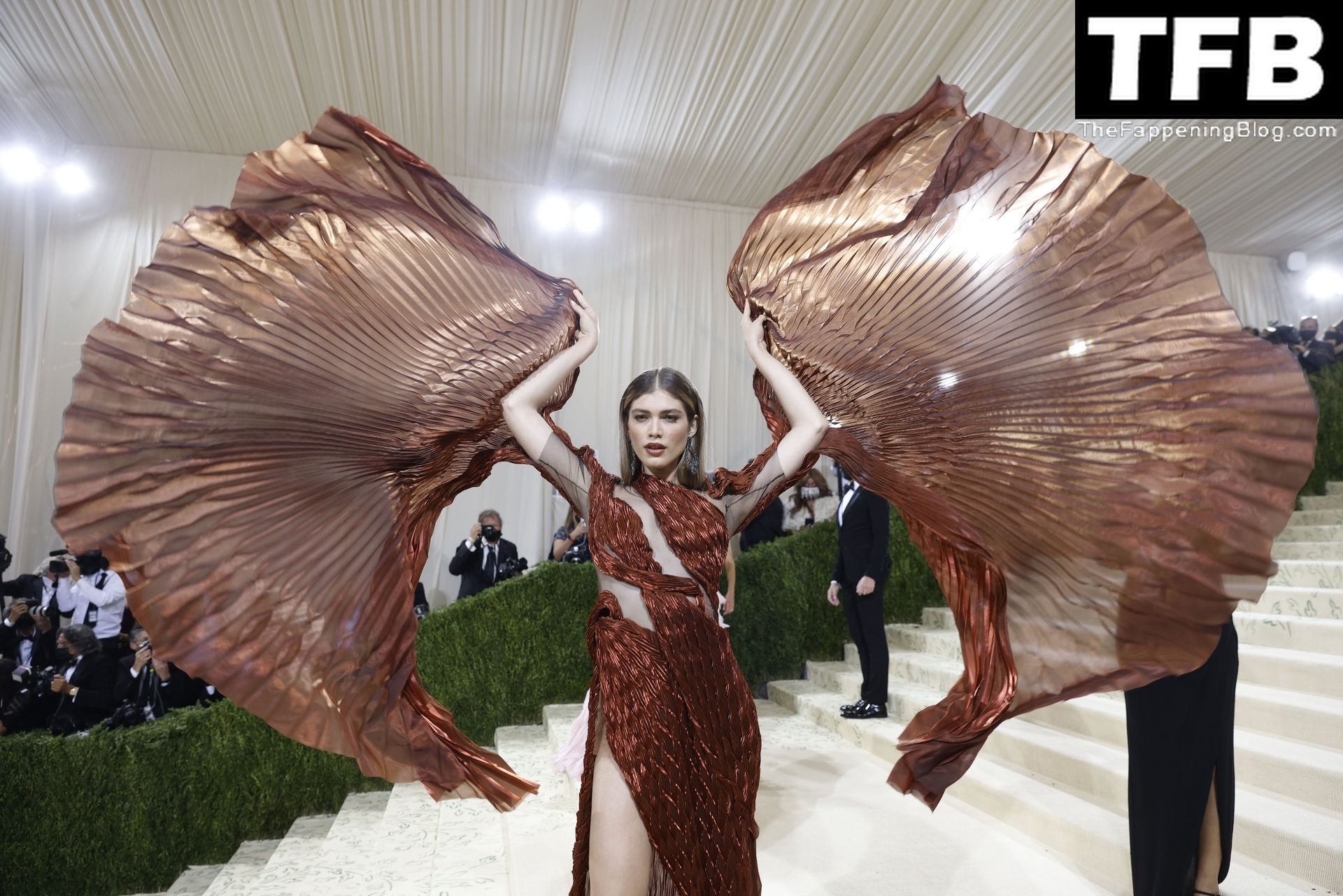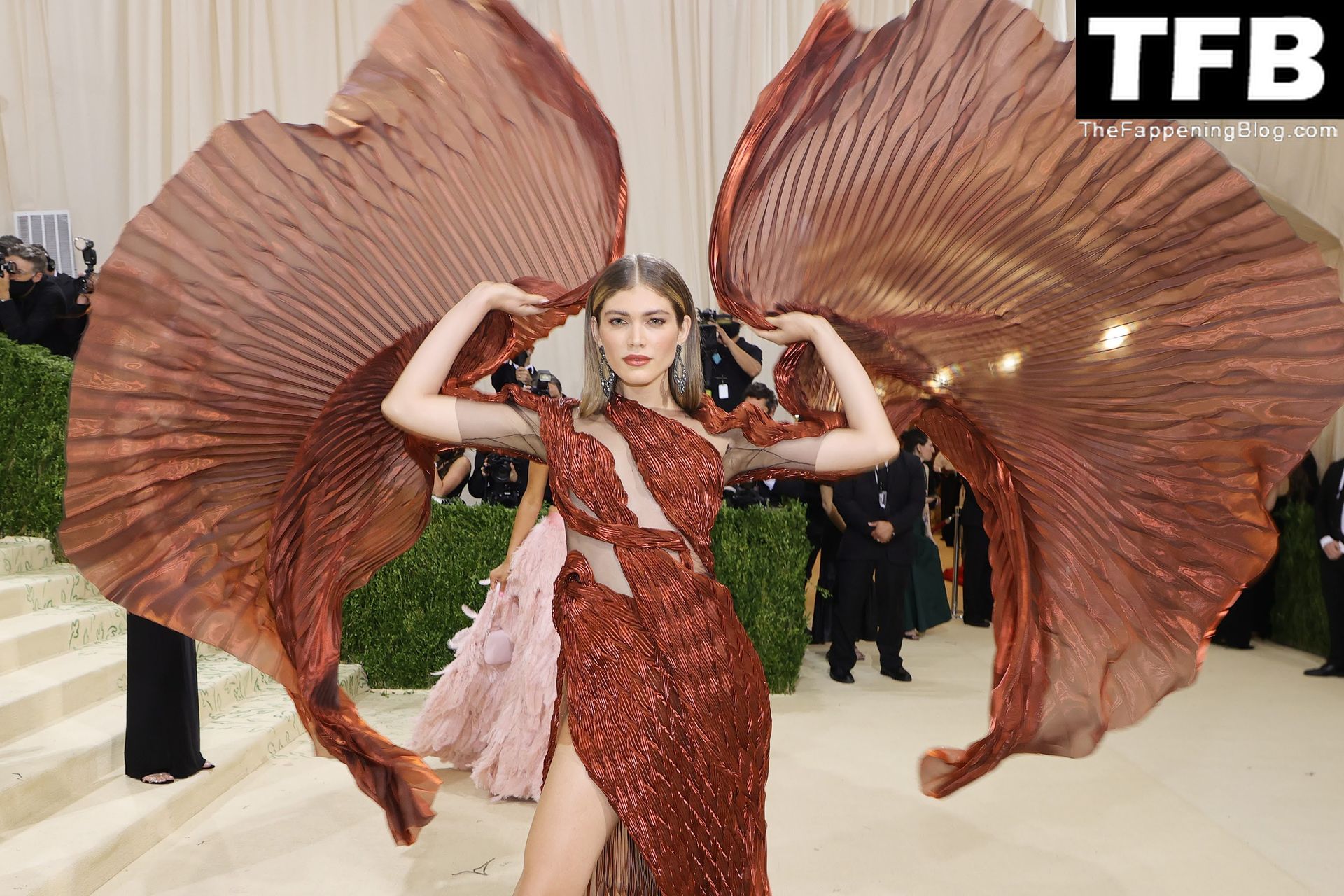 La modelo brasileña TS Valentina Sampaio posa en la alfombra roja de la Met Gala 2021, el evento benéfico anual para el Instituto de Vestuario del Museo Metropolitano de Arte, en Nueva York, Nueva York, 13/09/2021.