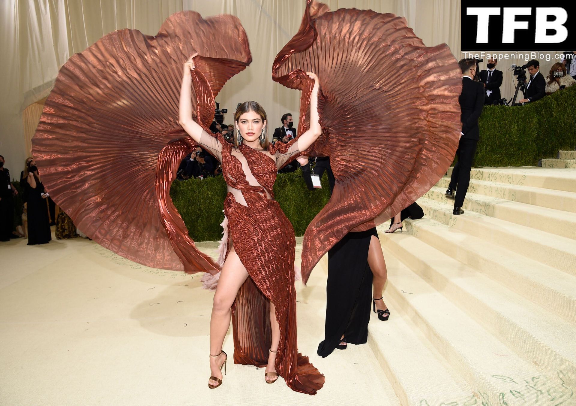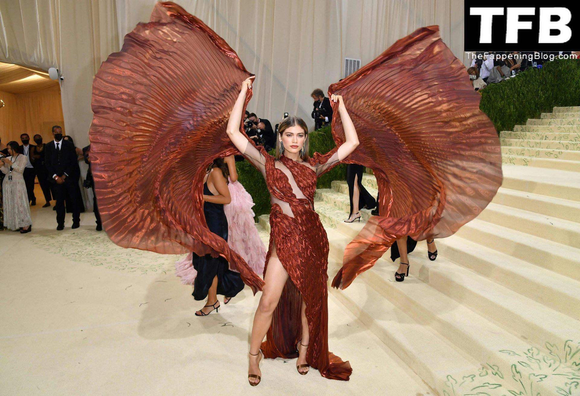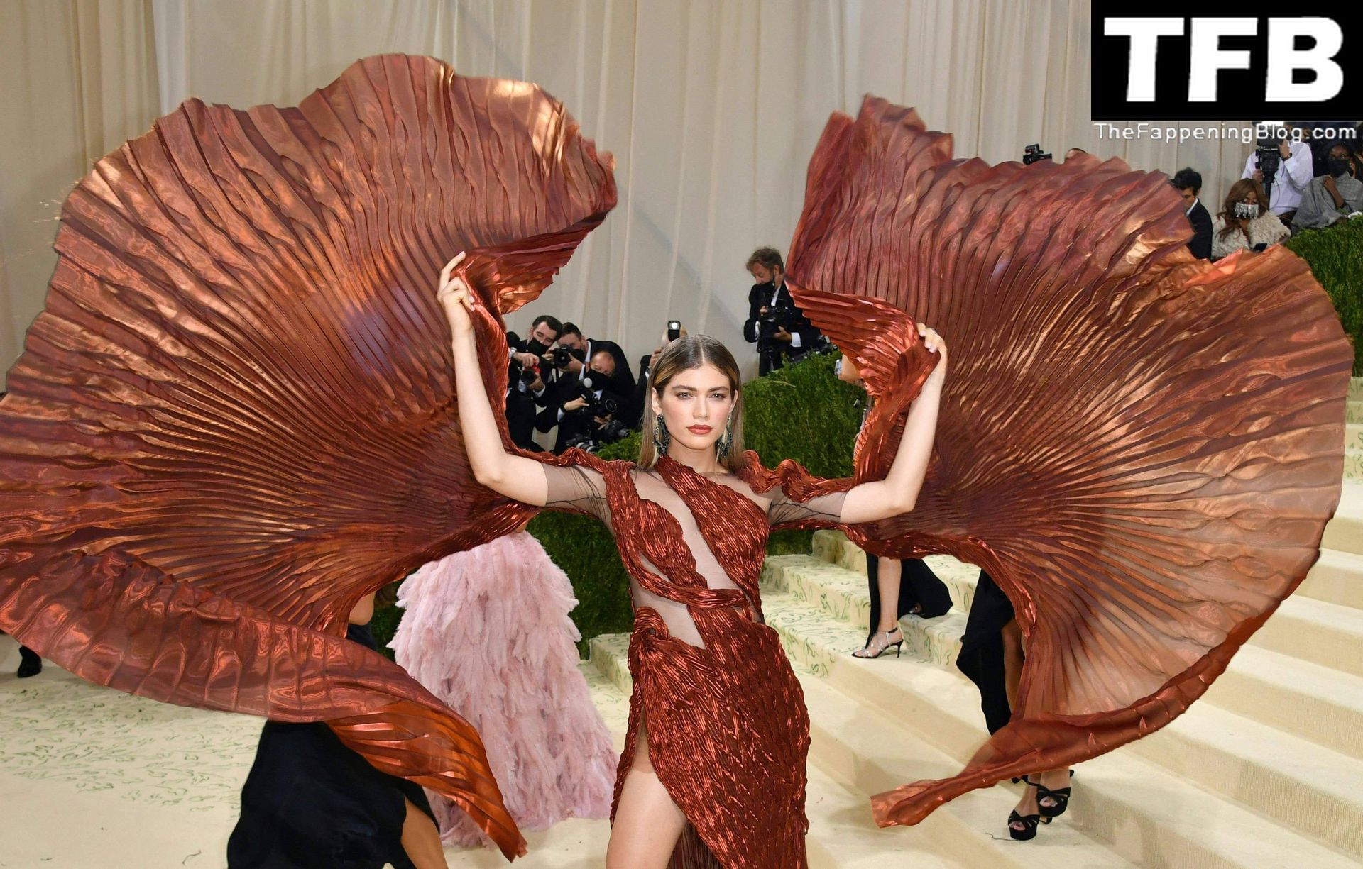 La modelo brasileña TS Valentina Sampaio posa en la alfombra roja de la Met Gala 2021, el evento benéfico anual para el Instituto de Vestuario del Museo Metropolitano de Arte, en Nueva York, Nueva York, 13/09/2021.