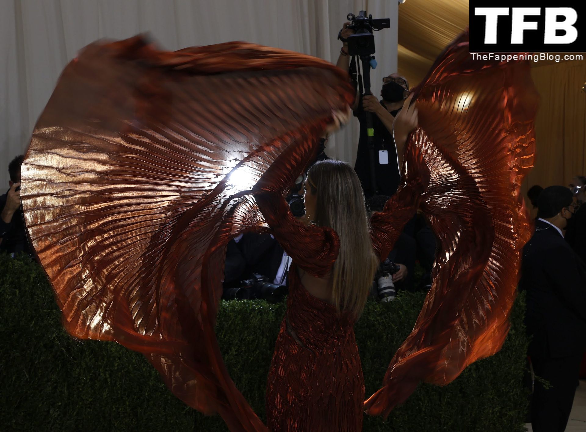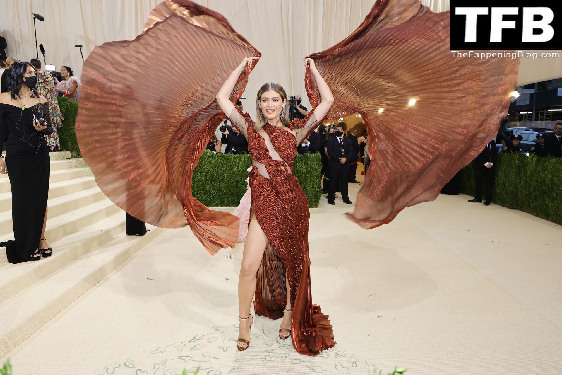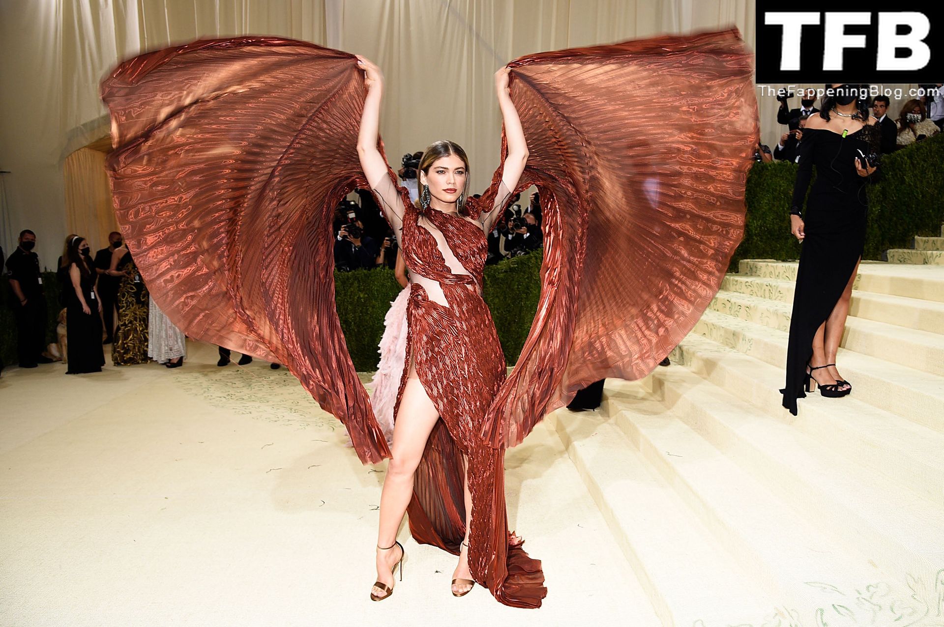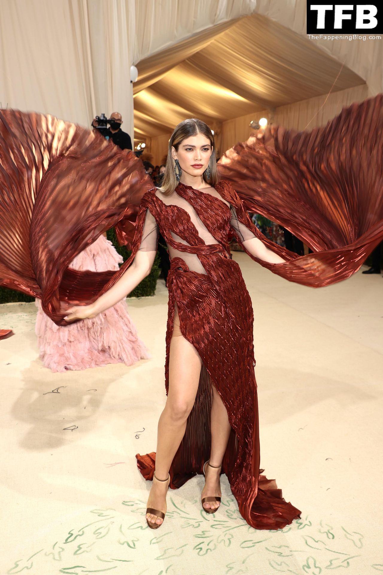 La modelo brasileña TS Valentina Sampaio posa en la alfombra roja de la Met Gala 2021, el evento benéfico anual para el Instituto de Vestuario del Museo Metropolitano de Arte, en Nueva York, Nueva York, 13/09/2021.