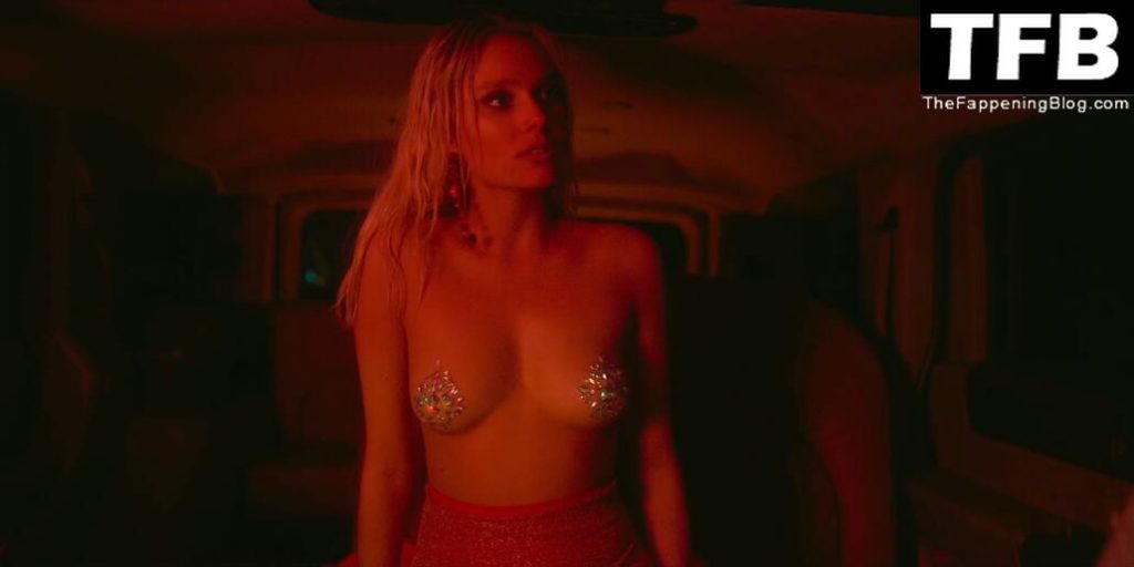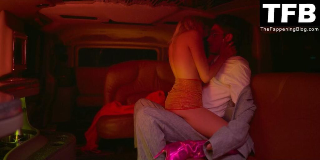 Valentina Zenere se quita la parte superior y se sube al regazo de un chico en la parte trasera de una limusina, Valentina lleva pasties sobre sus pezones mientras se besa con el chico.