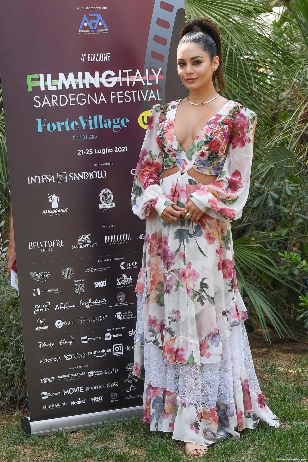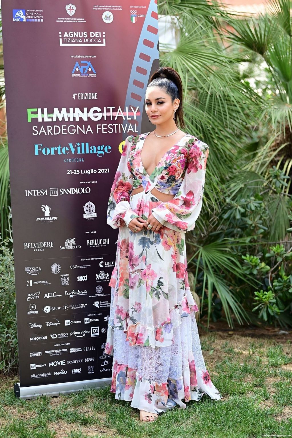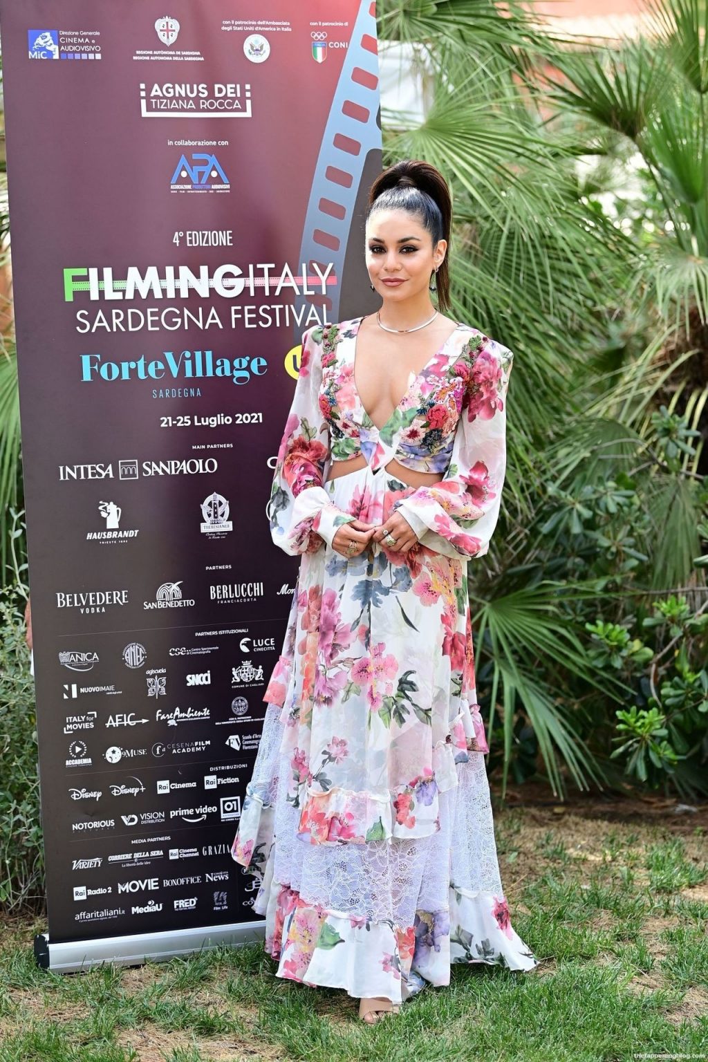La estrella de The Fappening y actriz Vanessa Hudgens posa sin sujetador con un vestido de verano en el Festival Filming Italy Sardegna, 24/07/2021.