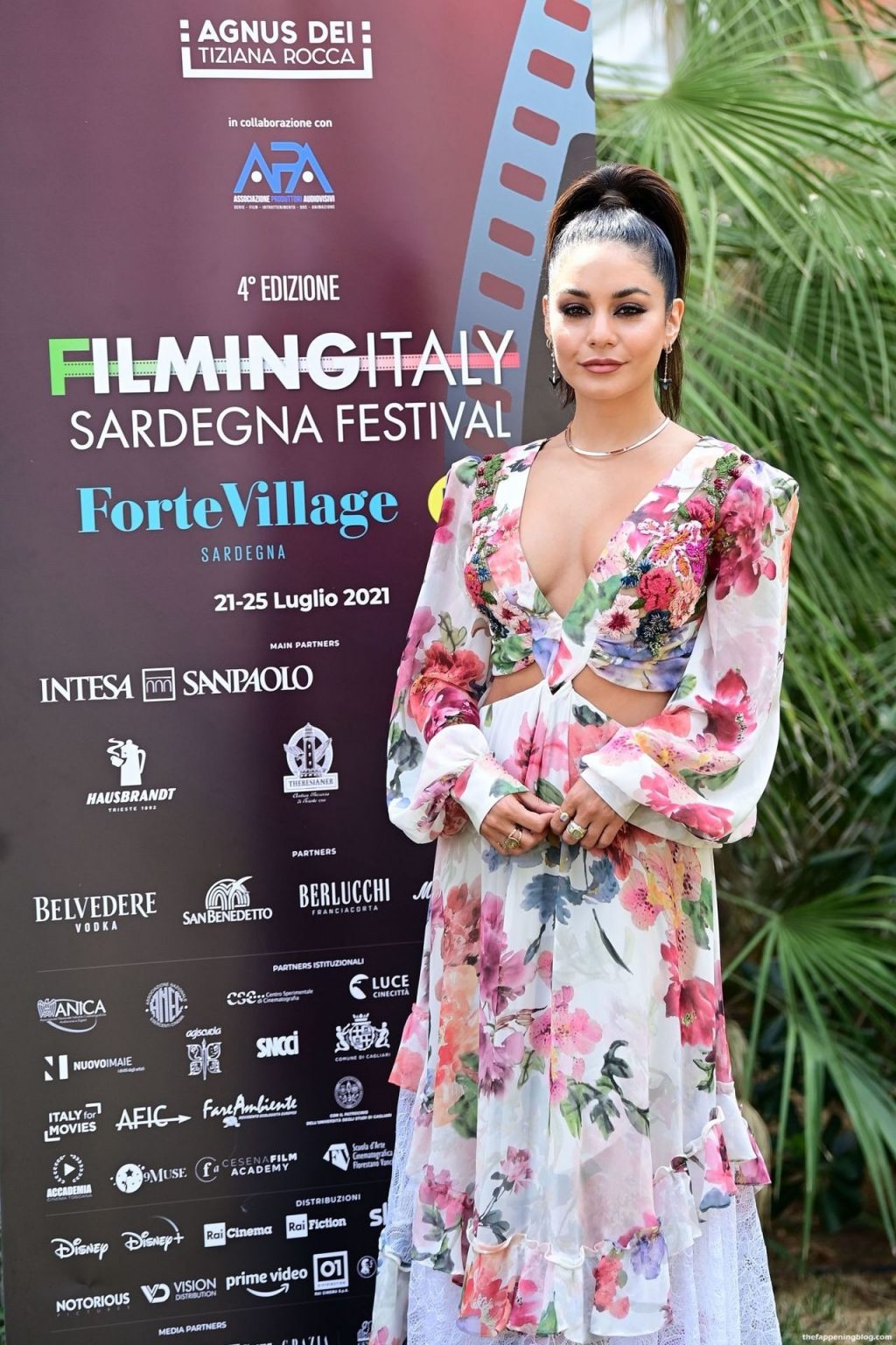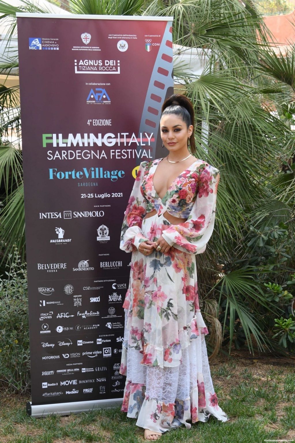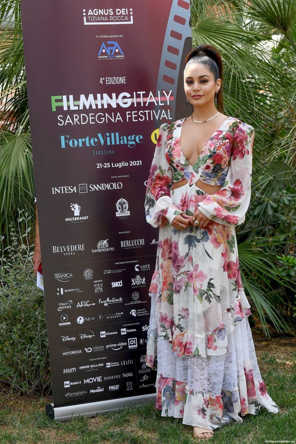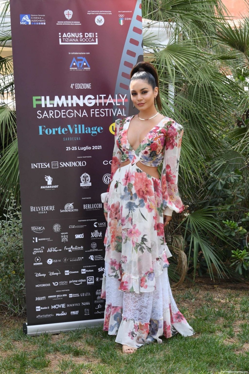 La estrella de The Fappening y actriz Vanessa Hudgens posa sin sujetador con un vestido de verano en el Festival Filming Italy Sardegna, 24/07/2021.