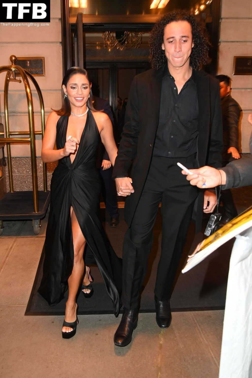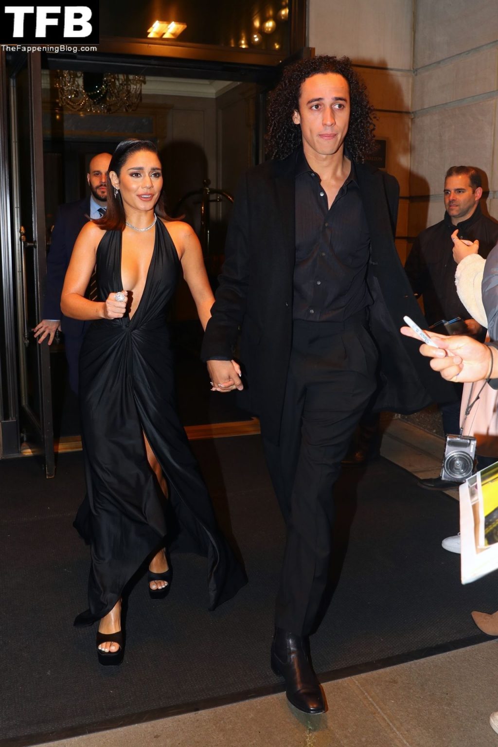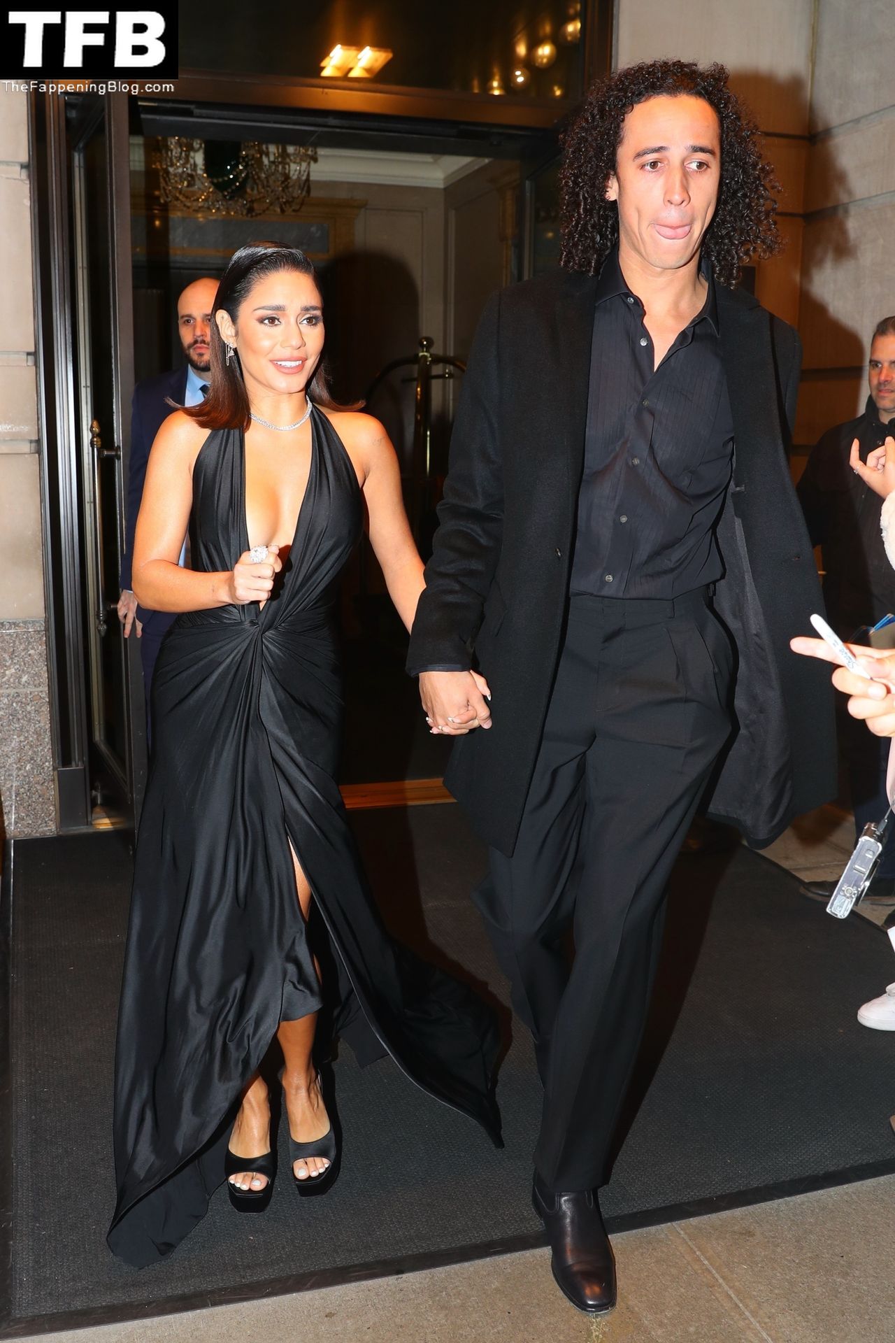 La estrella de “Tick, Tick, Boom” Vanessa Hudgens con su novio Cole Tucker salen de su hotel esta noche para asistir al estreno en la ciudad de Nueva York de la nueva película, 15/11/2021.