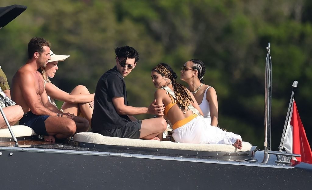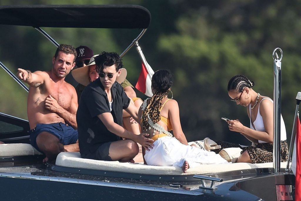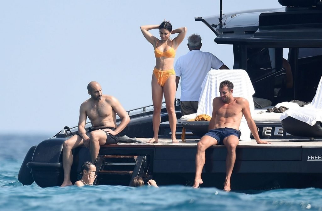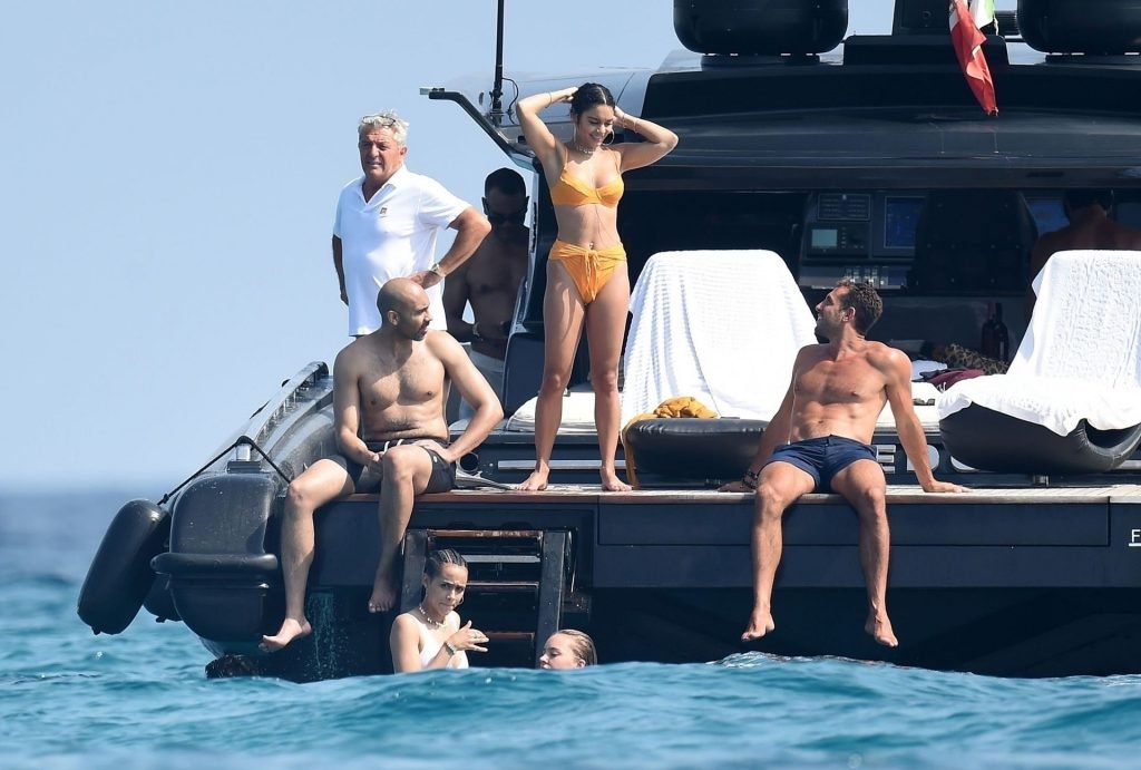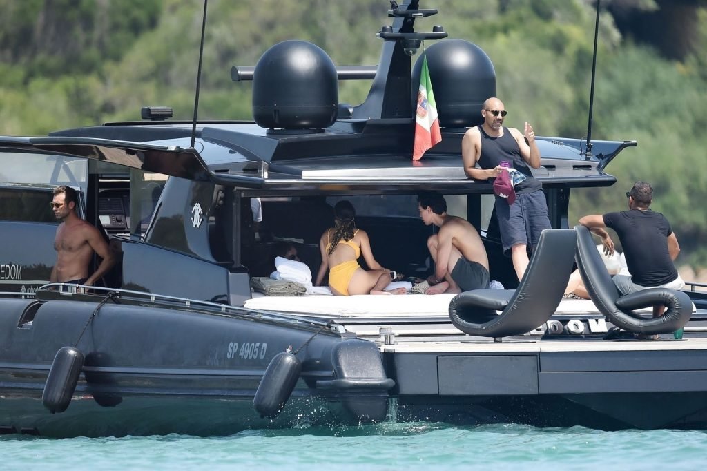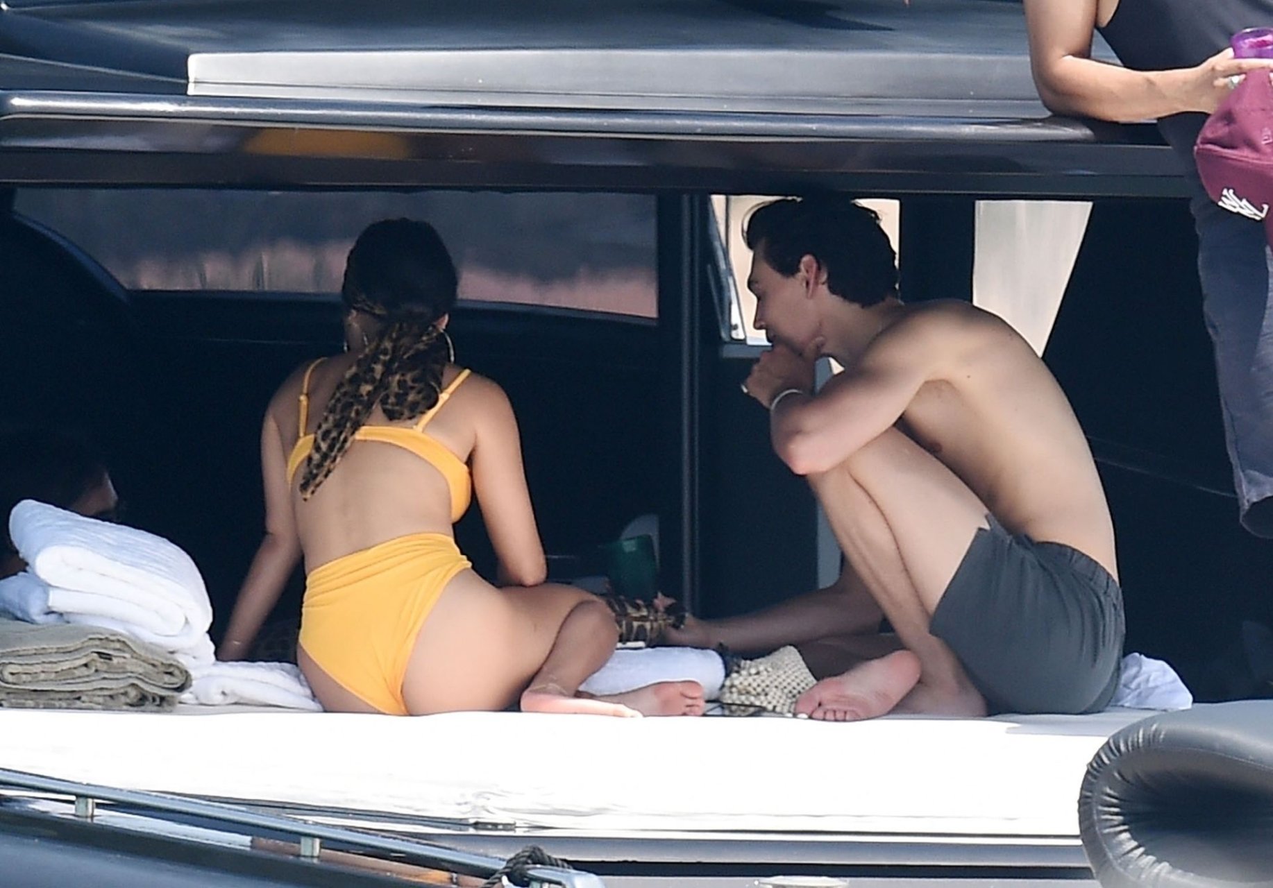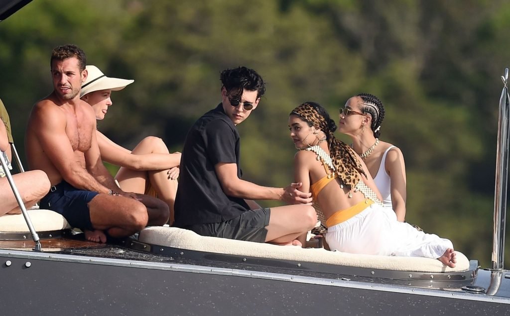 La actriz estadounidense Vanessa Hudgens y su novio Austin Butler fueron vistos en sus vacaciones soleadas en su yate en Porto Cervo, Italia, 12/08/2019.