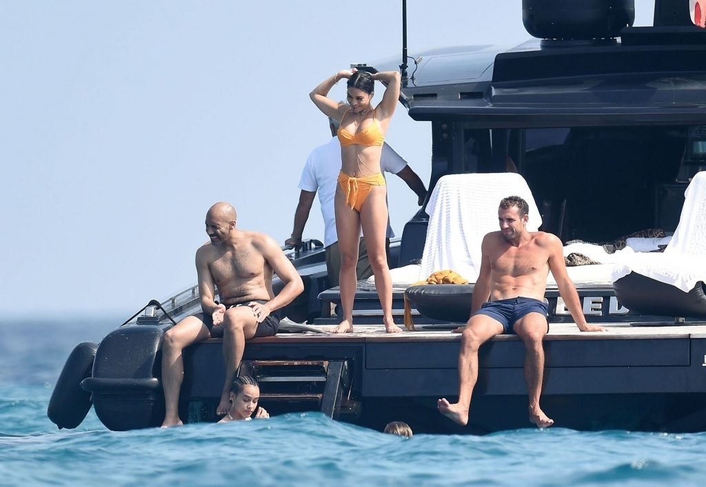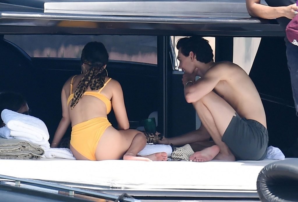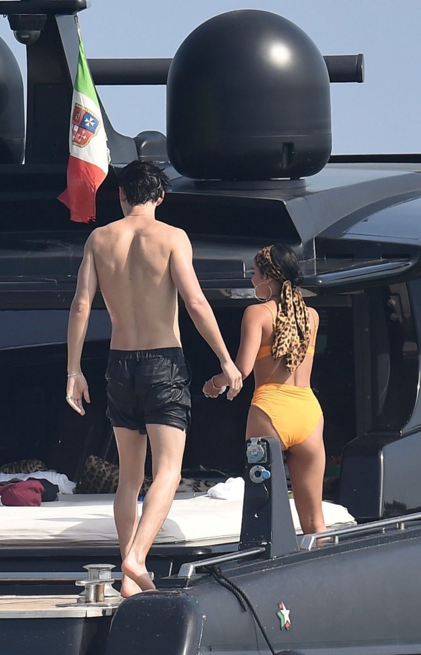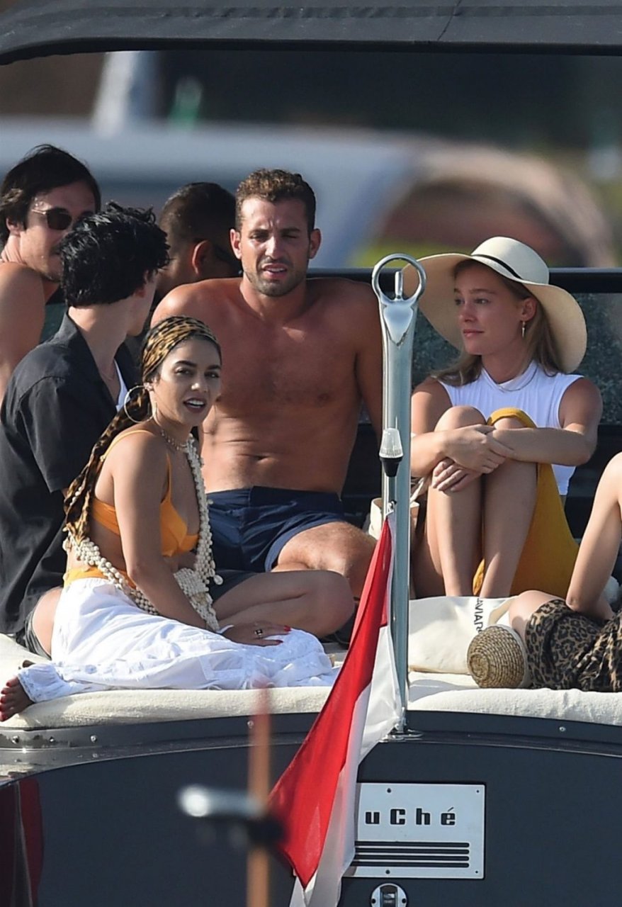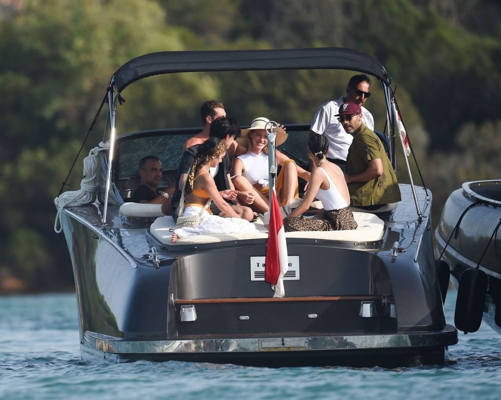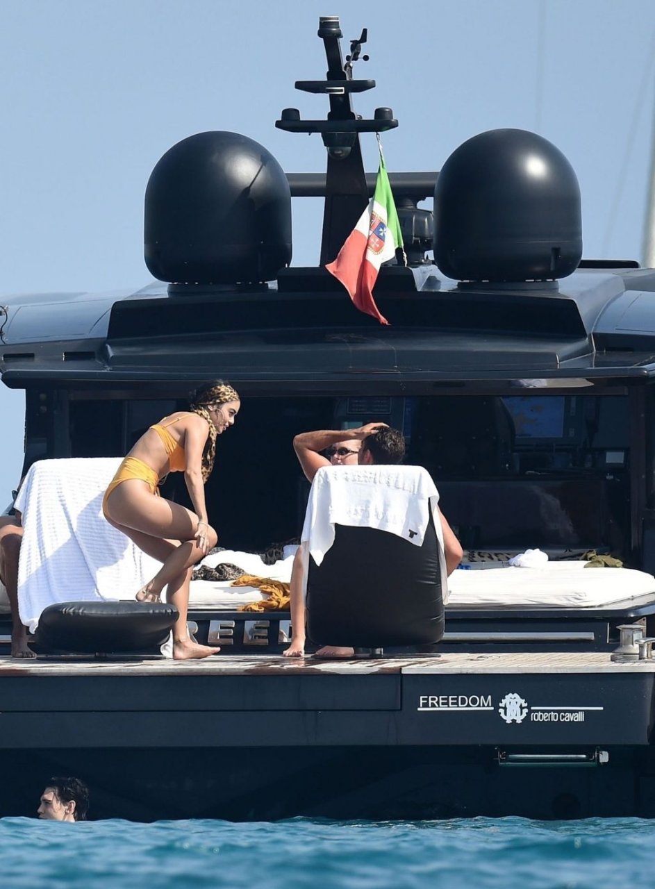 La actriz estadounidense Vanessa Hudgens y su novio Austin Butler fueron vistos en sus vacaciones soleadas en su yate en Porto Cervo, Italia, 12/08/2019.