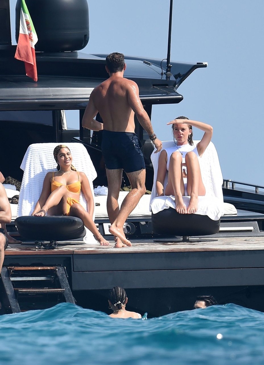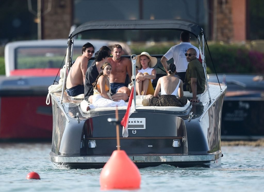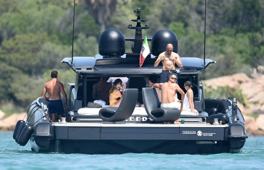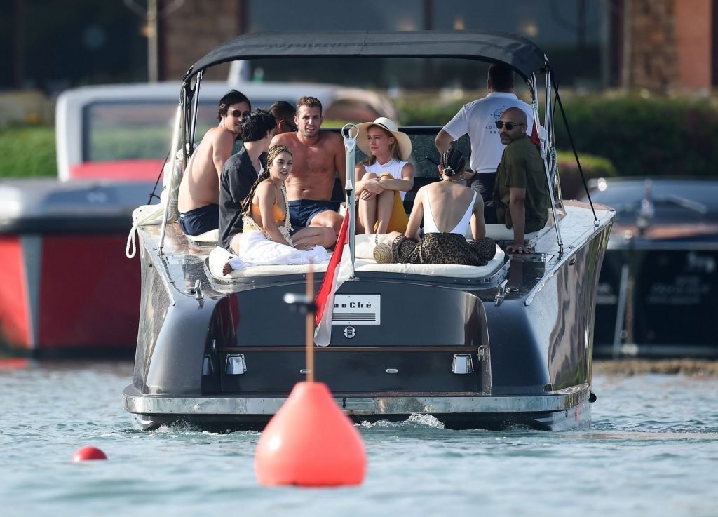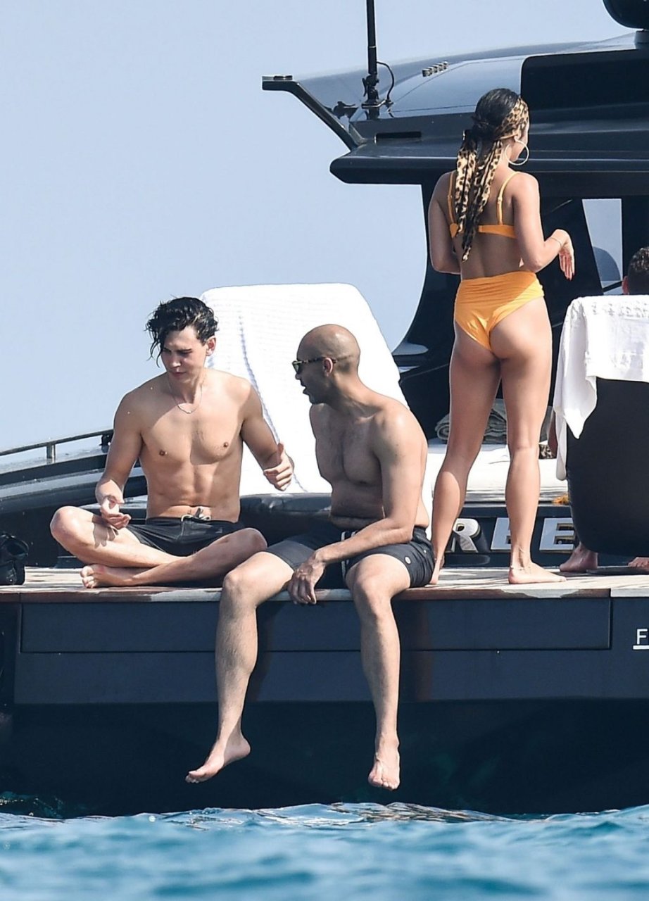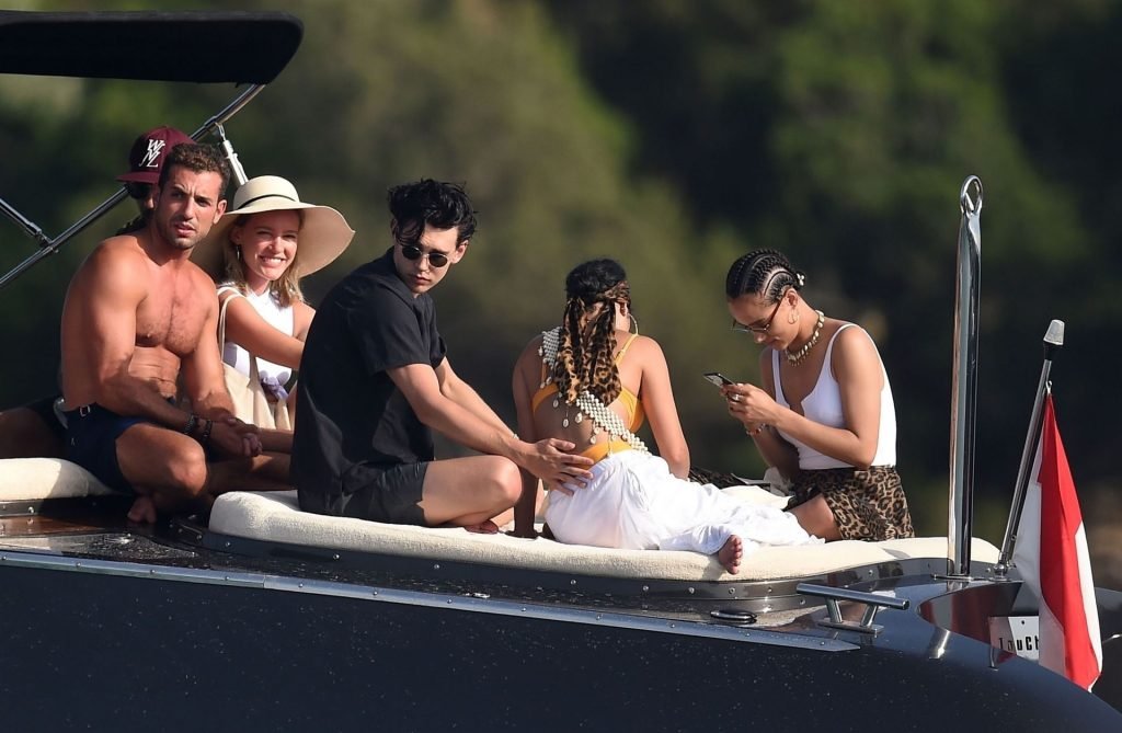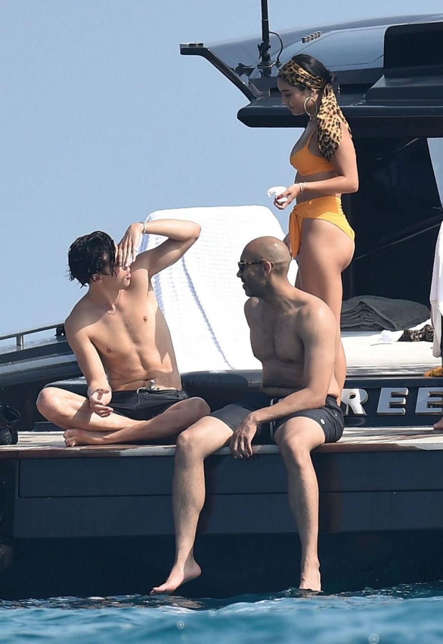 La actriz estadounidense Vanessa Hudgens y su novio Austin Butler fueron vistos en sus vacaciones soleadas en su yate en Porto Cervo, Italia, 12/08/2019.
