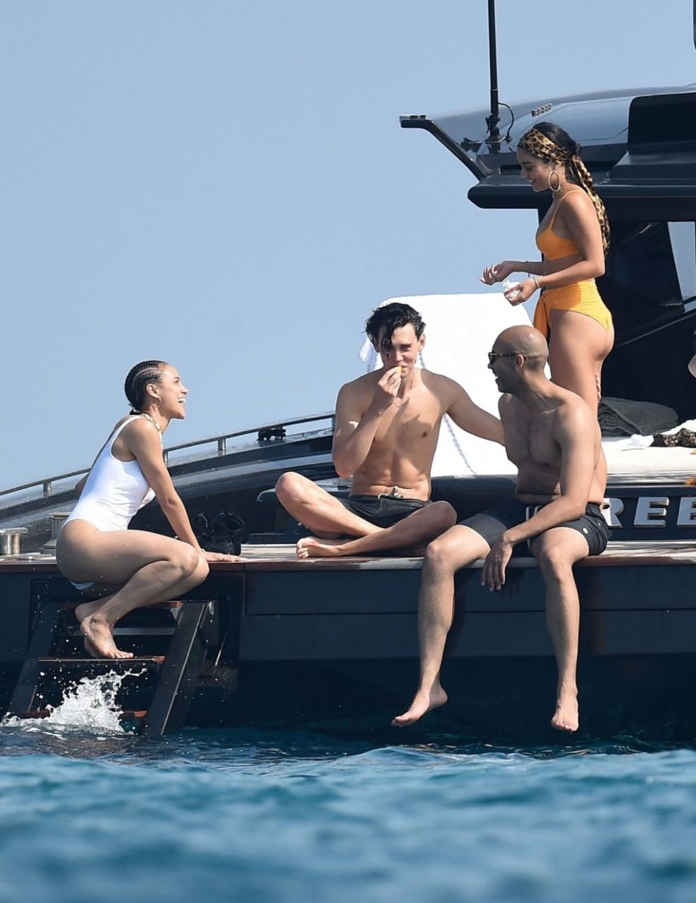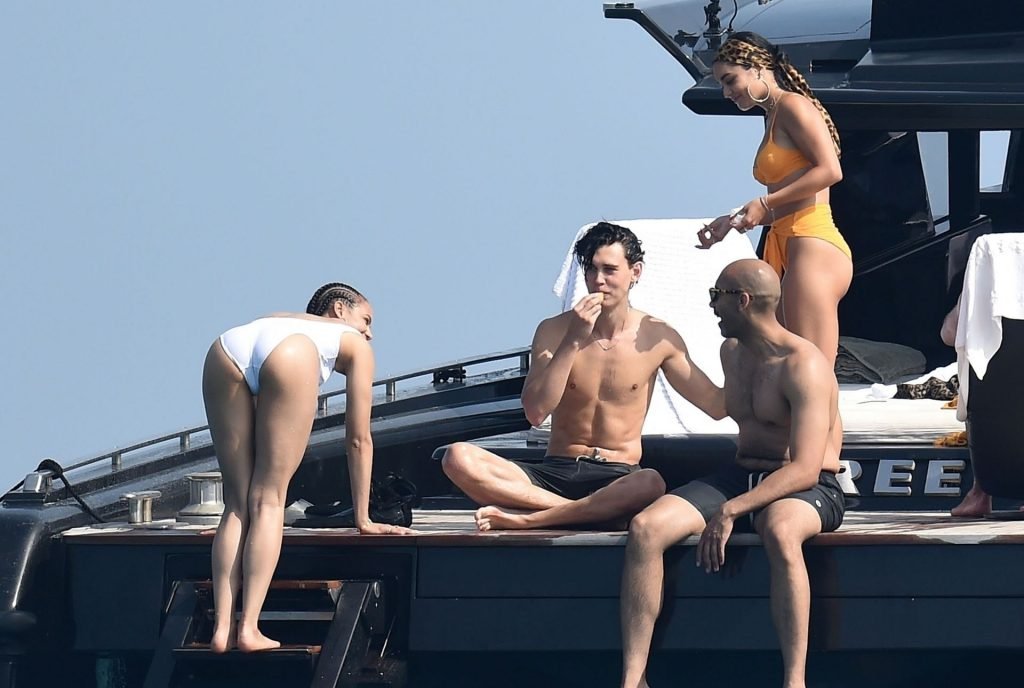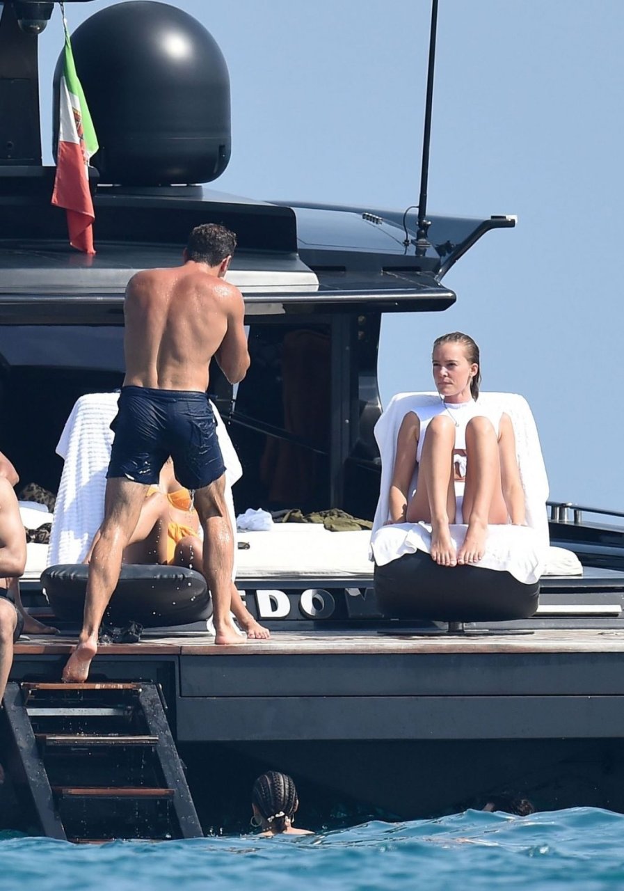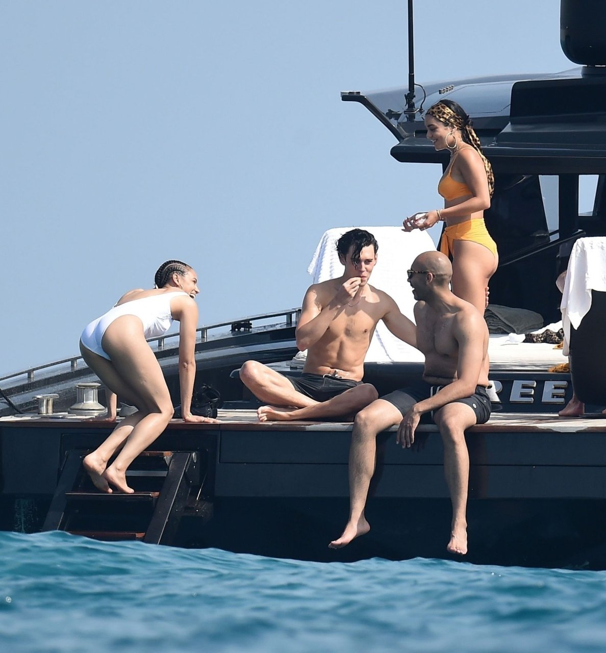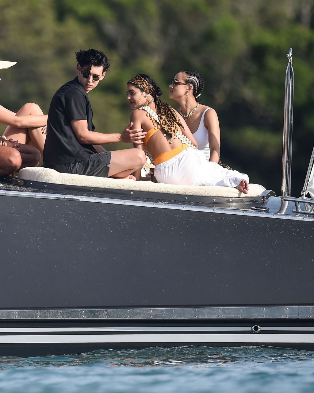 La actriz estadounidense Vanessa Hudgens y su novio Austin Butler fueron vistos en sus vacaciones soleadas en su yate en Porto Cervo, Italia, 12/08/2019.