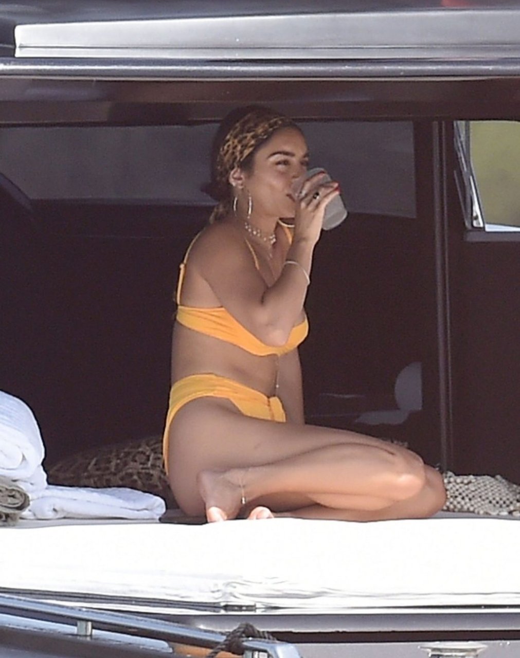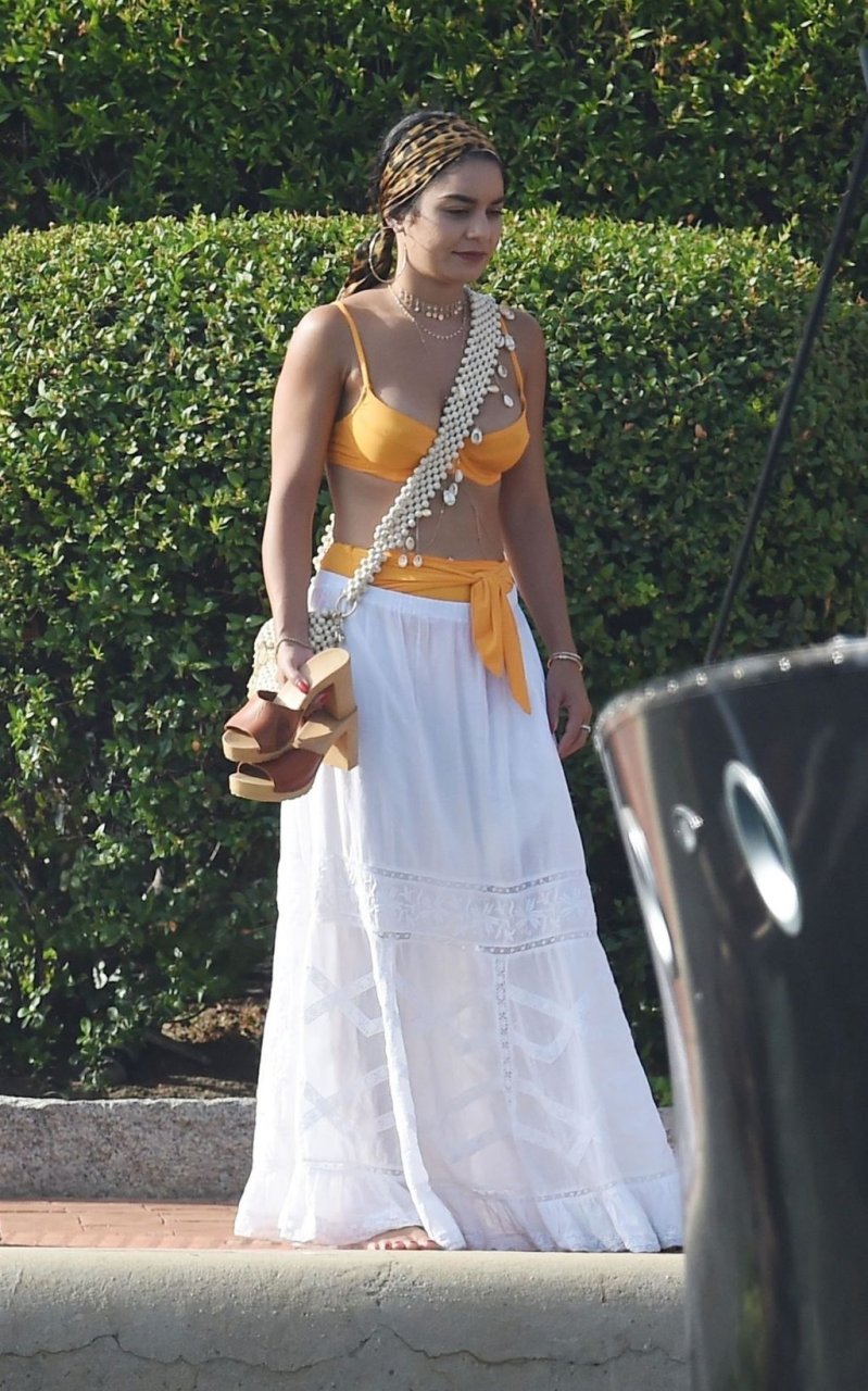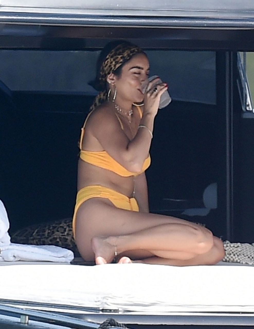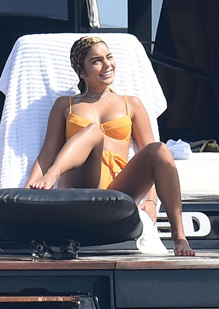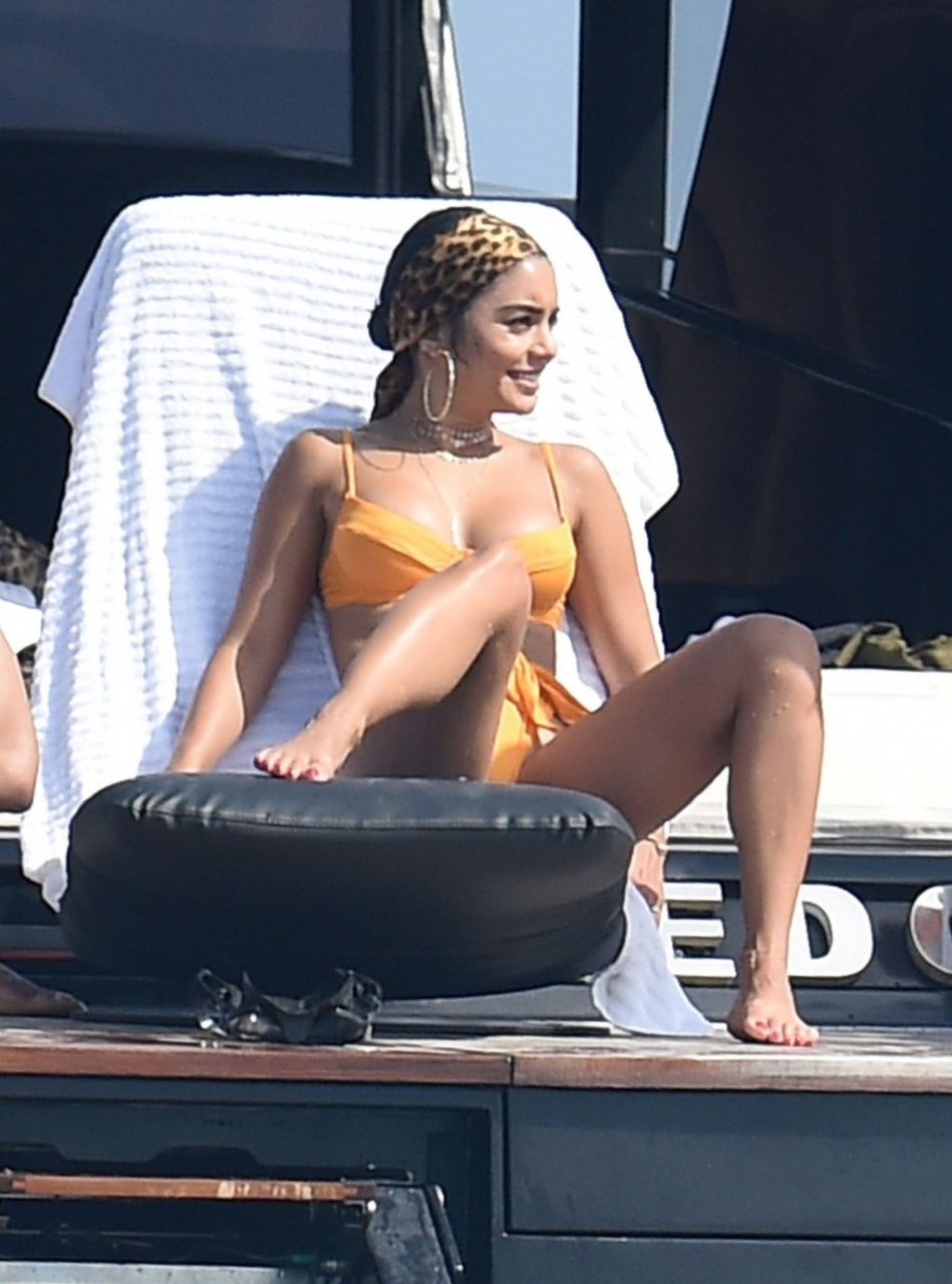 Vanessa llevaba un atractivo bikini naranja que mostraba ese cuerpo sexy y caliente, y se unió en el viaje con la modelo Georgia Gibbs y su nuevo novio Tommy Chiabra, junto con la actriz británica Nathalie Emmanuel, mientras el grupo se divierte un poco bajo el sol.
