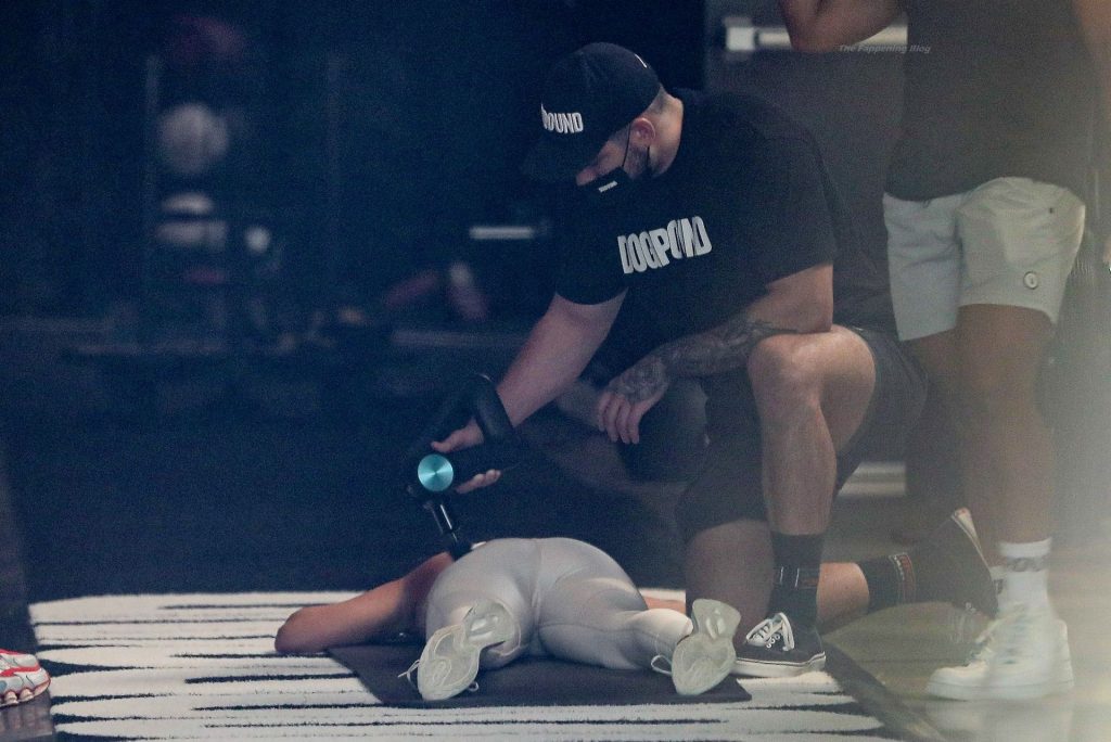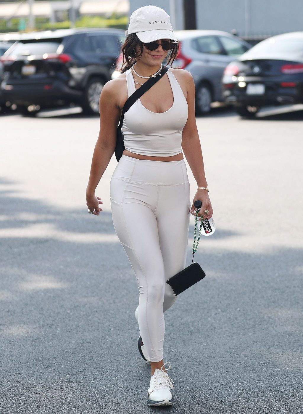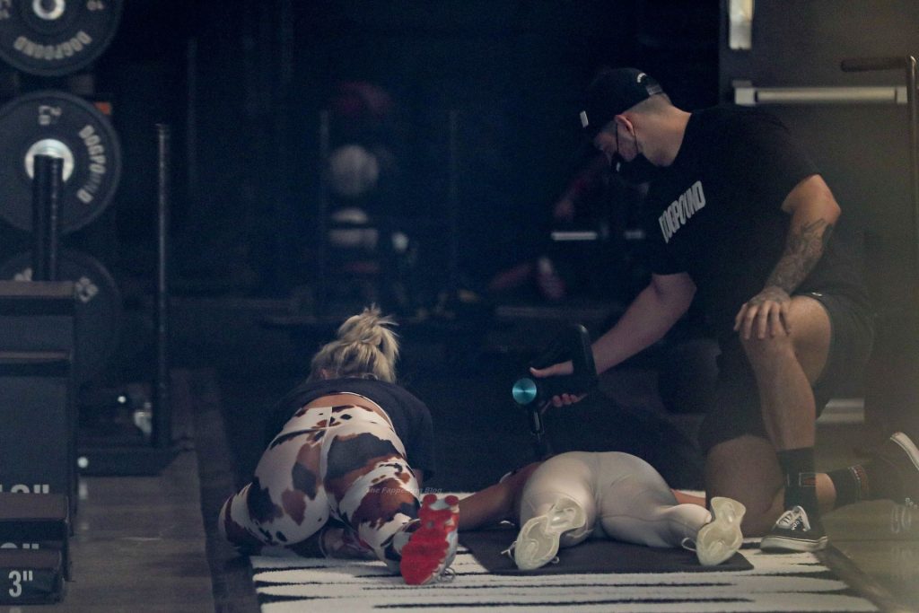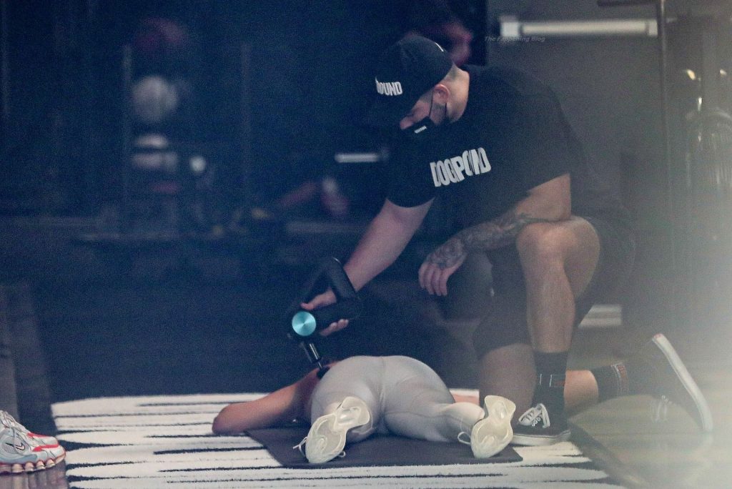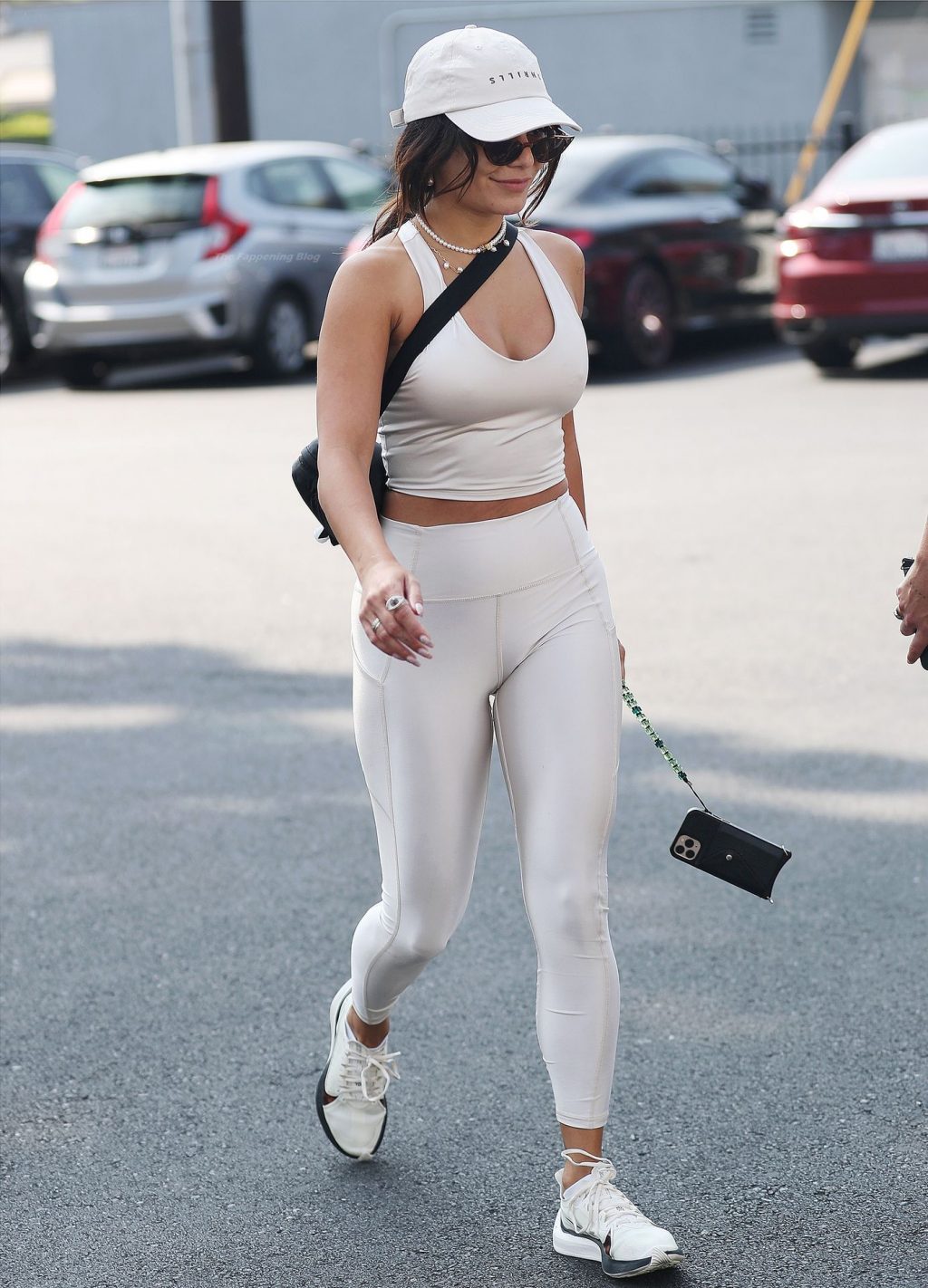 ¡Esta debe ser la mejor parte del entrenamiento! Vanessa Hudgens disfruta de un masaje de su entrenador personal después de su sesión en el gimnasio Dogpound. La actriz lució leggings blancos, un sujetador deportivo a juego y una gorra, y claramente parecía aliviada después de que su entrenador trabajara toda la rigidez en sus músculos.