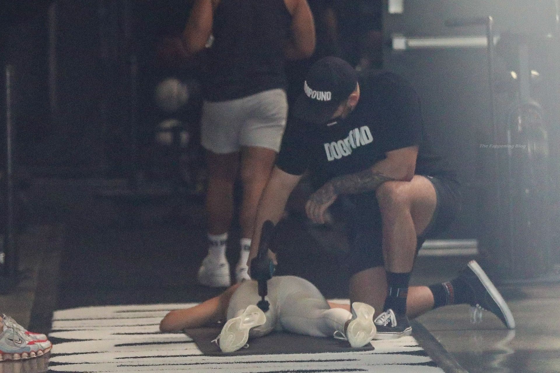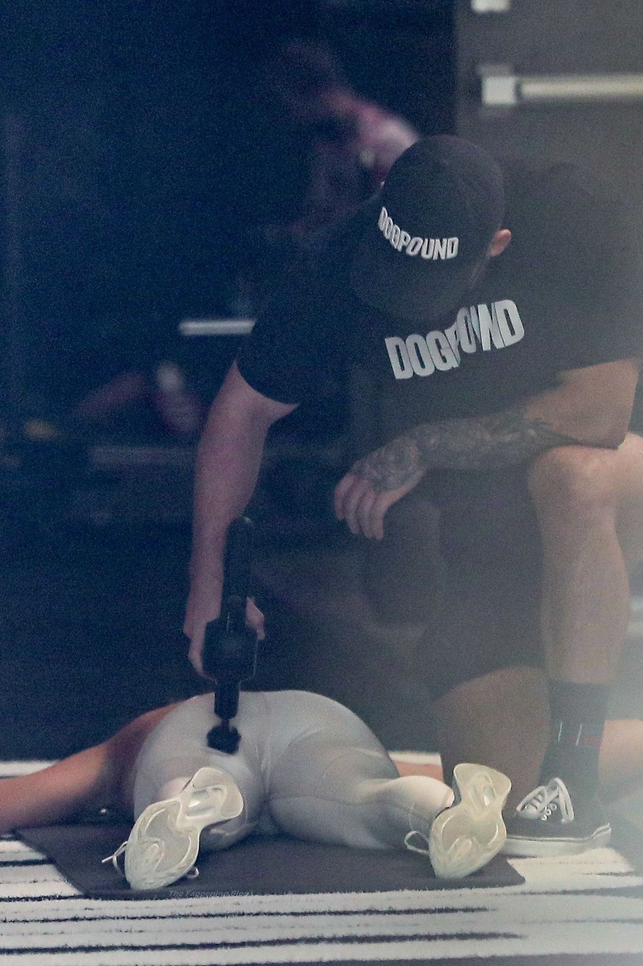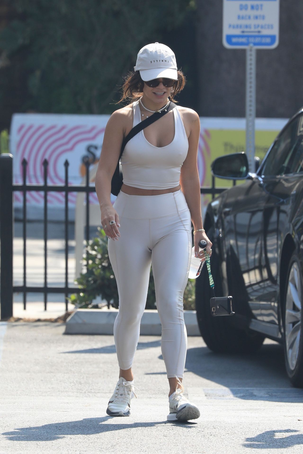 ¡Esta debe ser la mejor parte del entrenamiento! Vanessa Hudgens disfruta de un masaje de su entrenador personal después de su sesión en el gimnasio Dogpound. La actriz lució leggings blancos, un sujetador deportivo a juego y una gorra, y claramente parecía aliviada después de que su entrenador trabajara toda la rigidez en sus músculos.