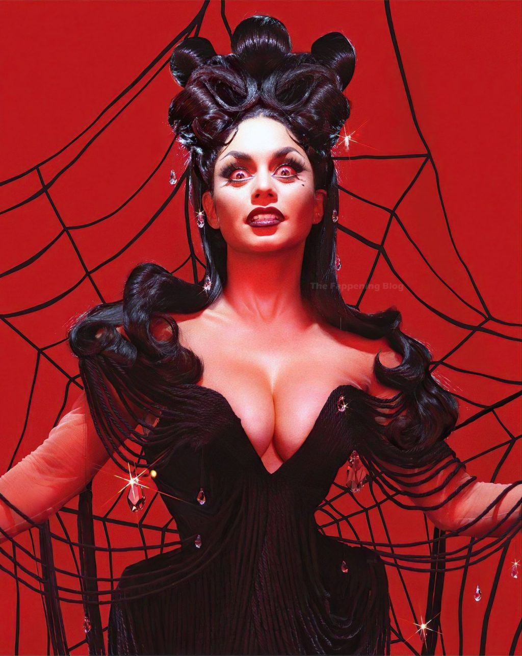 La estrella de The Fappening Vanessa Hudgens te asusta como La Viuda Negra con sus tetas en una nueva sesión de fotos de Franz Szony para Halloween (octubre de 2020).